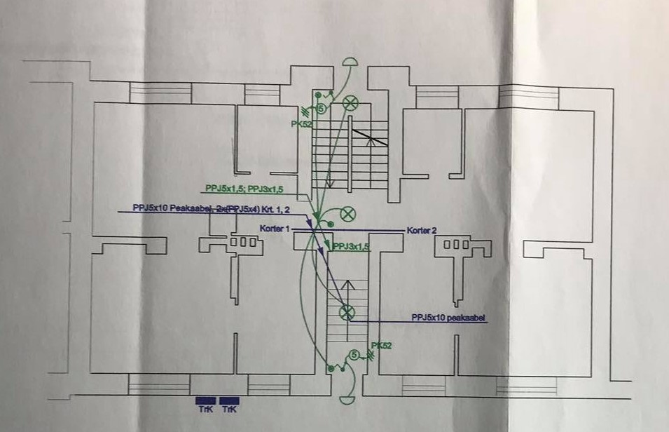 Üldosa elektritööd mis sisaldab: Peakilp /arvesti kilp, sisendkaabel; koridori valgustus koos kaabeldusega, kaablid peakilbist korteritesse, vajalik kaabeldus korteri(te) ja kelder / pööning vahel. Arvestite liigutamine korteritest peakilpi (sisaldab ka arvestite vahetuse organiseerimist 1faas => 3 faasi).