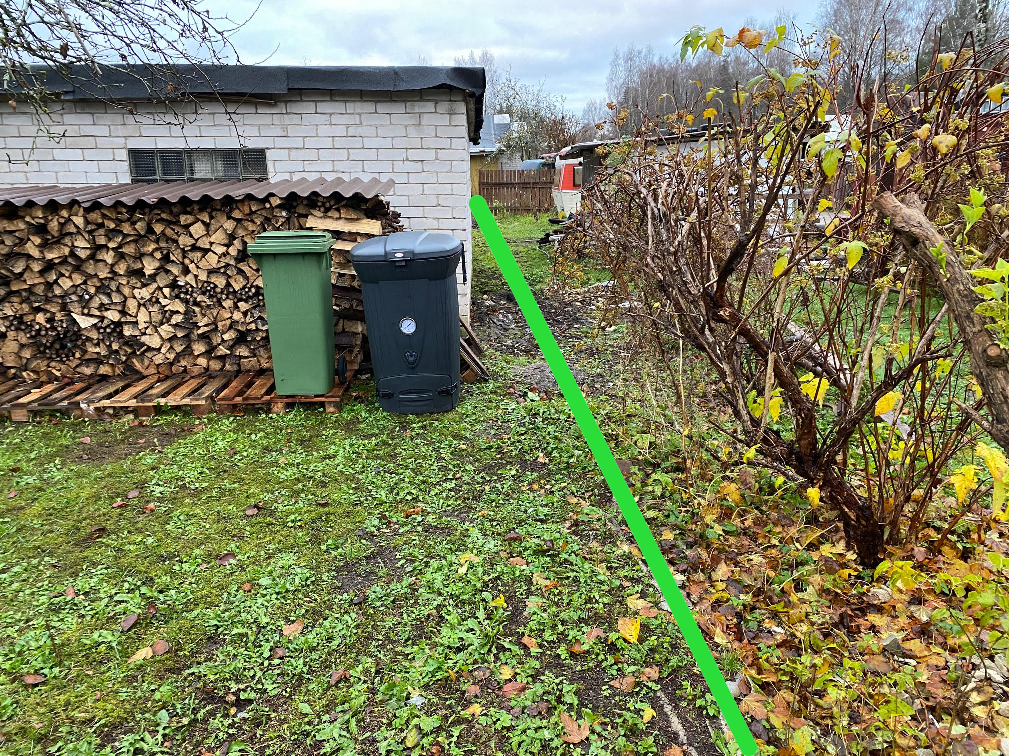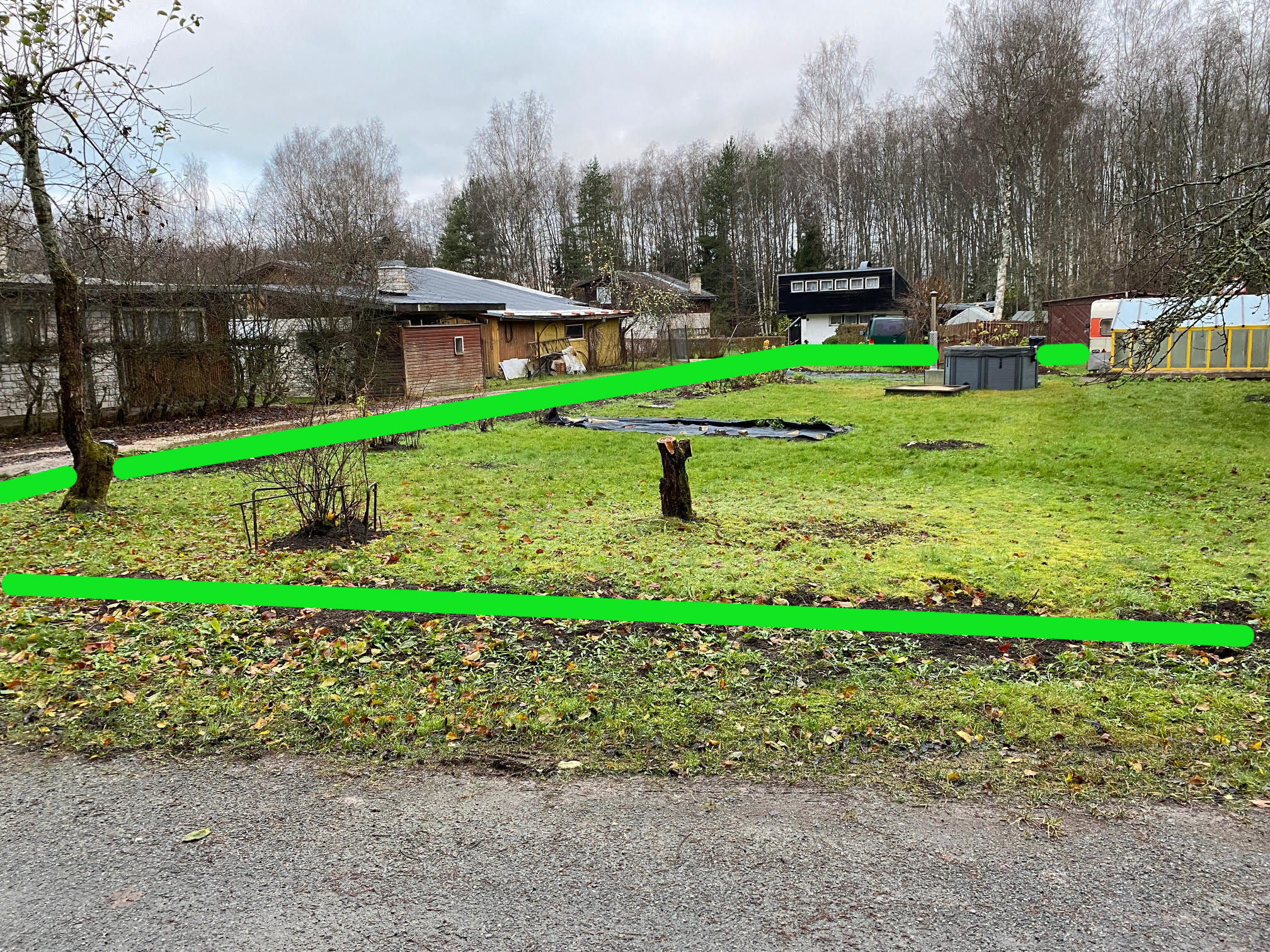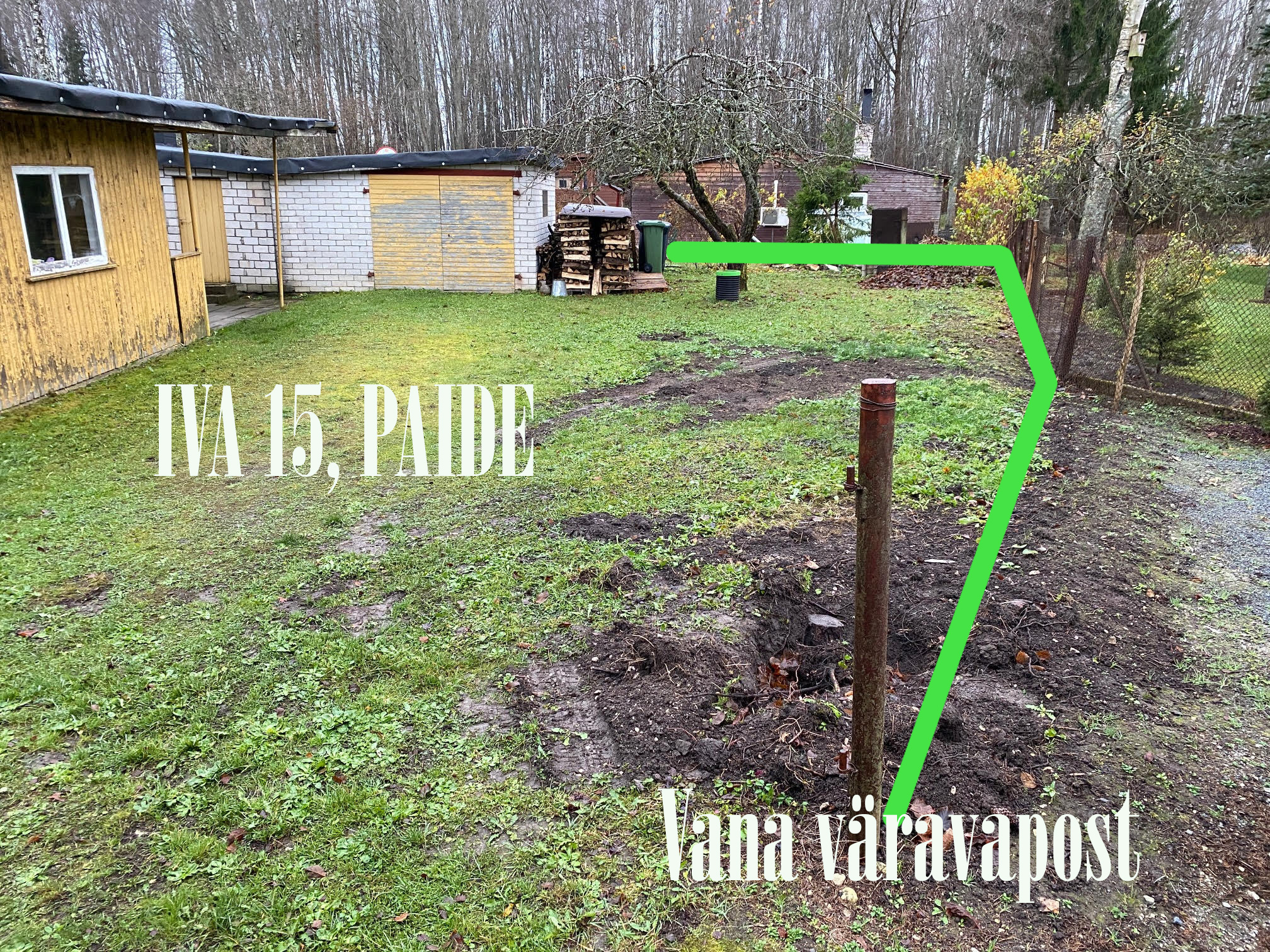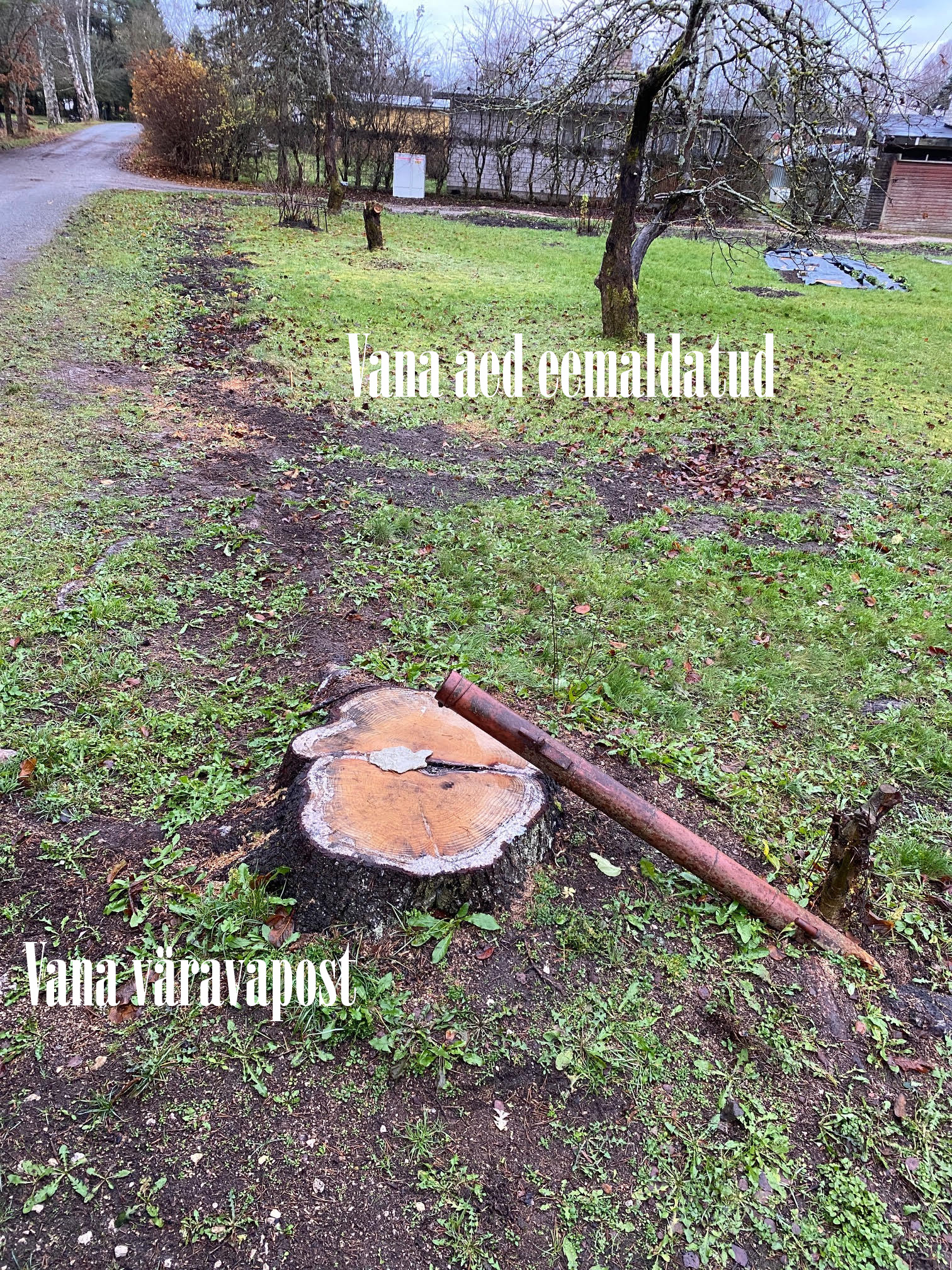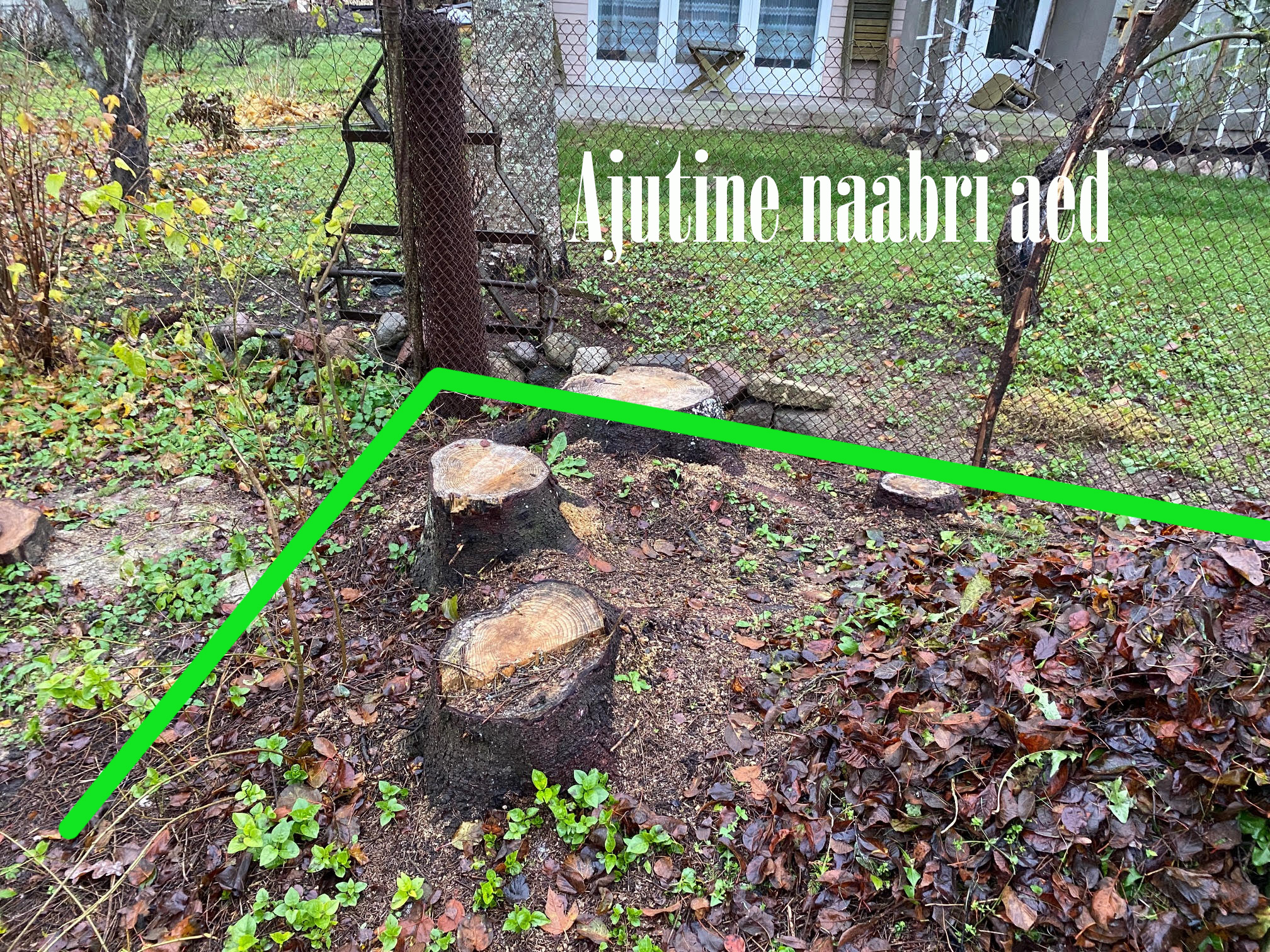 Ühes aianurgas on maha võetud 4 peenemat kuuske, nende juured võivad kopale veidi ette jääda. Samuti on värava juures 1 suure kuuse känd, võib ka veidi ette jääda.