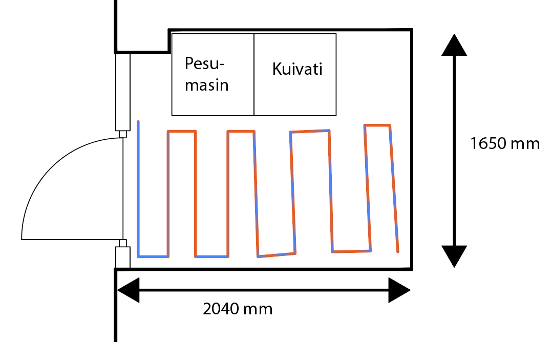 - Põrandakütte alla umbes 3.5m2 (DEVIFLEX 10T 60M)