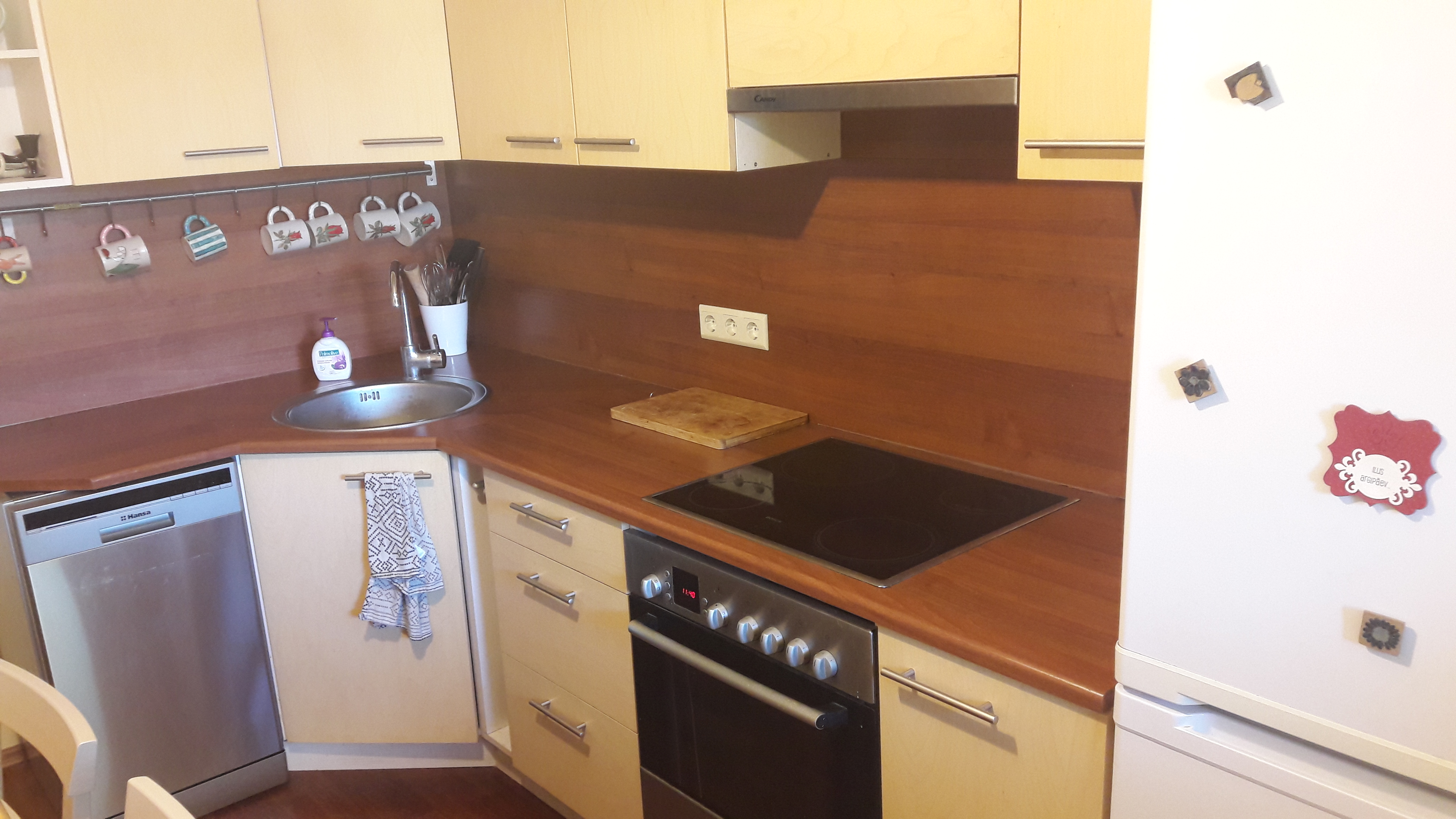 Olemasoleva köögi töötasapinna vahetus ja pritsmeseina plaatimine.