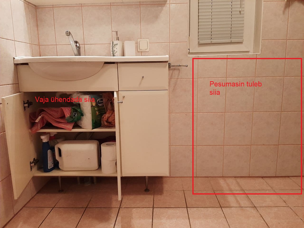 Ühendada uus pesumasin veetorustikuga vannitoas, kus varasemalt pole pesumasinat olnud ja eraldi kohta pesumasina ühendamiseks ei ole. Ühendada on vaja Beko WTE 6511 B0 pesumasin: https://beko.ee/ee/product/91/wte-6511-b0