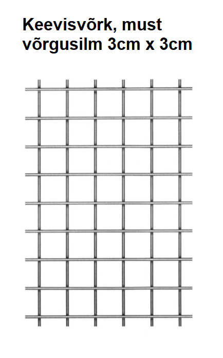 3) Ventilatsioonišahti avadele paigaldada kinnitustega musta värvi keevisvõrk võrgu silmaga 3cm x 3cm.