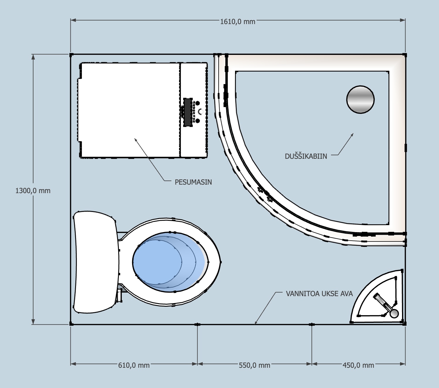 Piltidel on näha vannitoa praegune olukord ning ka soovitava lõpptulemuse joonis.