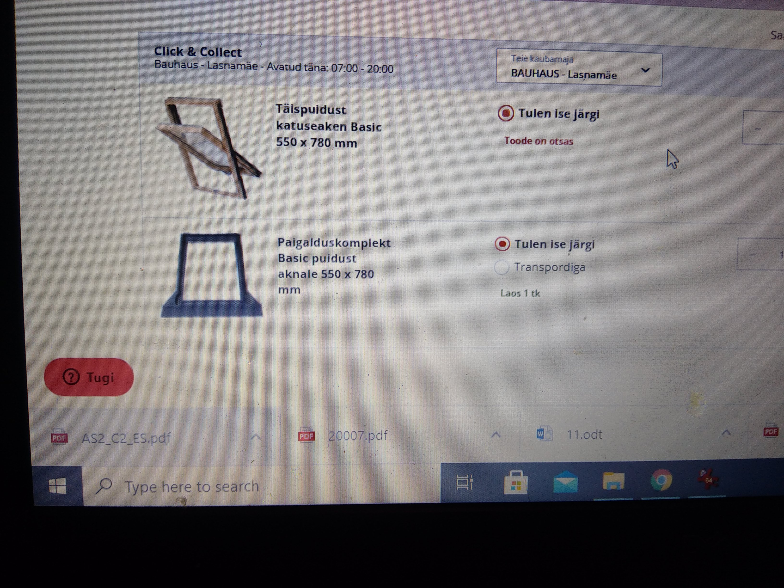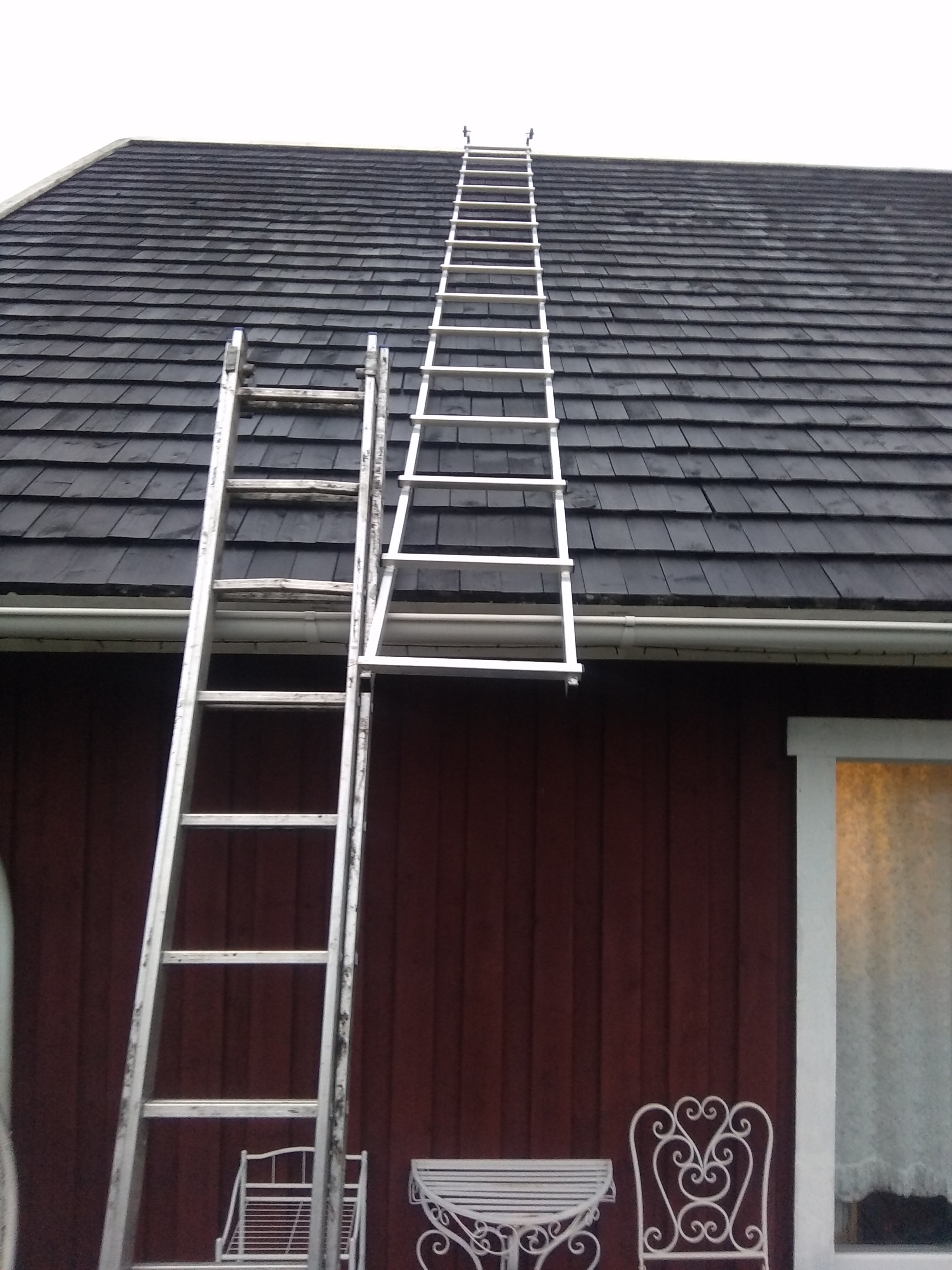 Vaja paigaldada kolm katuseakent puitkatusesse (kimm-katus), mille kaldenurk on u 45*. Aknad on mõõdus 550x780 ja sarikavahe on 600 (vekseldada pole vaja). Aknad paiknevad ülestikku teineteise kohale nii (vaja avada üks pikk vahe katust). Aknad on täispuit aknad koos paigalduskomplektidega. Katuslae siseviimistlus on laudvooder. Katuse räästakõrgus puitterrassist on 2,3m, Olemas on katuseredel ja redel katusele pääsuks.