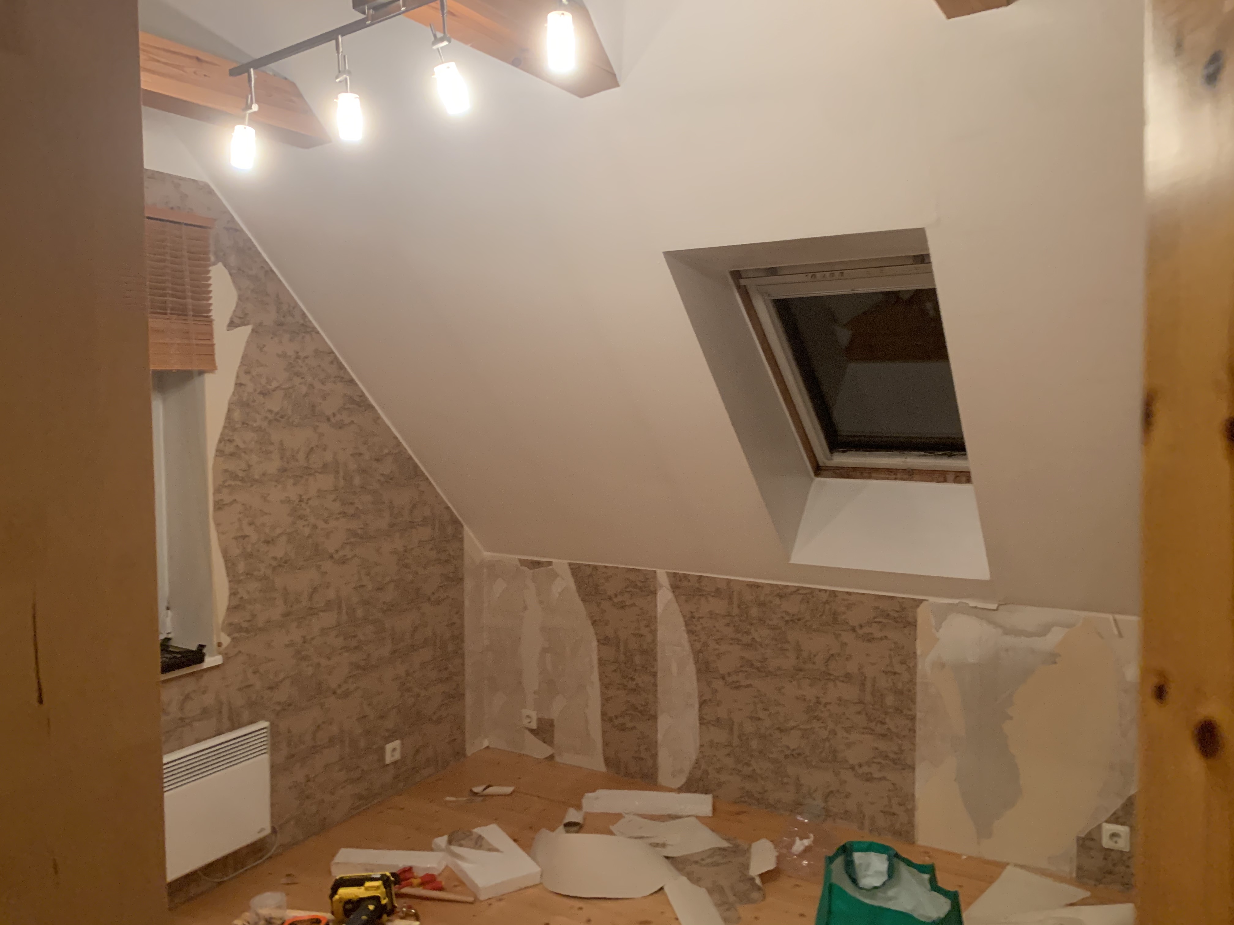 – katuseakna alla horisontaalse aknalaua ehitamine (ilmselt kipsplaadist);