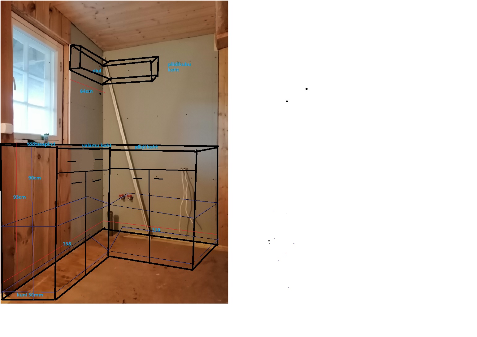 Töö sisuks on abihoones asuvasse väikesesse kööginurka täispuidust mööbli ja samas hoones asuvasse ruumi valamukapi valmistamine.