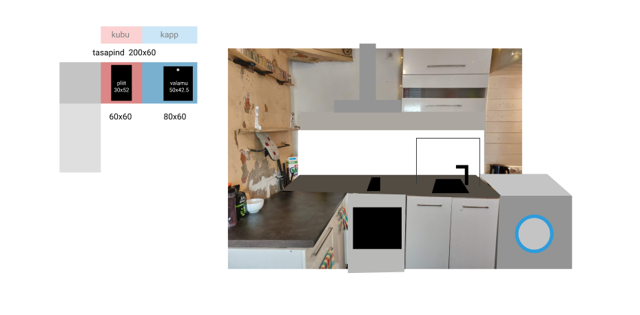 + töötasapinda lõigata auk pliidiraua jaoks (olemas)