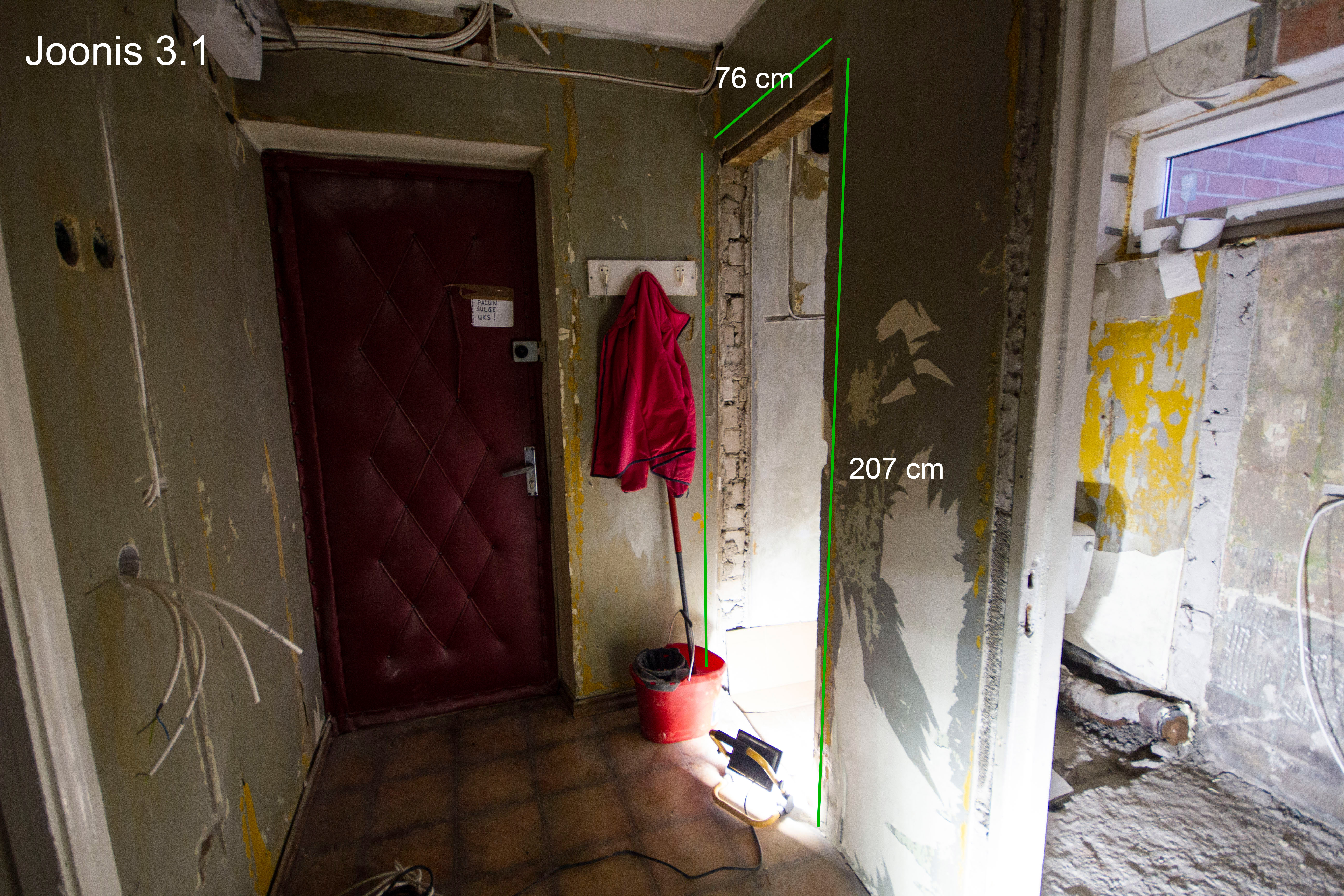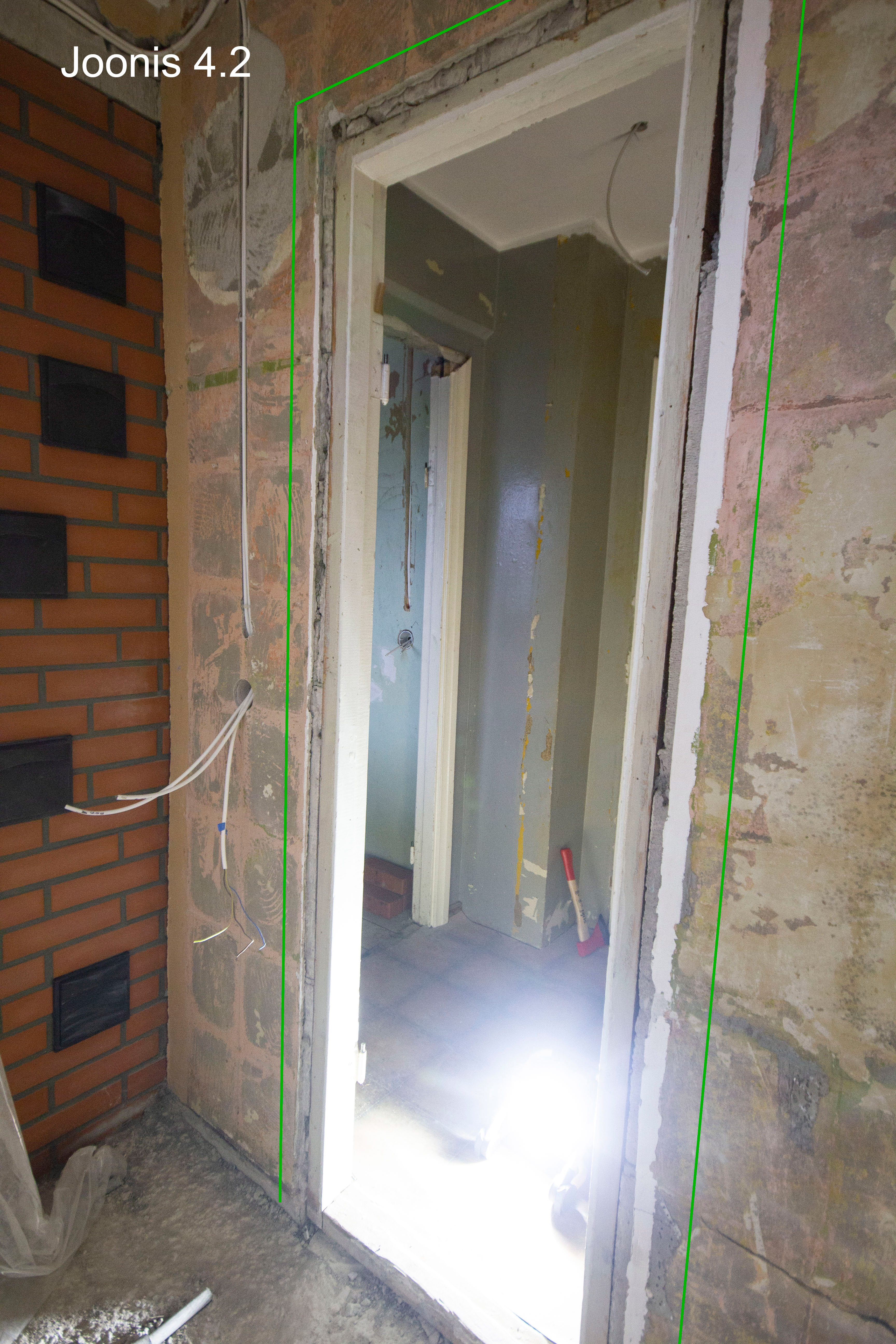 - vannitoa ja esiku vahelise seinaava kinniehitamine (joonis 3.1, 3.2, 3.3)