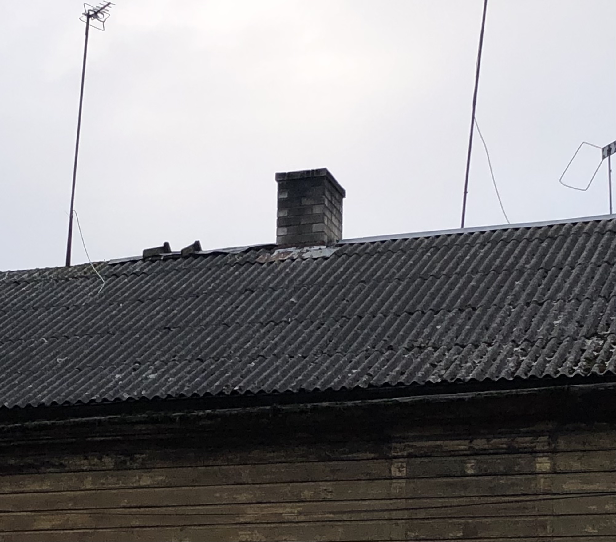 Katusest välja ulatuv korstnapits silikaatkivist.