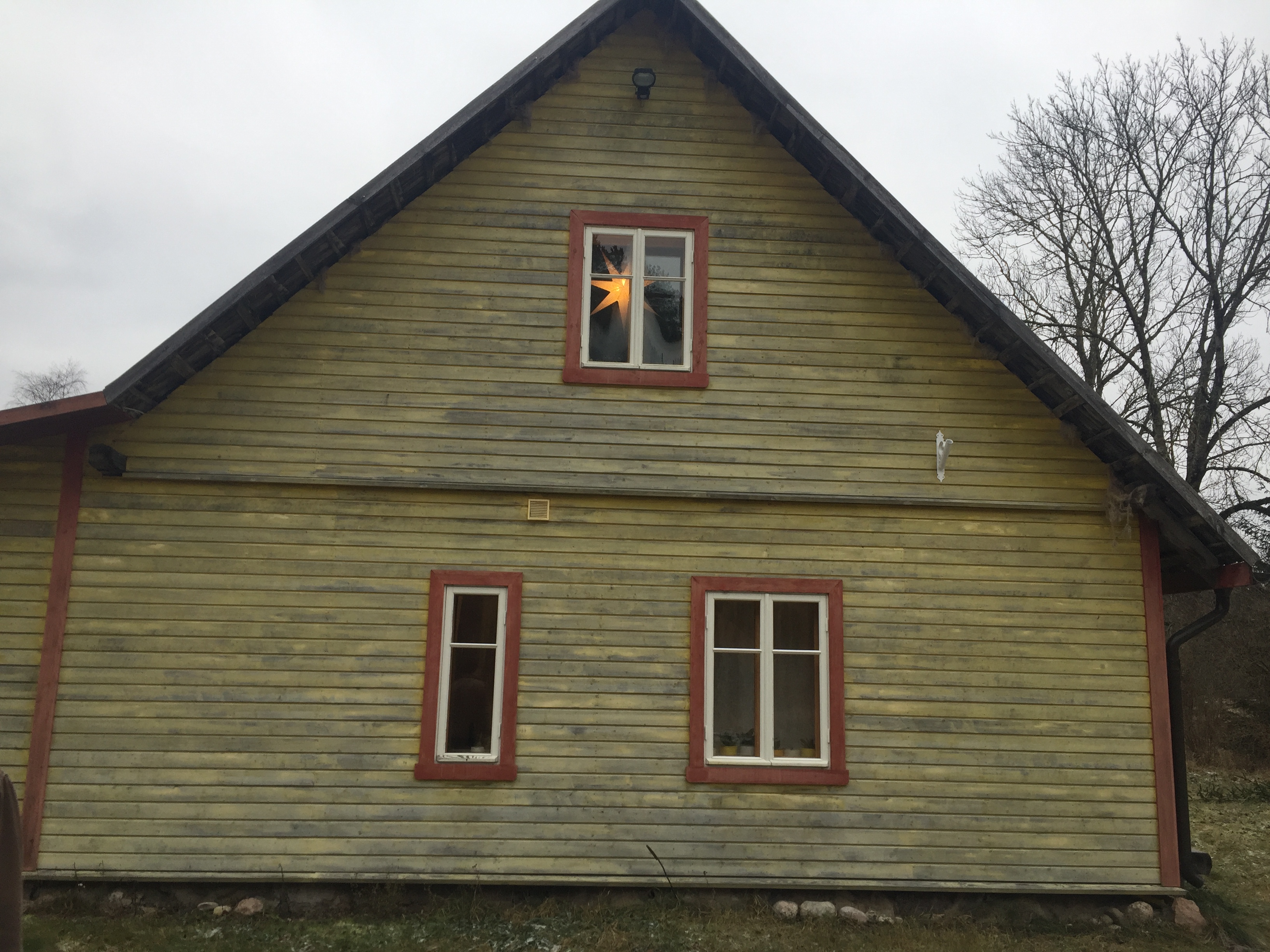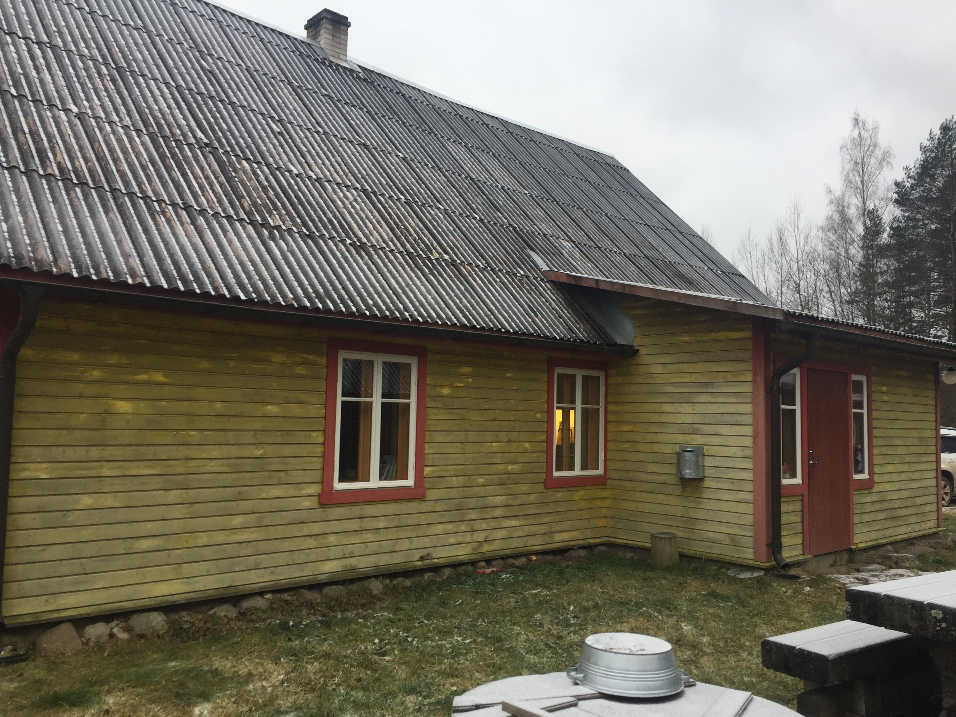 Maja: laudise pesemine ja värvimine linaõlivärviga. Maja on ka eelnevalt värvitud linaõlivärviga, ühe kihina. Vana värvi ei ole vaja maha kraapida, kuid laudis on vaja enne uue värvi pealekandmist pesta. Maja põrandapind on 75 m2 (+ vöörus), 1.5 korrust (täiskorrus ja ärklikorrus).