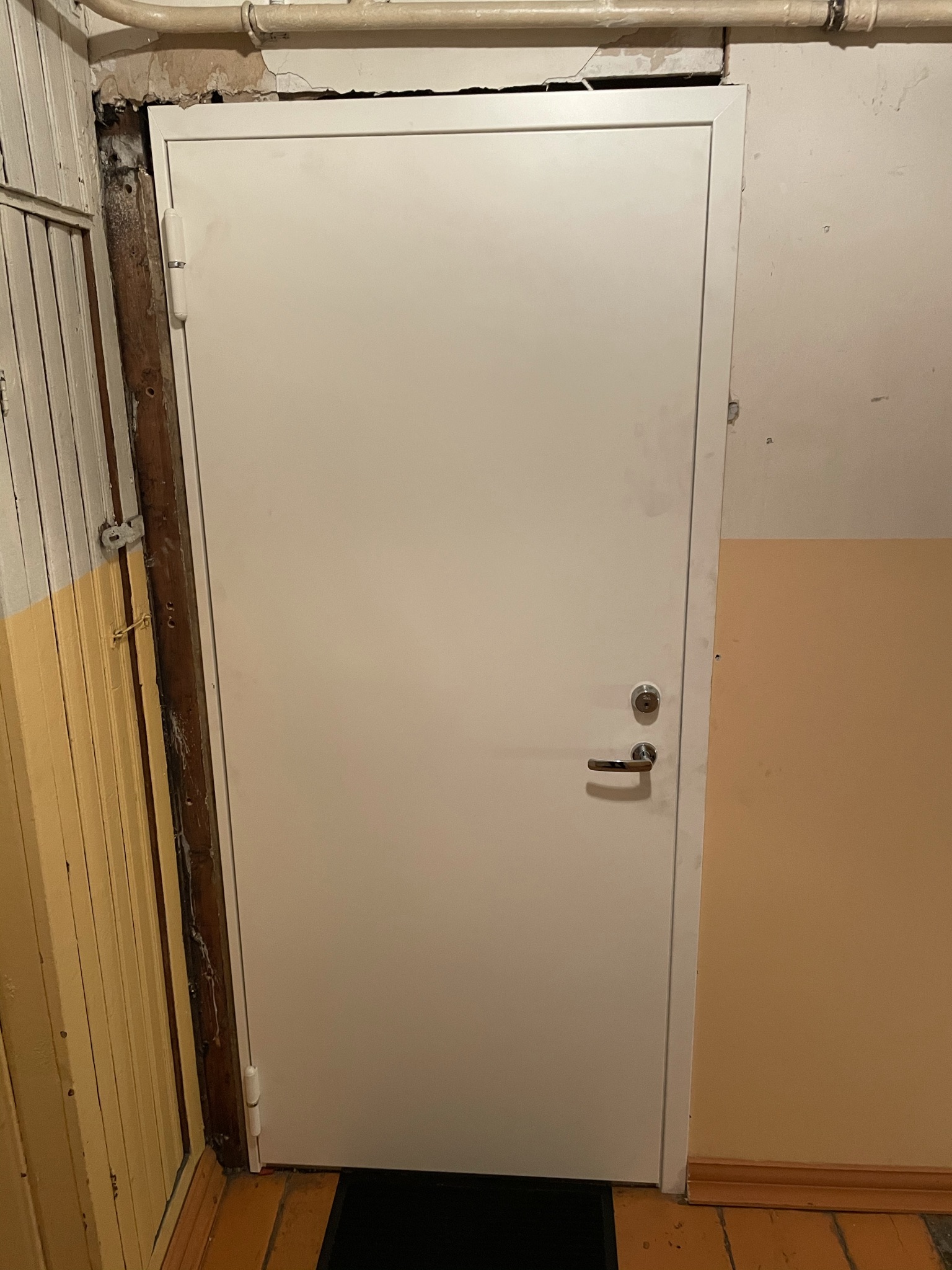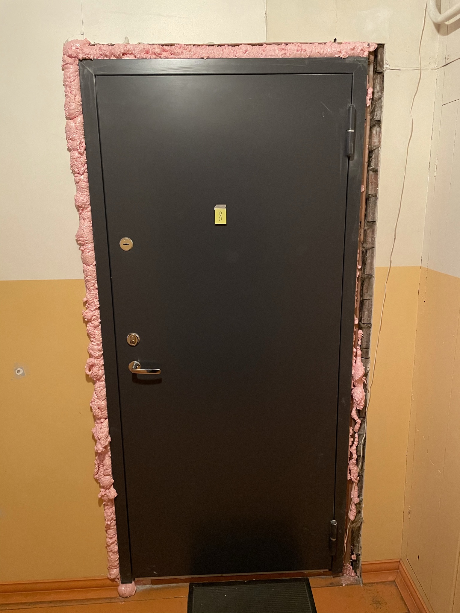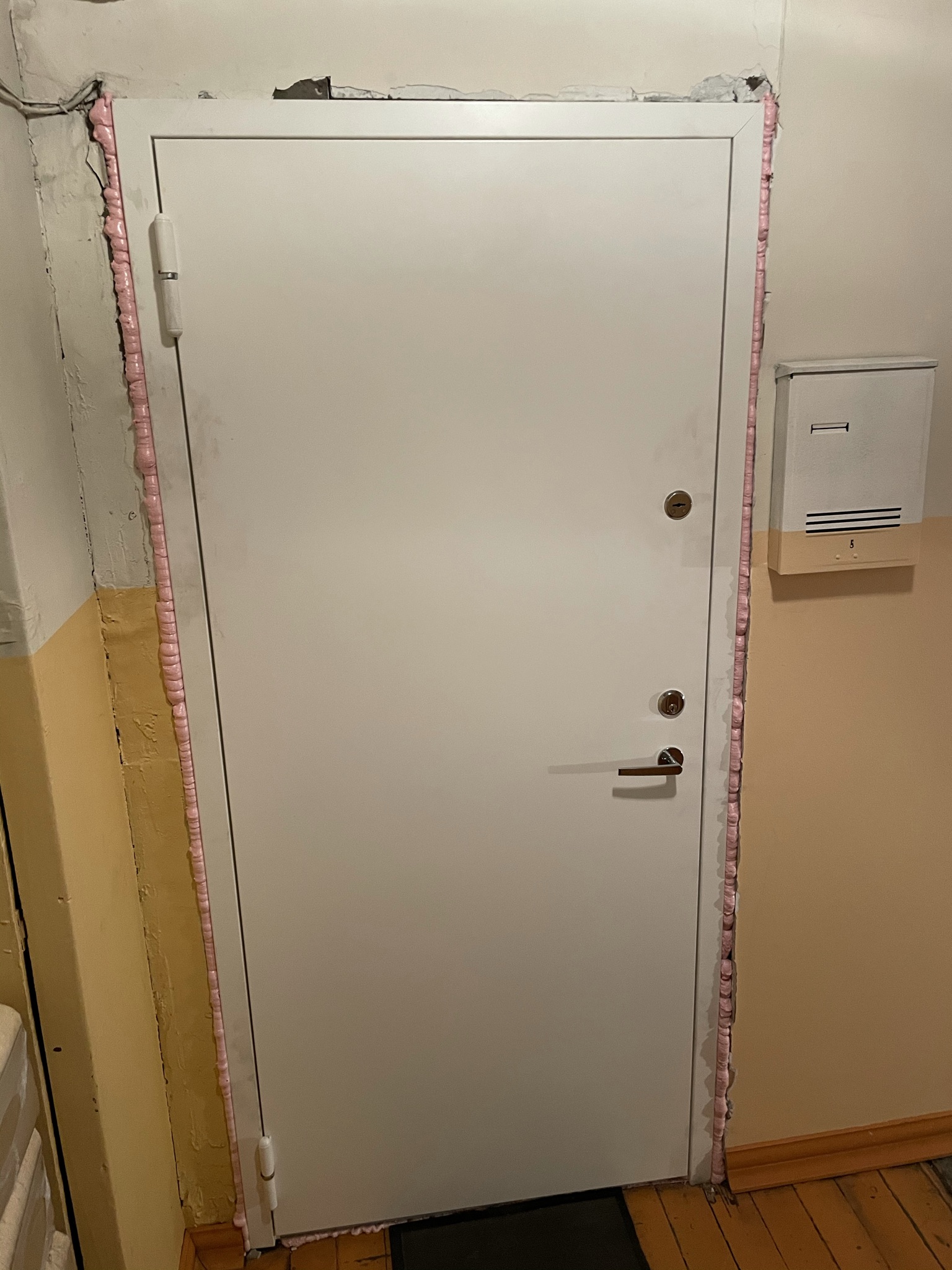 Majas sai veel 6-l korteril uks vahetatud, millel on nüüd välispoole viimistlust vaja. Enamasti on vaja vahu lõikamist, mingi metallist liistu paigaldamist ja paaris kohas ka pahteldamist + värviparandust.