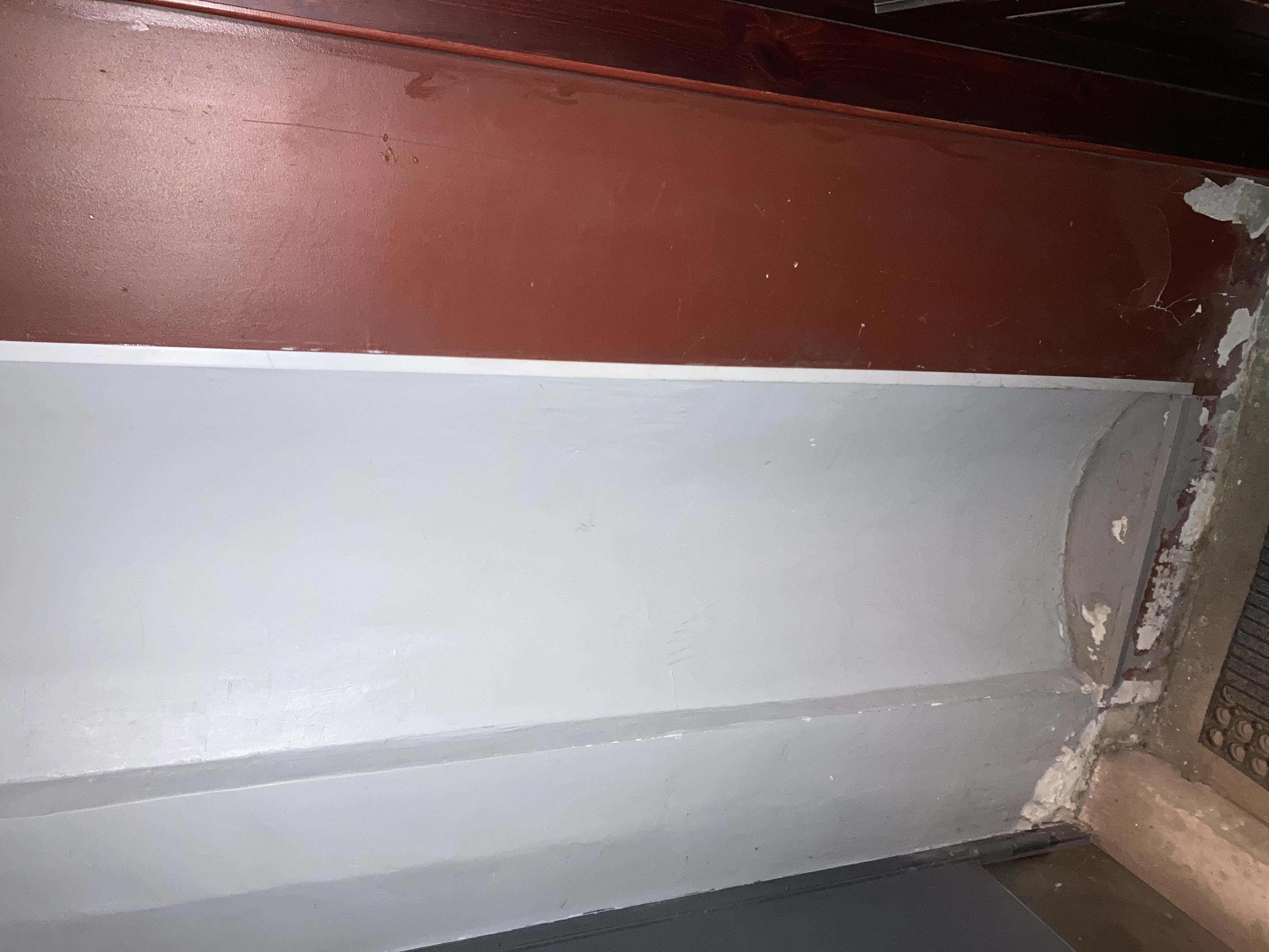 7) Sellest kõrgemale jääva seina aukude pahteldamine ja seina ülevärvimine (pindala ligikaudu 20m2)