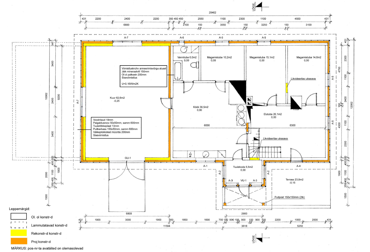 Seinakarkass isoleerida 150mm mineraalvillaga, seinte välisküljele paigaldada