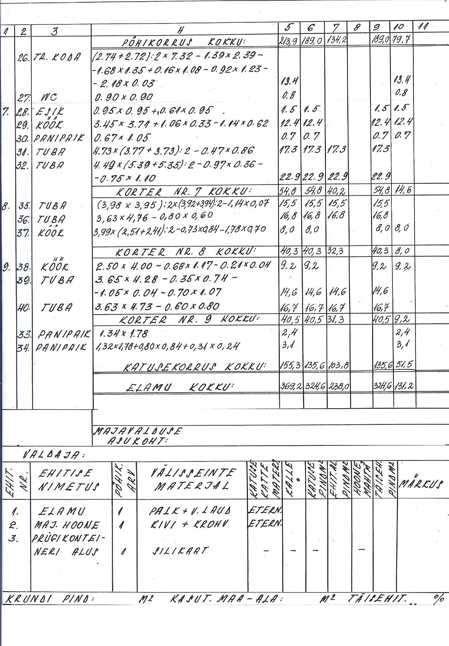 | Ehitusmaterjalid: | Töö tegija poolt |