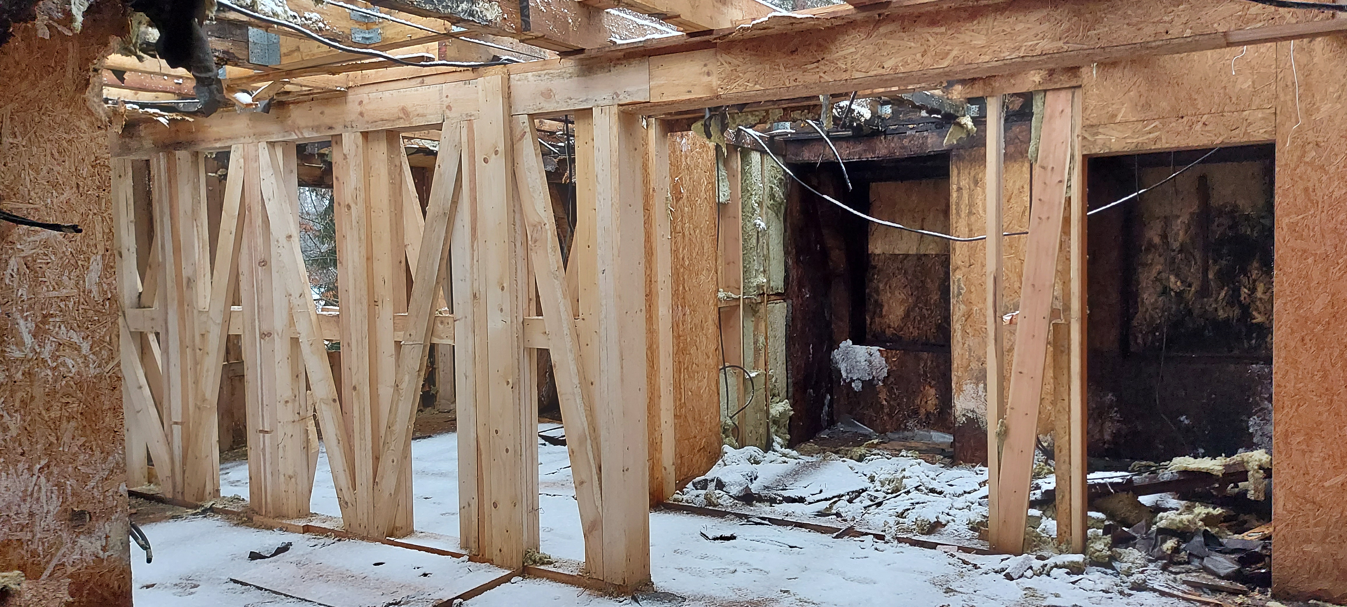 Lammutatav hoone koosneb : palgid, prussid, osb plaadid, kivivill.