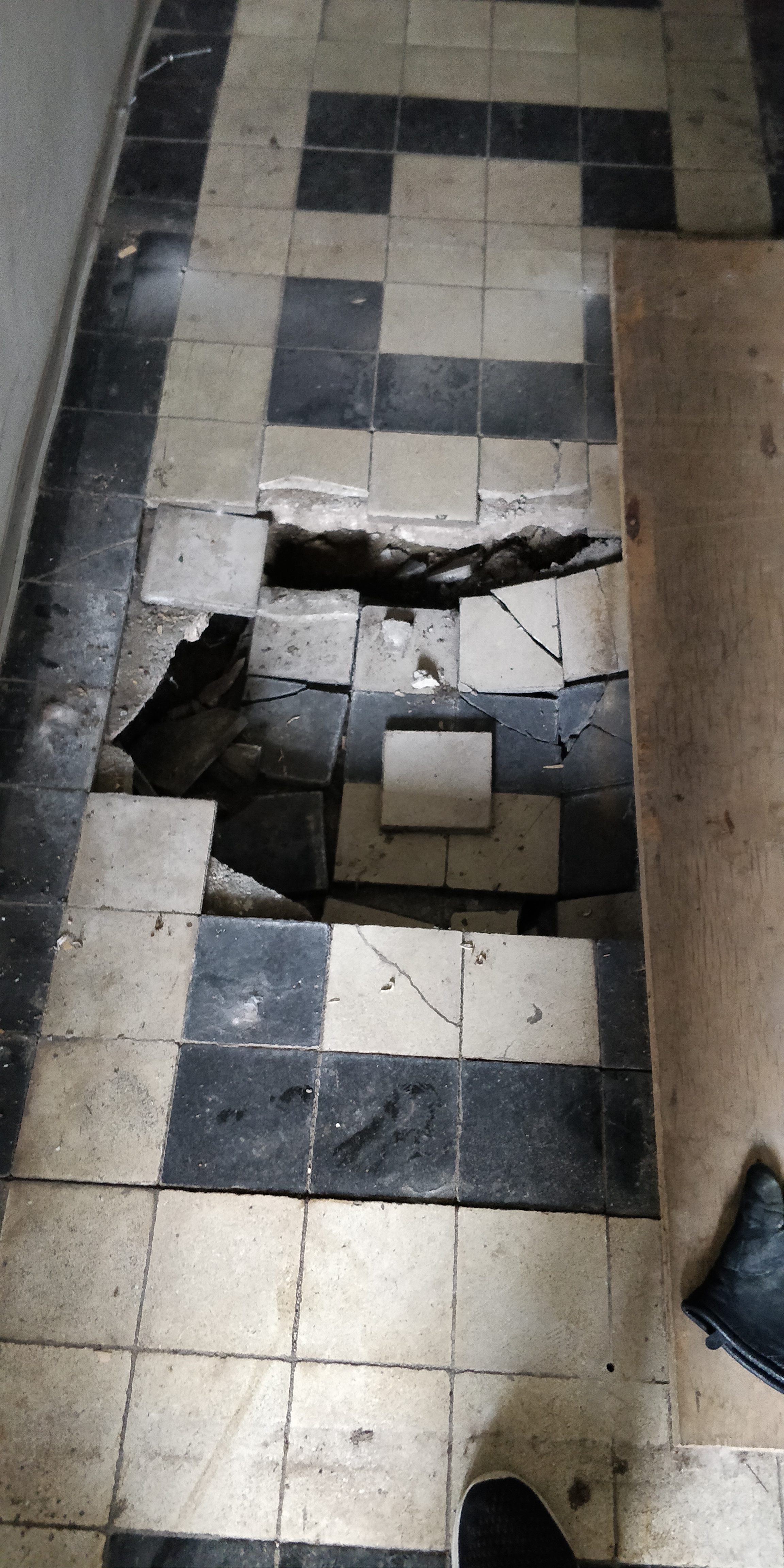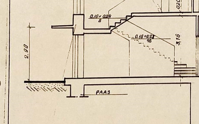 Vana trepikoja põrand osaliselt sisse vajunud. Selle all on 20-25 cm tühimikku enne kui liiv vastu tuleb.