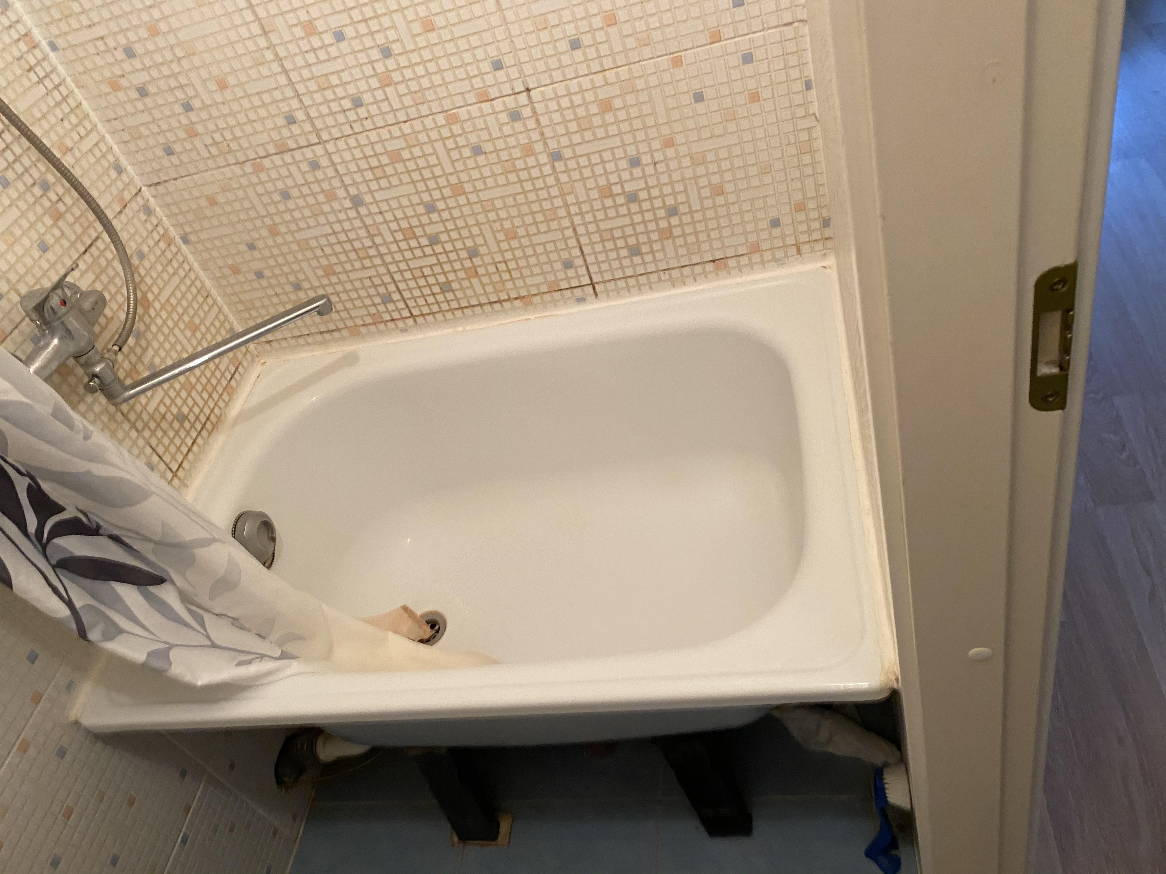 Vaja oleks ühiselamu toast ümber ehitatud väikese kööktoa (16,2m2) vannitoast välja viia vann, utiliseerida. Selle asemel dušš ja väike pesumasin. Väikese vanni pikkus vaid 1 m. Ehk siis duši jaoks 60cm ja pesumasina jaoks 40 cm. Põrand tuleb duši osas tõsta, uuesti plaatida, praegune vanni äravool ei ole põrandas vaid seina sees. Kui vann on eemaldatud, siis on näha kas seinte osas peaks ka midagi parandamiseks välja mõtlema