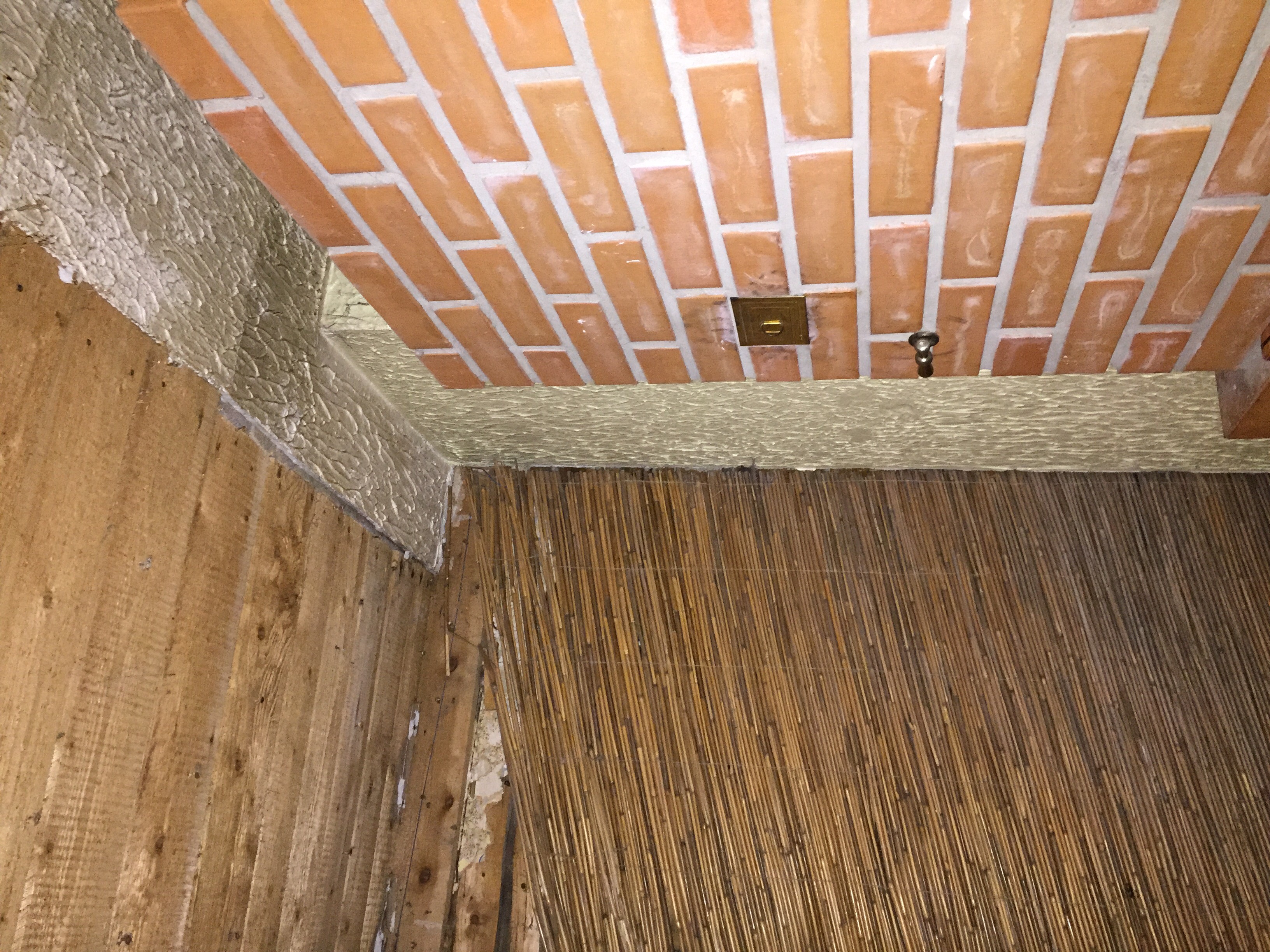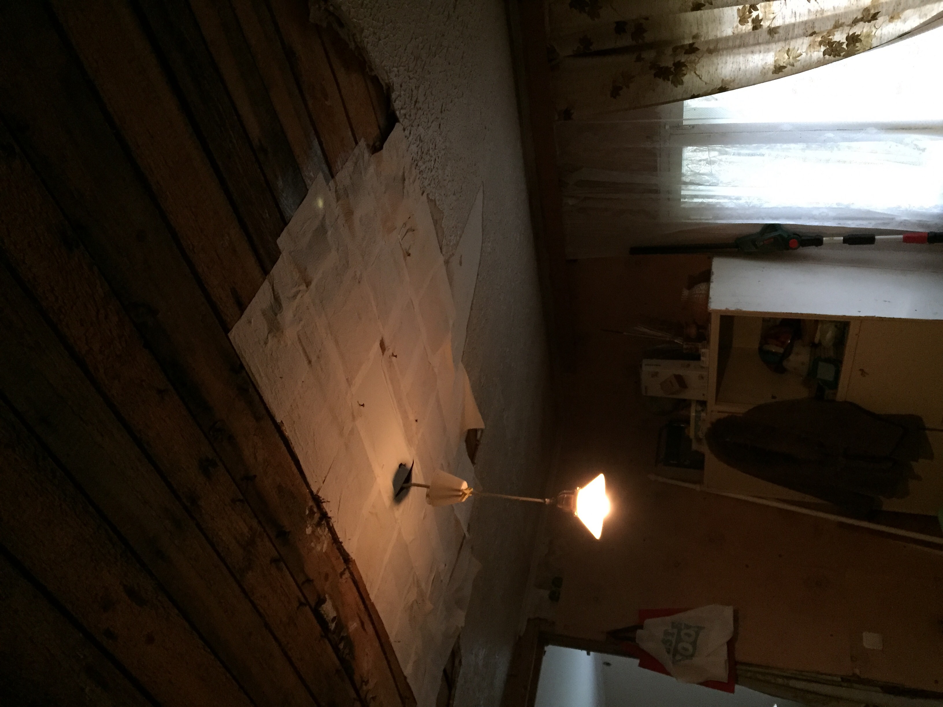 Lagi on nõgusaks vajunud (olemasolevad laetalad on väikese ristlõikega ja ei kanna); lagi tuleb tõmmata/lükata üles pööningu poole ja lisada keskele paar tugevamat tala. Pärast seda läheb kipsi alla. Tuleb ka kokku viia kõrvaloleva toa lae tasapinnaga ja vormistada üleminek ühest toast teise (sinna jääb avatud laiem ava, mitte uks).