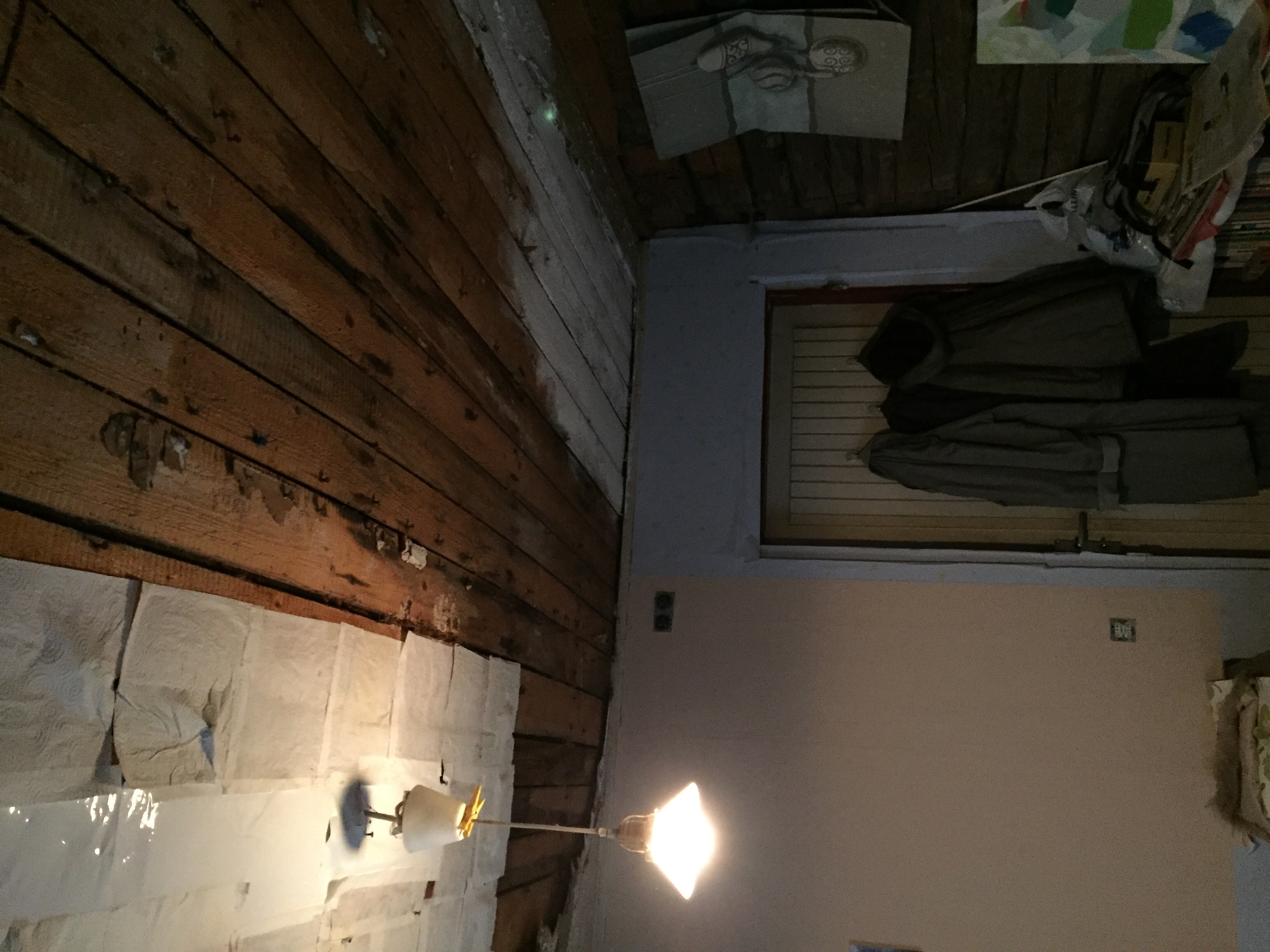 Üks sein on palksein, see jääb; ülejäänud seinad tuleb sirgeks ajada ja panna kipsi alla. Seoses sellega tuleb akna paled ära vormistada.