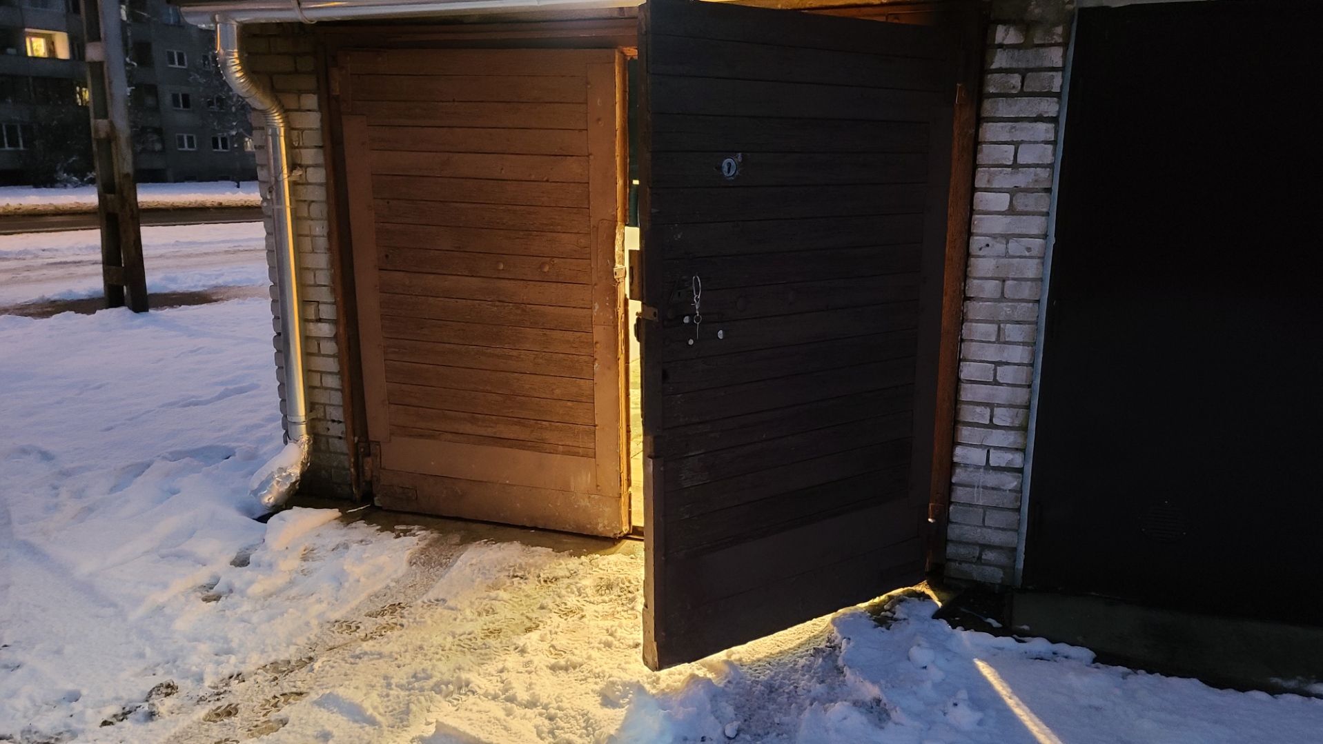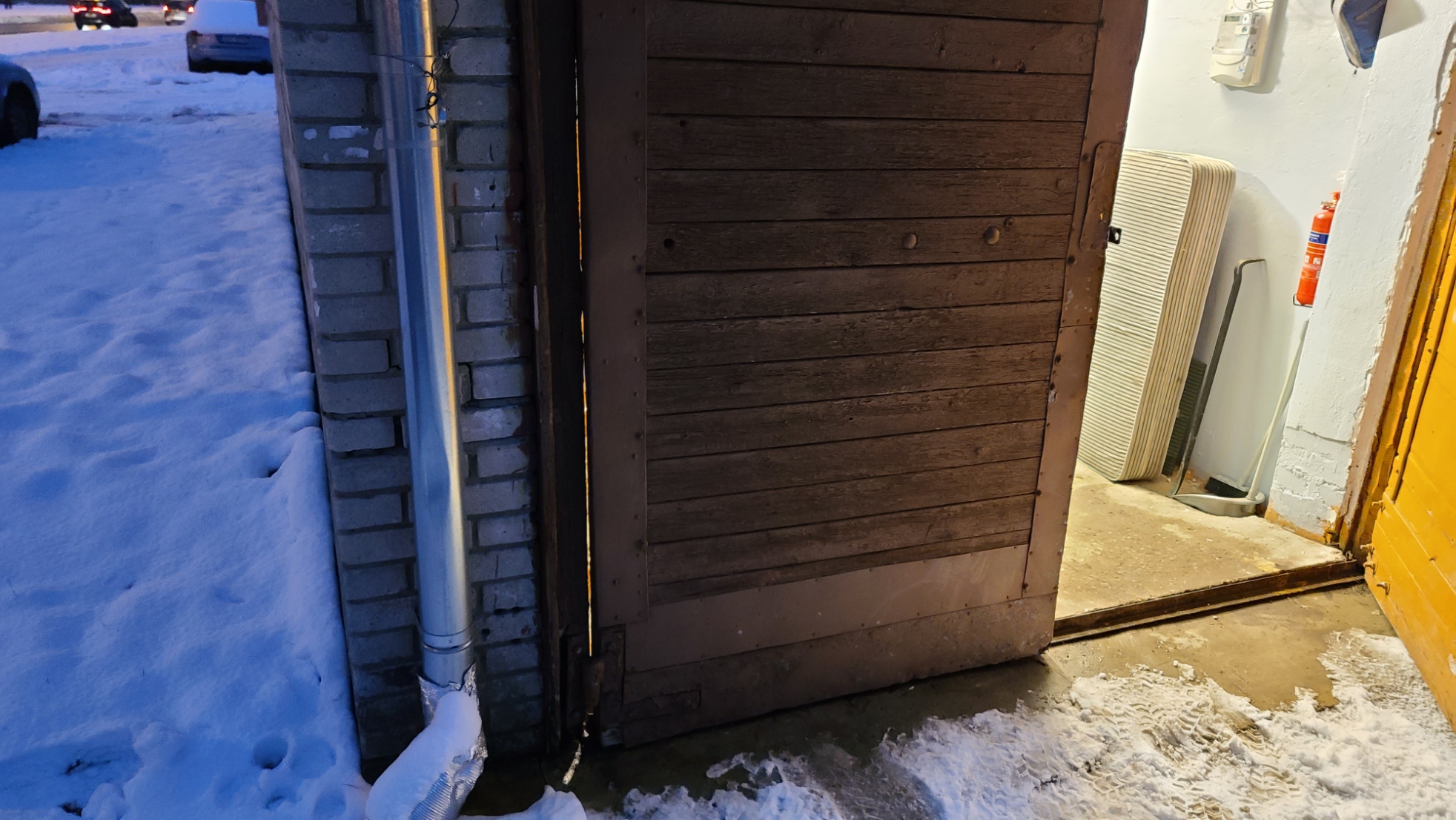 Tere! Mustamäel garaaziboksil on vasakpoolsel uksel hinged väsinud ja kandev pruss altpoolt mäda. Ukse avamine raskendatud sest lohiseb vastu maad.