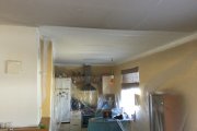 Uusarenduse köögi tagaseina plaatimine. Värvitud kivisein. Seinal on üks kolmekohaline pistik.