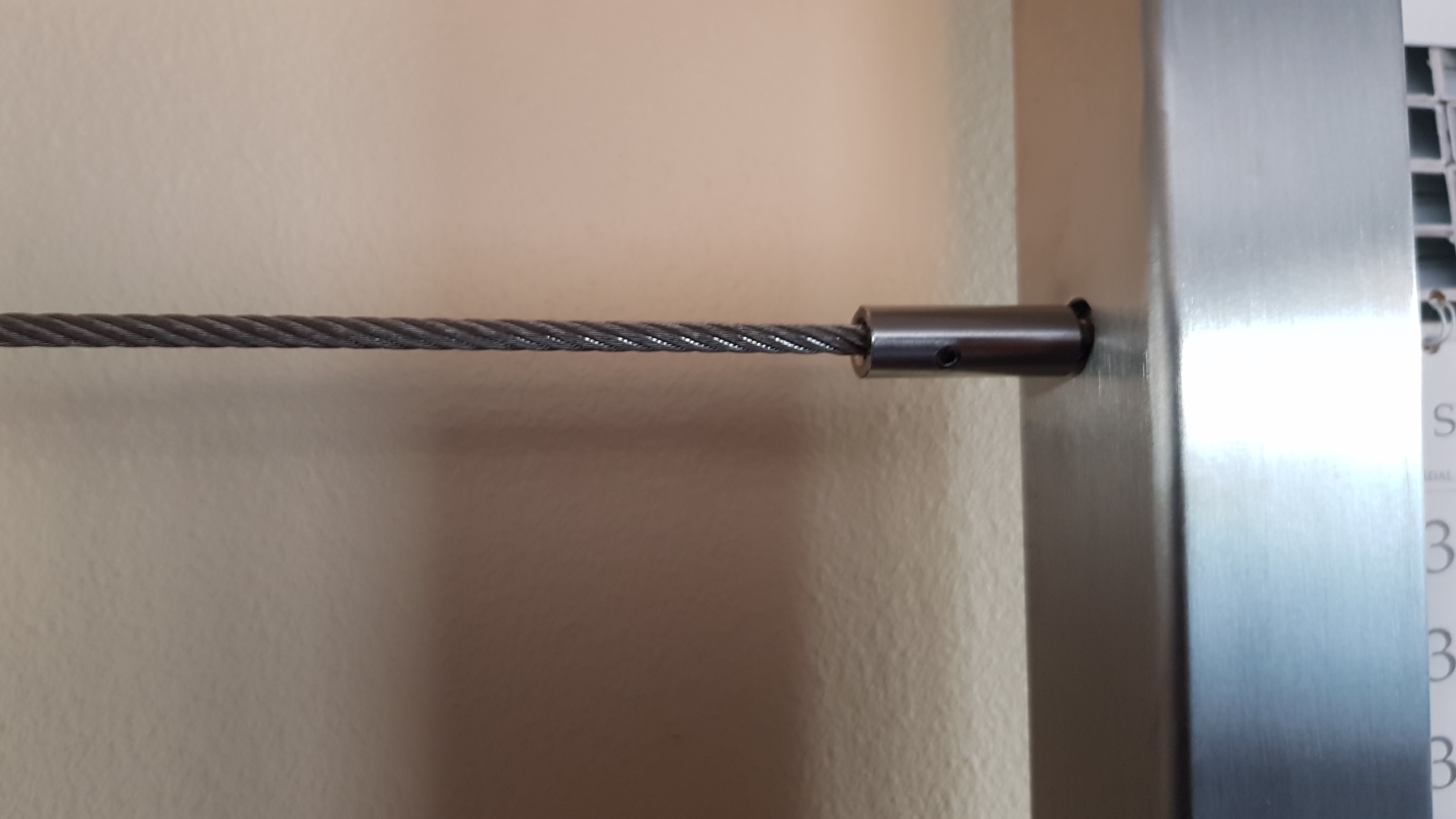 Kiviseina külge 3m ja 6m trossi paigaldus, et riputada selle külge kangas. 6m seinas on toestuseks olemas juba 3 konksu keset seina. Trossi kinnituskohast illustratiivne pilt.