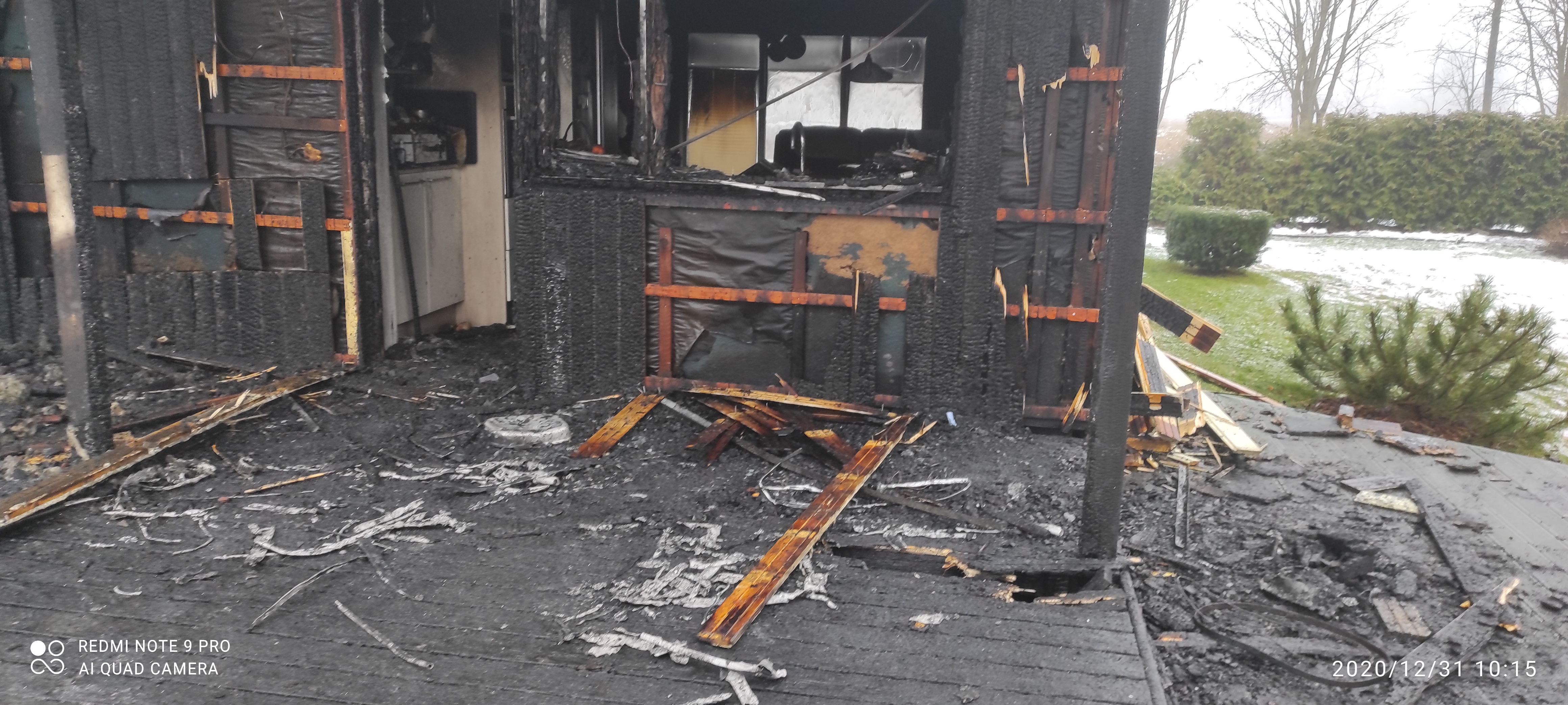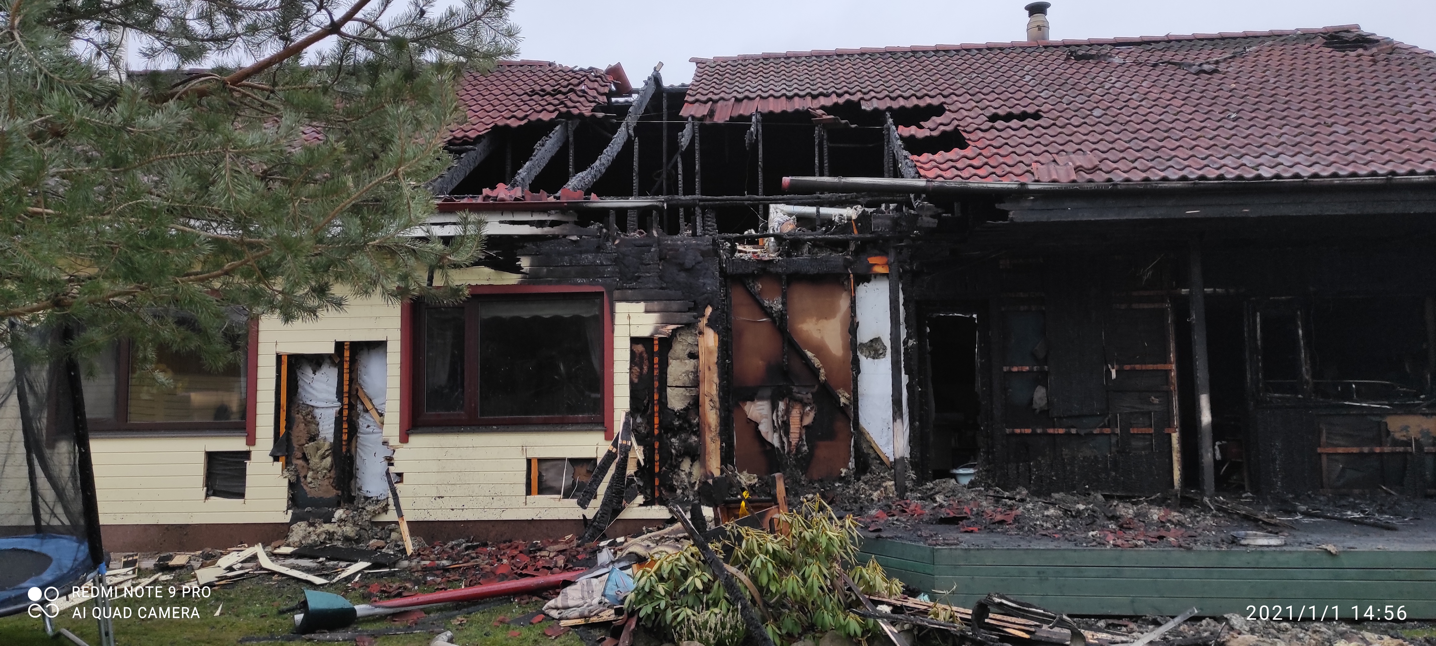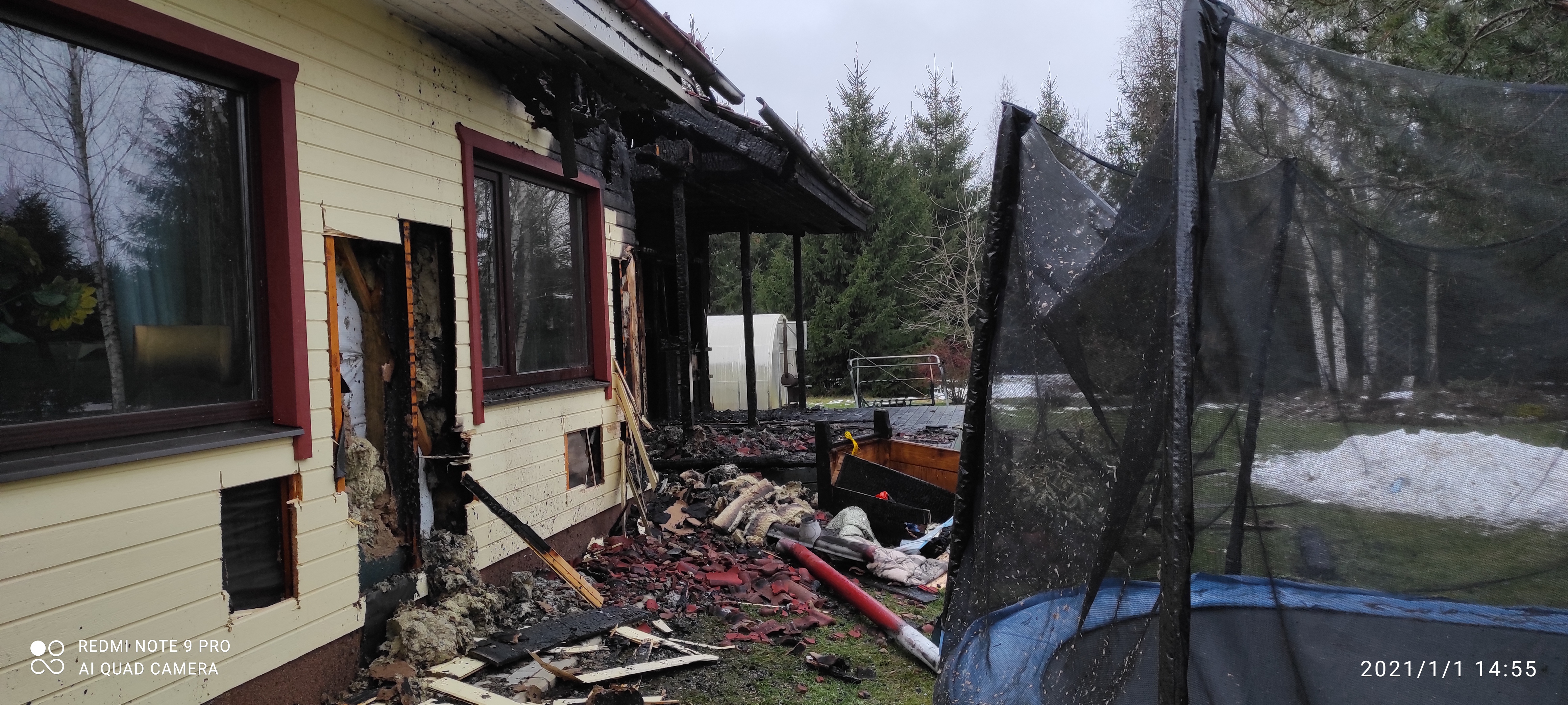 Tulekahjus suures osas hävinenud puitkarkass maja taastamine Tartumaal, Vahi alevikus. Vähem kahjustunud katlaruum. Mõlemad korstnad põlemisel kannatada saanud. Kivikatus.
