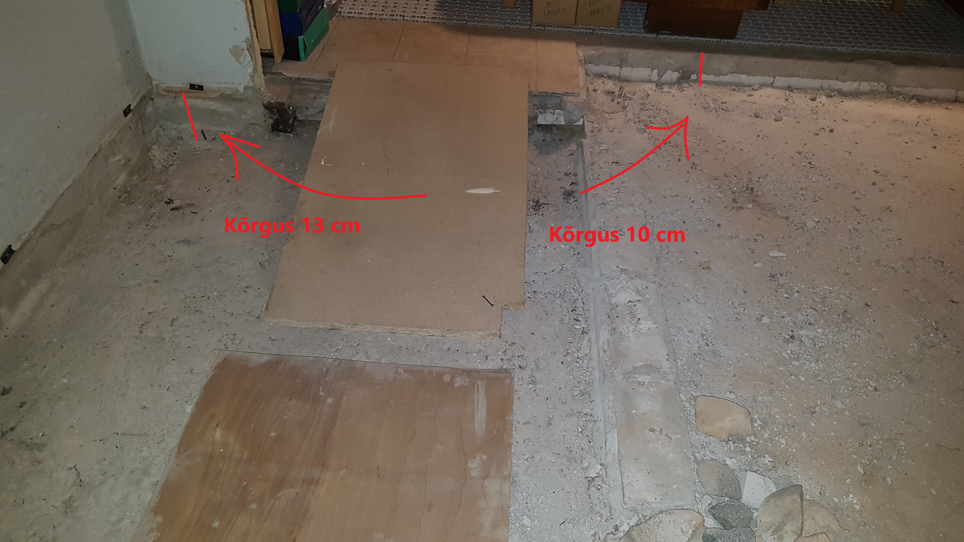 Võimalik, et valmis tasapind võib veidi "lõikuda" vastu olemasolevat seinalaudist ja ukse kohale tekib väike aste, mis vajab ühtlustamist. Lihtsalt infoks, juhuks kui eeldab veidi nikerdamist :)