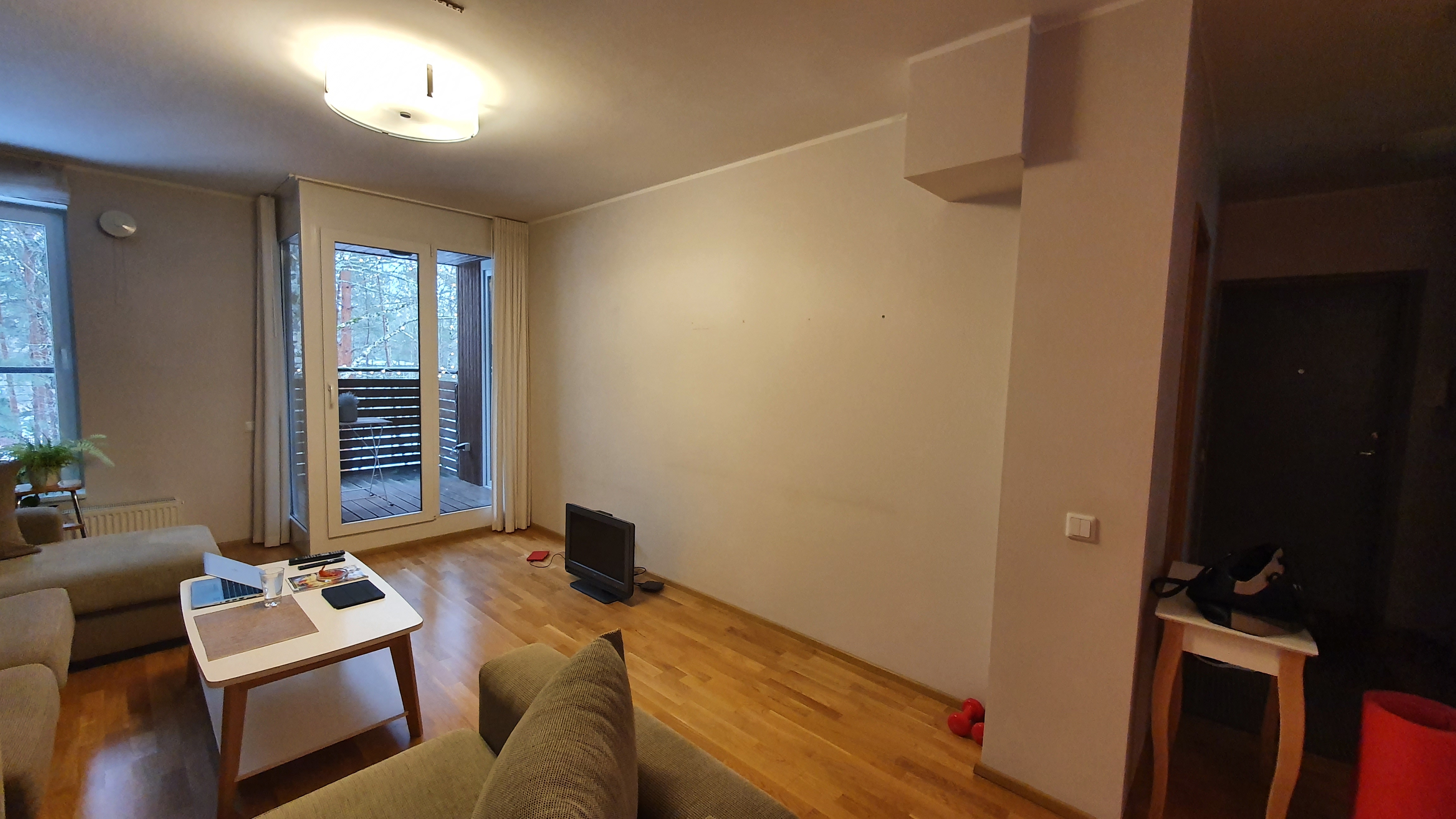 Korter on üldiselt heas seisukorras, seinad sirged jne, st tegu on lihtsamat sorti ilu- või värskendusremondiga. Elutuba 17,3 m2, avatud köögiosa 9,1 m2, esik 5,1 m2 (vt lisatud joonis).