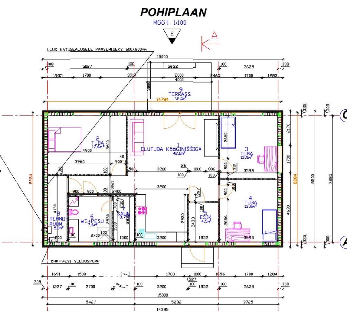 Oleks soov siis vana maja renoveerida mille mõõdud on 15,0m x 8,5m.