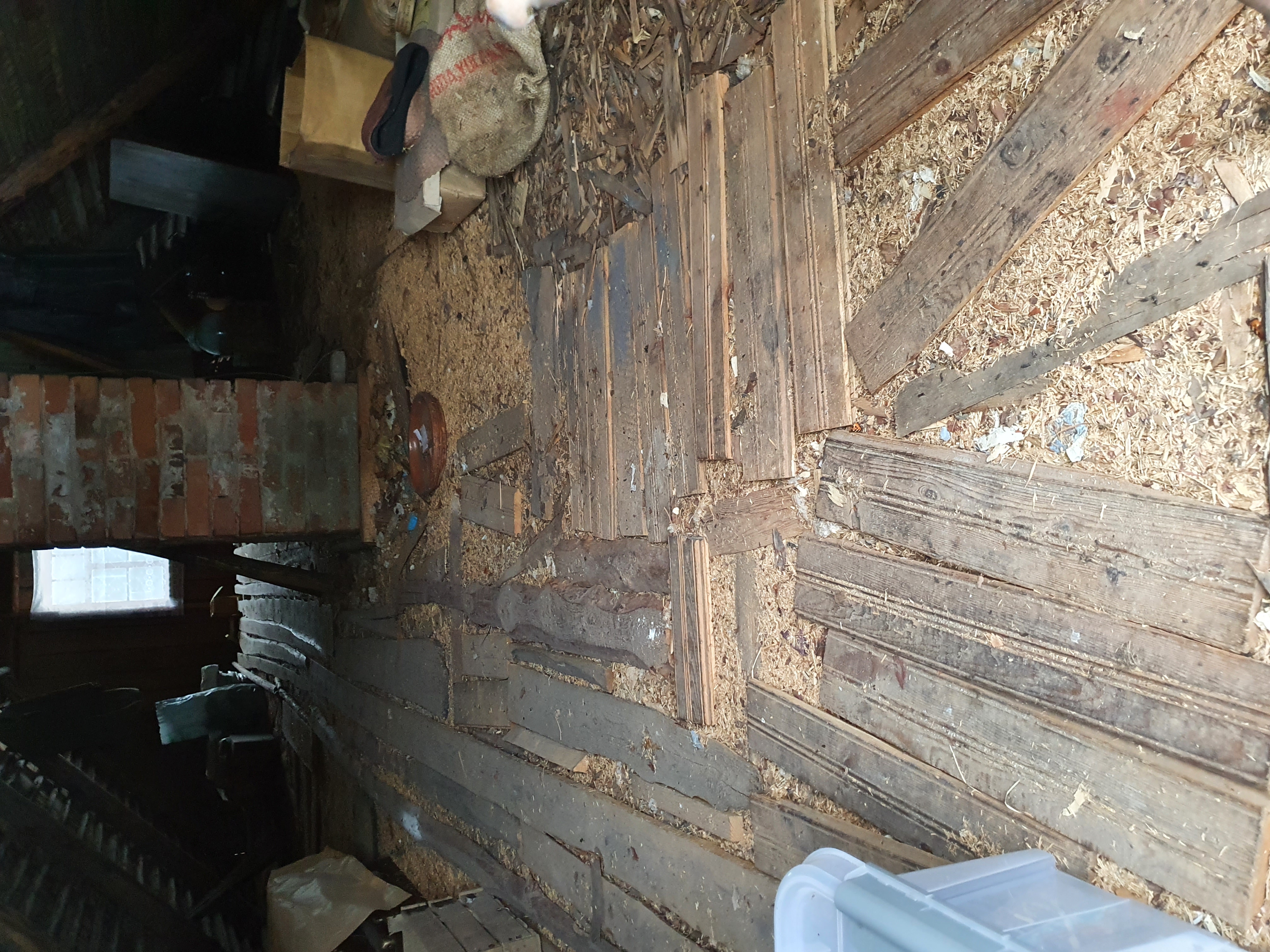 Vana puitmaja. Hetkel on saepuru siis maas aga selle saame ise valja veetud/koristatud.