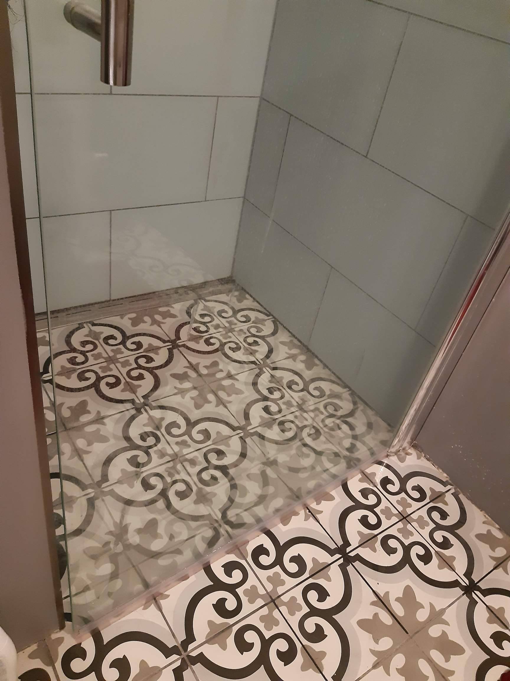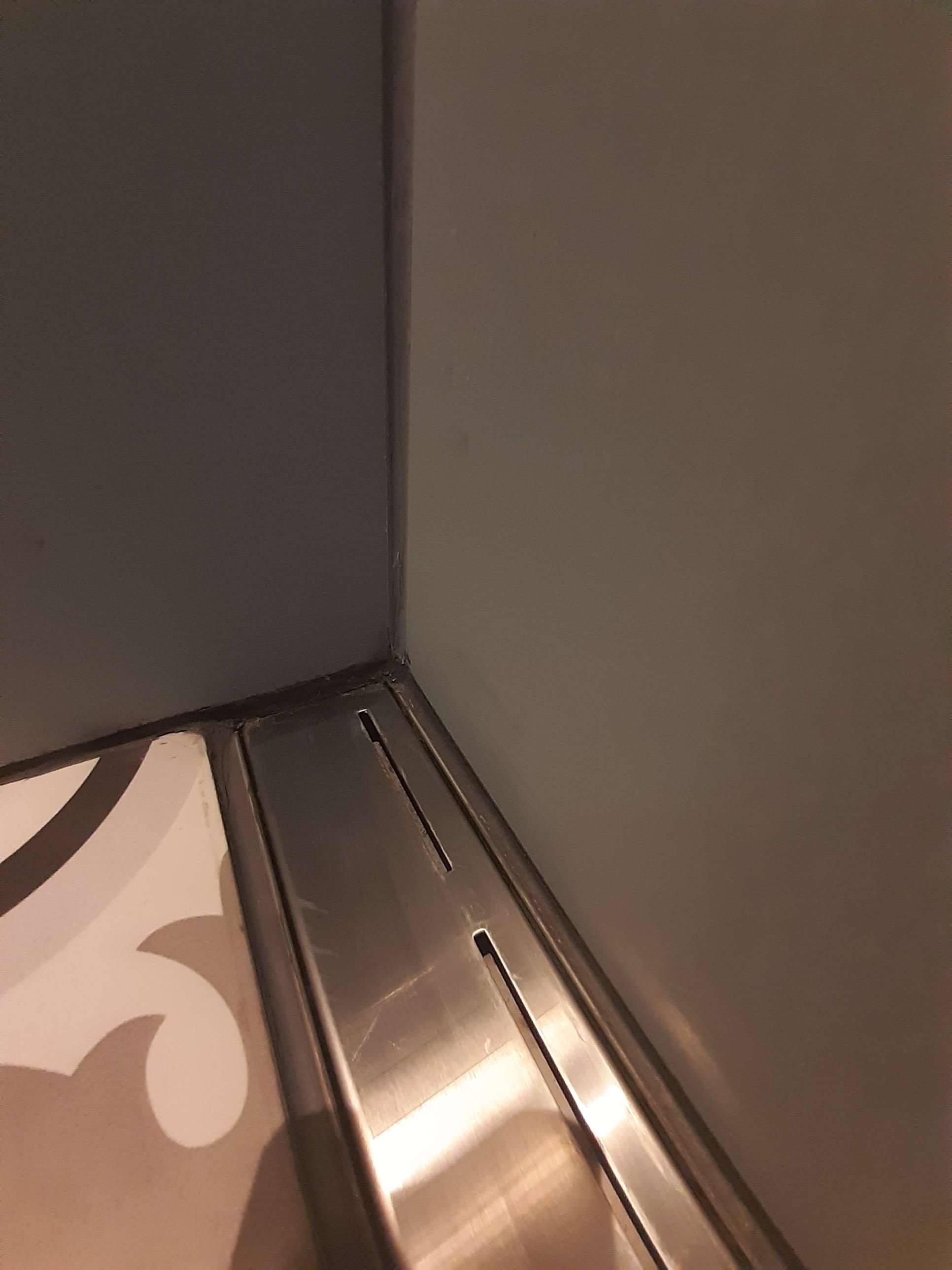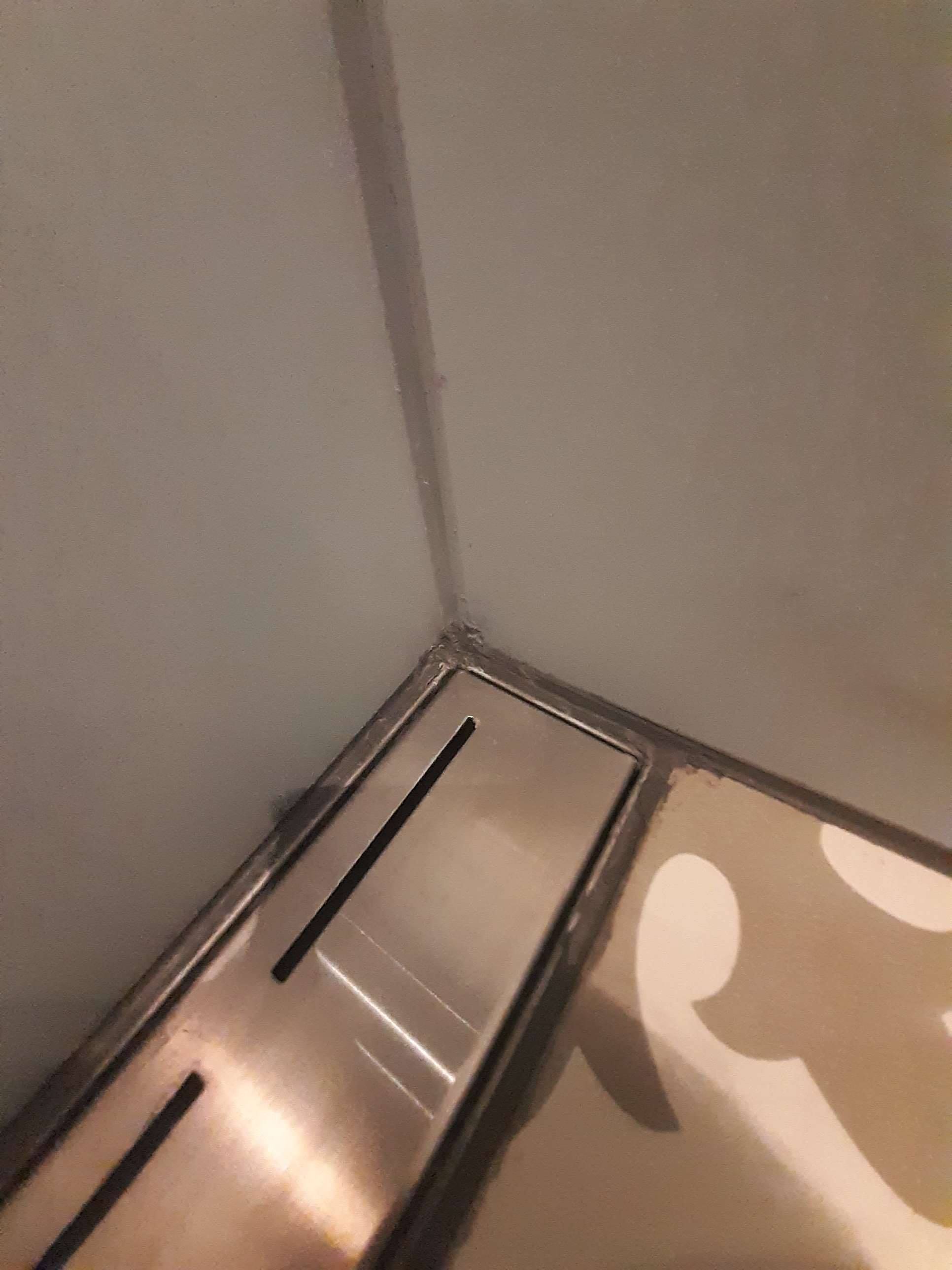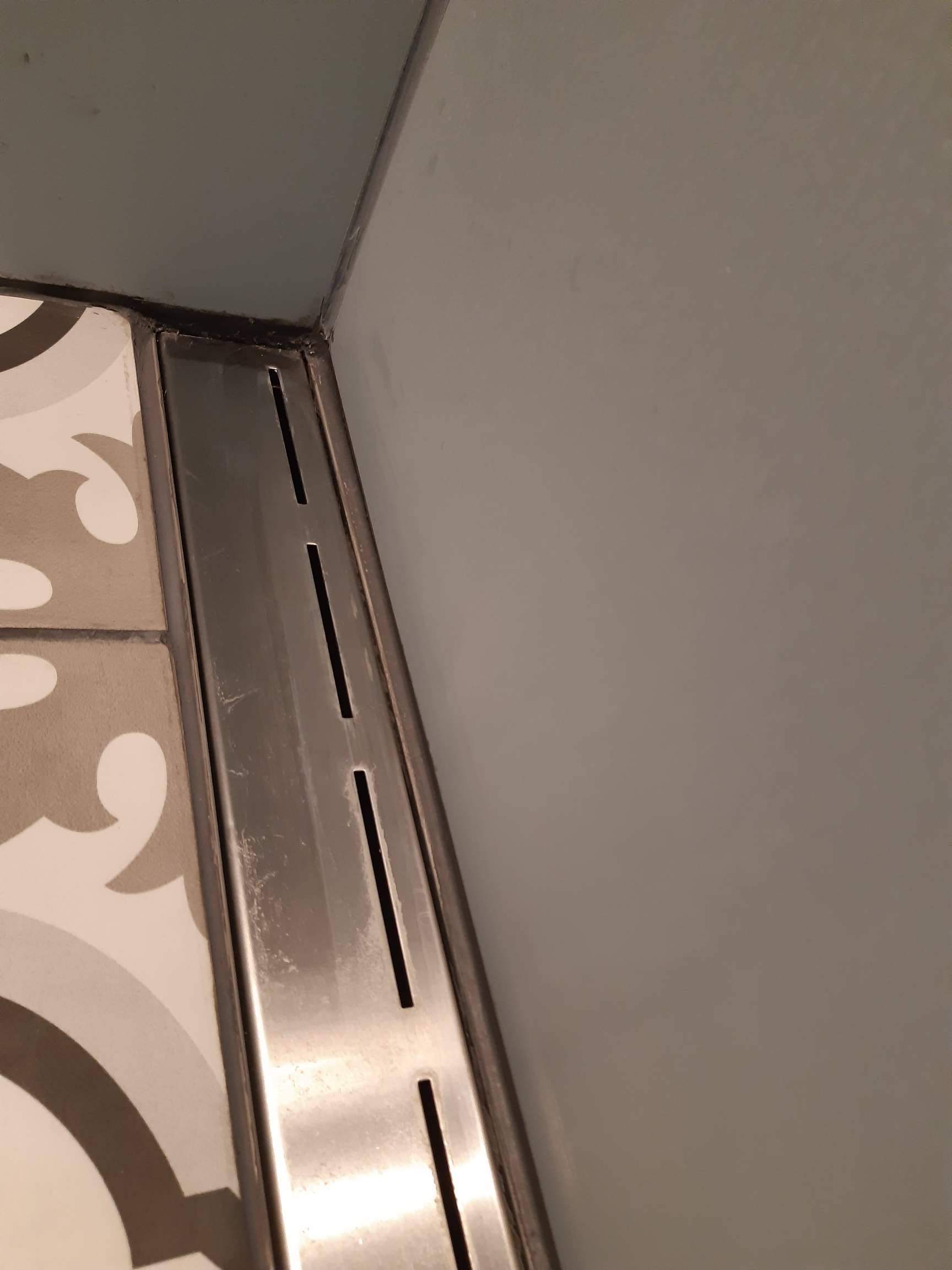 Eelmisel aastal teostatud vannitoa remondi käigus paigaldati renntrapp valesti. Trappi ümbritseb paks inetu silikoonikiht, see asub põrandaplaatidest ca 5 mm madalamal (paigaldusjuhendi järgi peaks olema põrandaplaatidest kuni 1 mm madalamal) ning asub ka dušinurga seintest erineval kaugusel. Samuti ei ole trapp täiesti loodis.