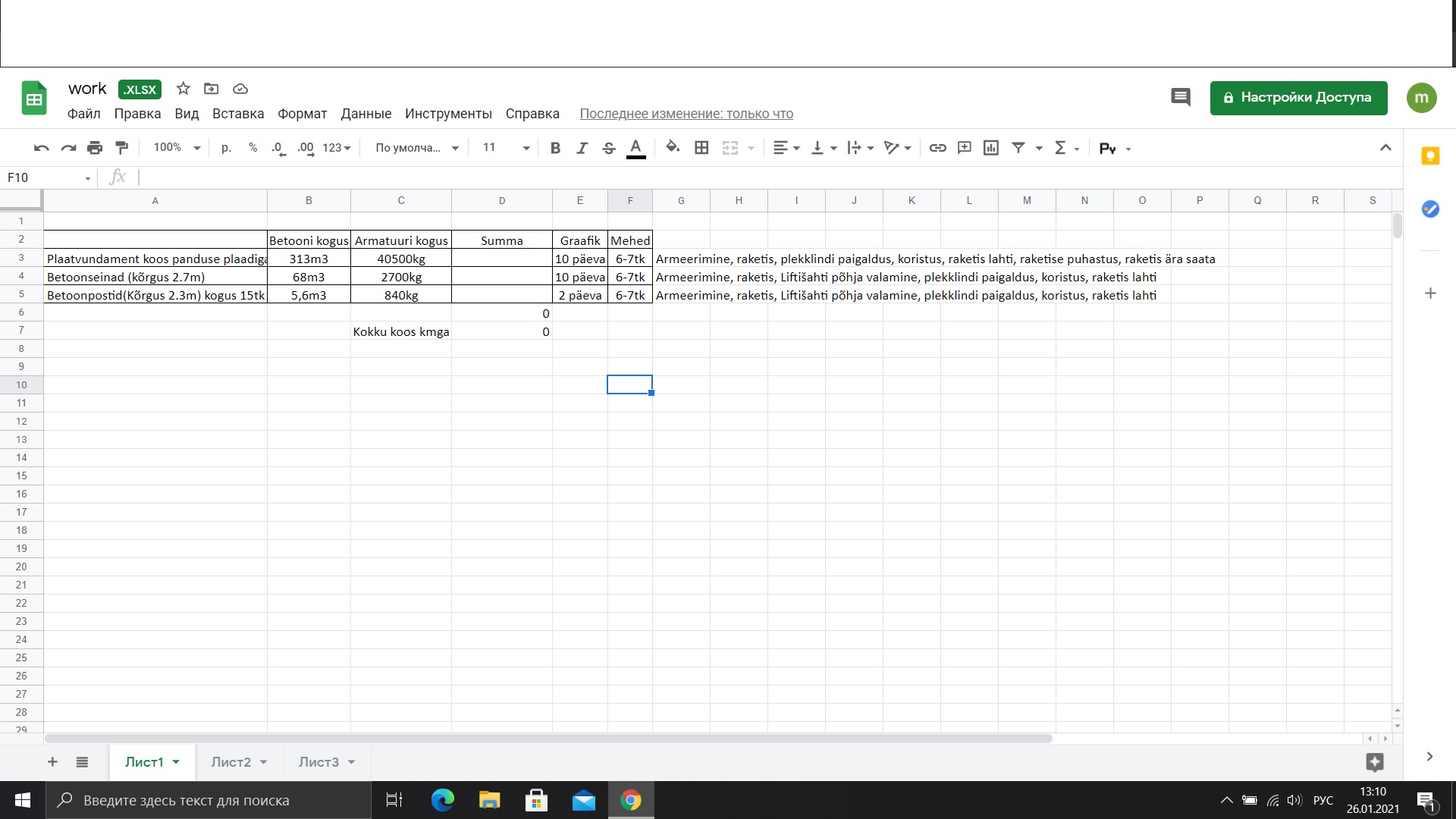 | Ehitusmaterjalid: | Töö tellija poolt |