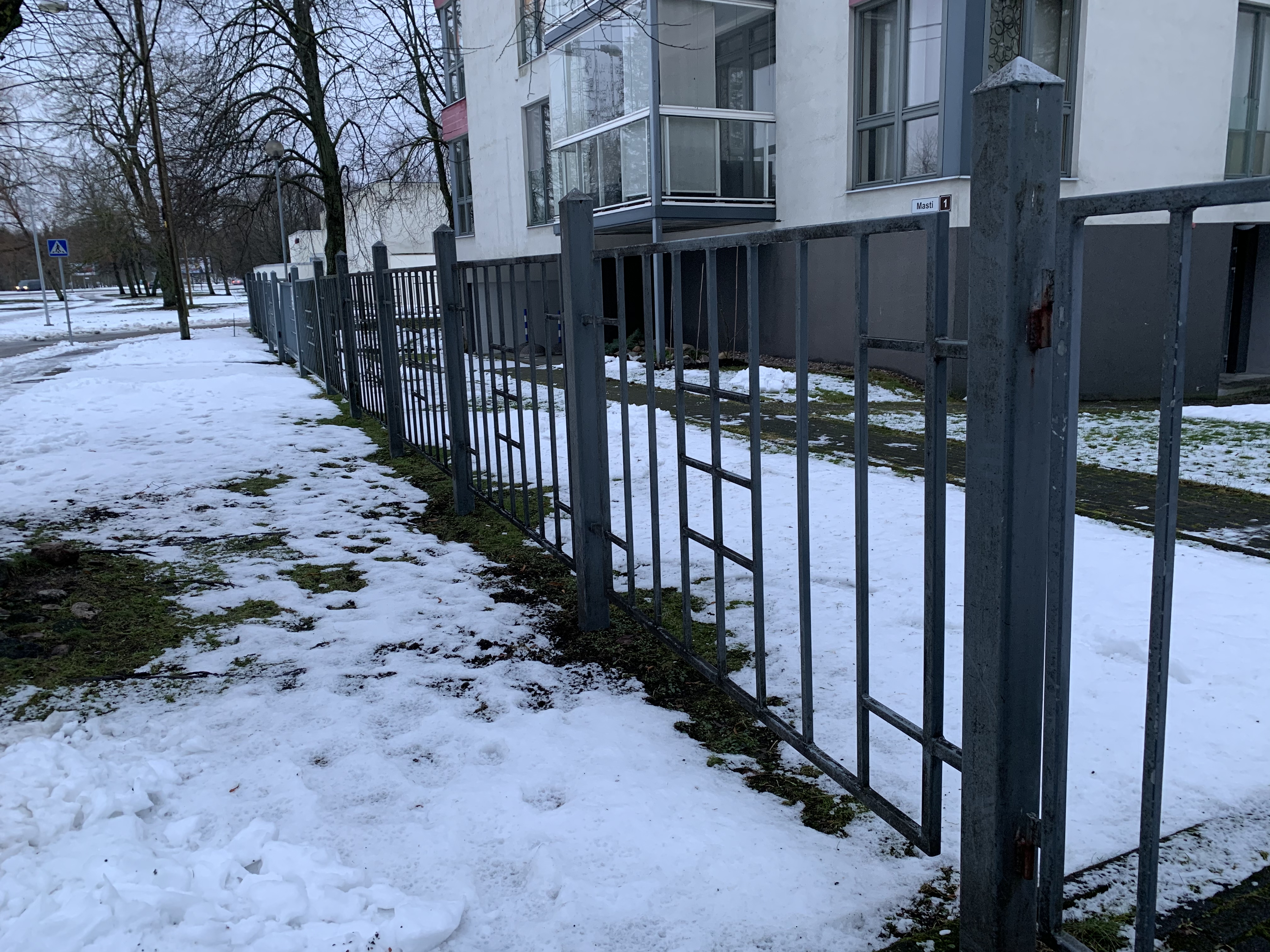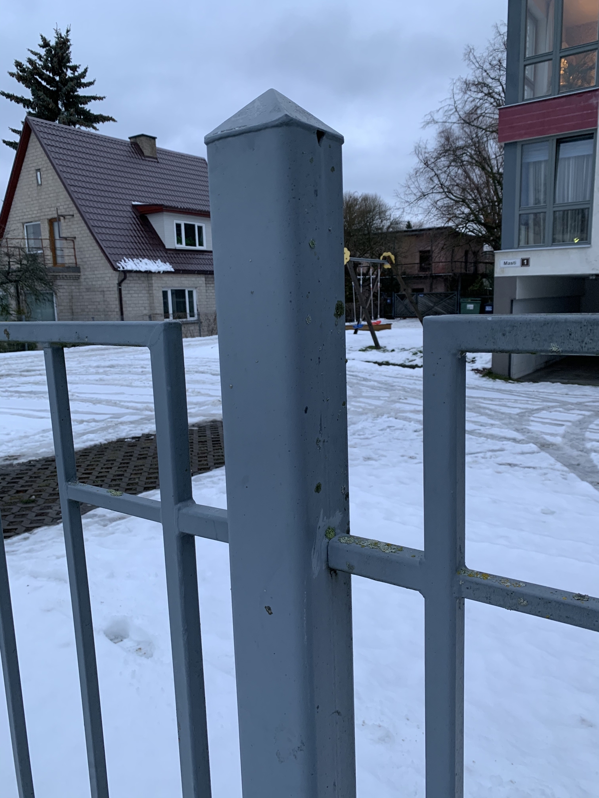 Tallinnas Pirital asuva korteriühistu alumiiniumist metallaia puhastamine vanast värvist. Katmine kruntvärviga ja värvimine halli metallivärviga RAL-7000. Aia moodulid on kinnitatud poltidega. Eeldatavasti tuleb aia moodulid lahti võtta ja seejärel värvida.