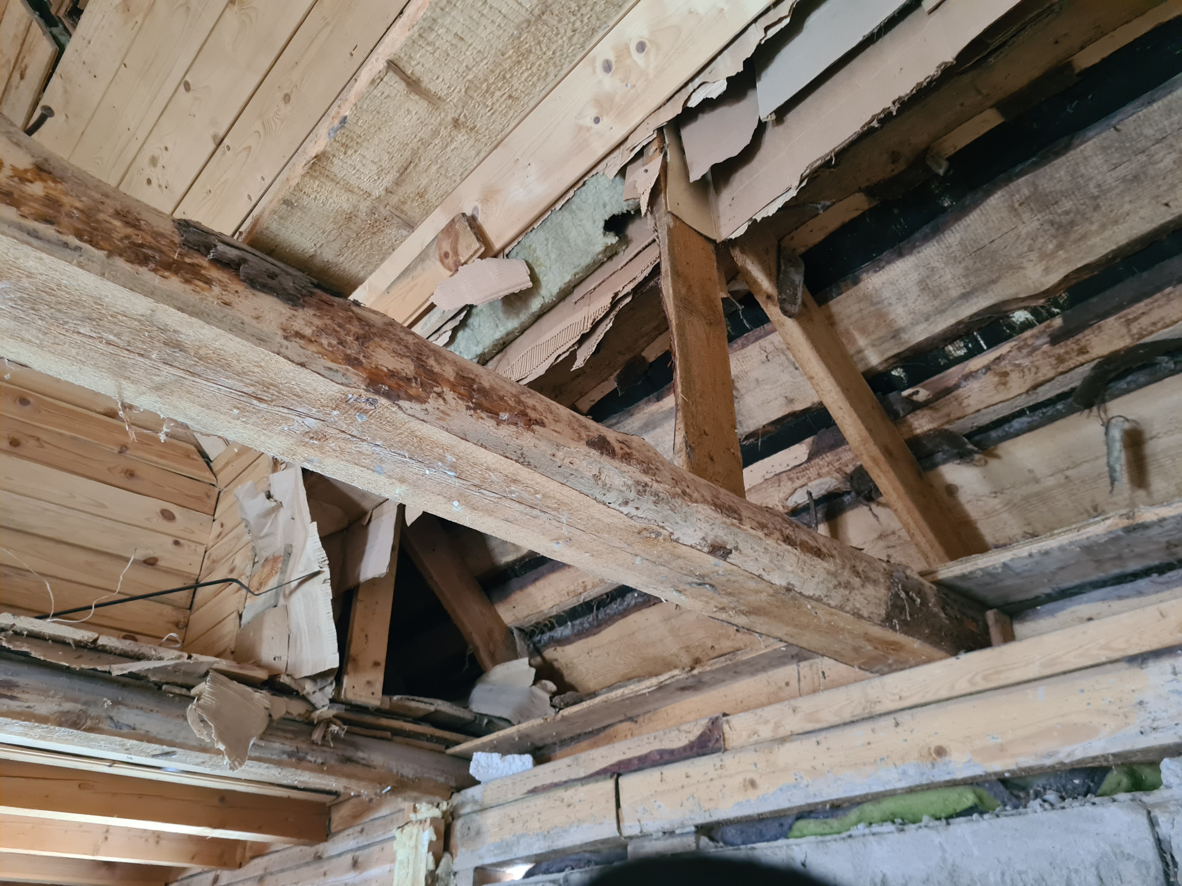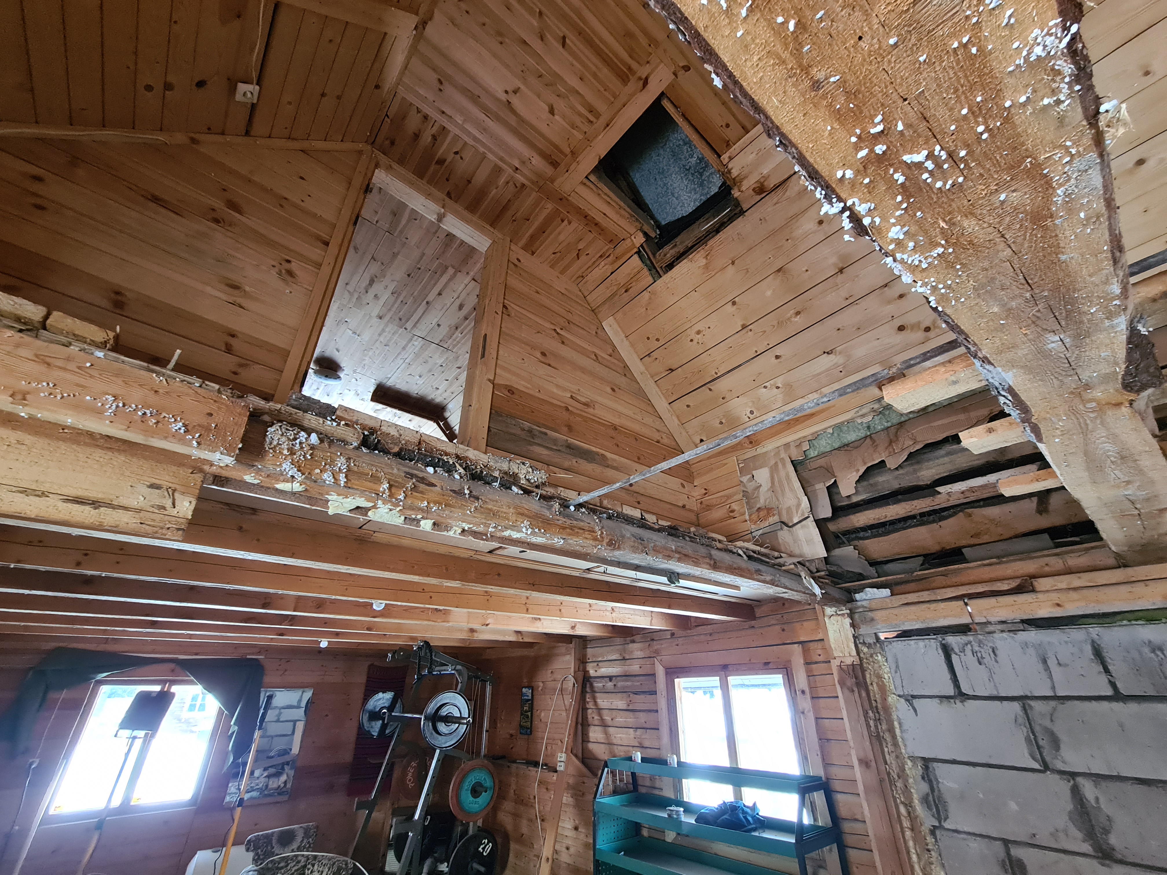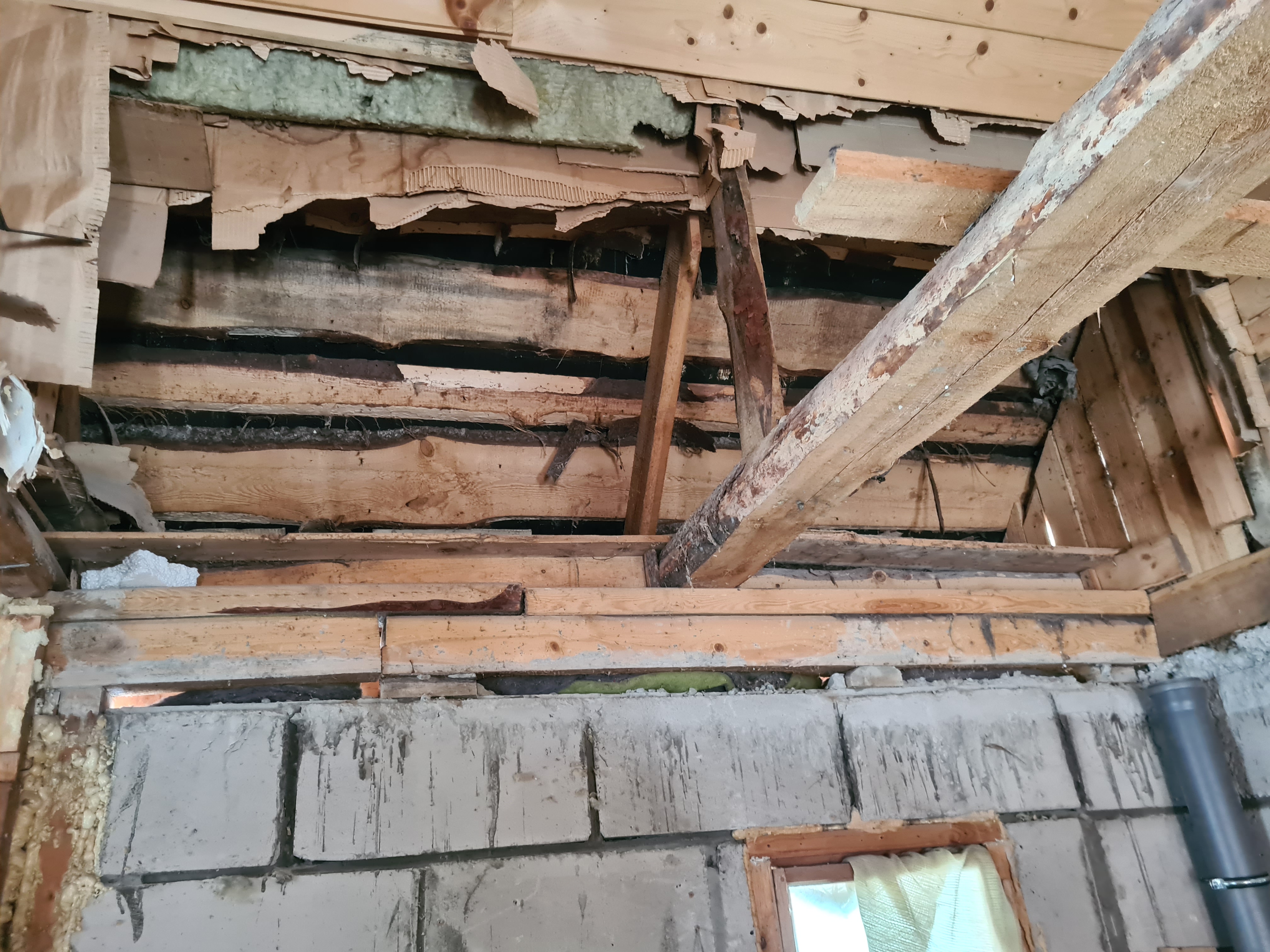 Olemasolevad sarikad (50x150mm) on paigutatud keskmiselt 700mm sammuga, kuid leidub ka 600mm ja 900mm vahe (keskkohast mõõdetuna). Lisaks on ühes maja osas sarikad ~1300mm sammuga kuhu oleks vahele vaja paigutada lisasarikad (2+2 lisasarikat kokku, tuhaplokist seintega osa piltidel). Katusel on üks korstna läbiviik (tuleb moodulkorsten (mitte osa sellest tööst)), muus osas ühtegi tehnilist osa ei ole.