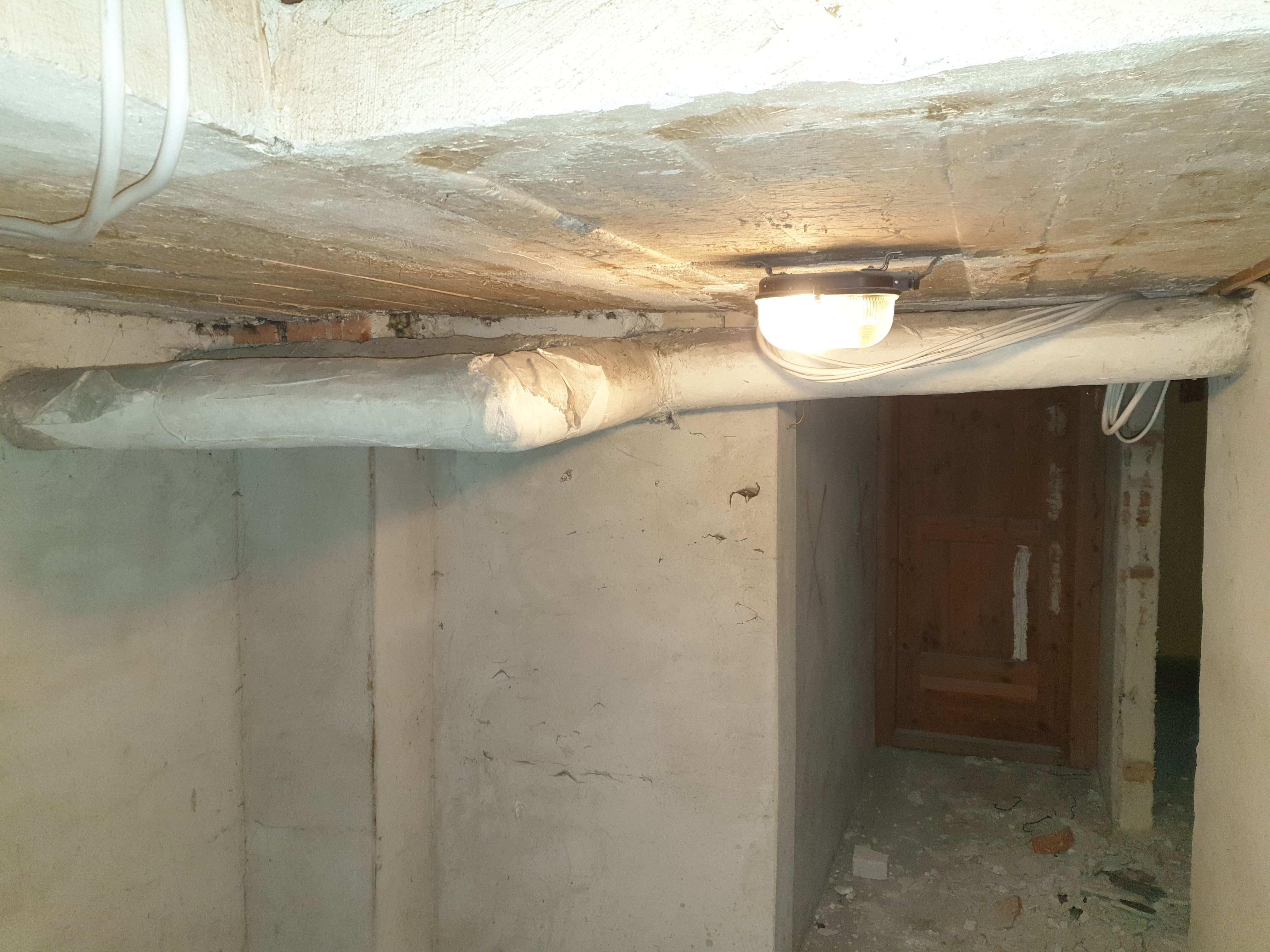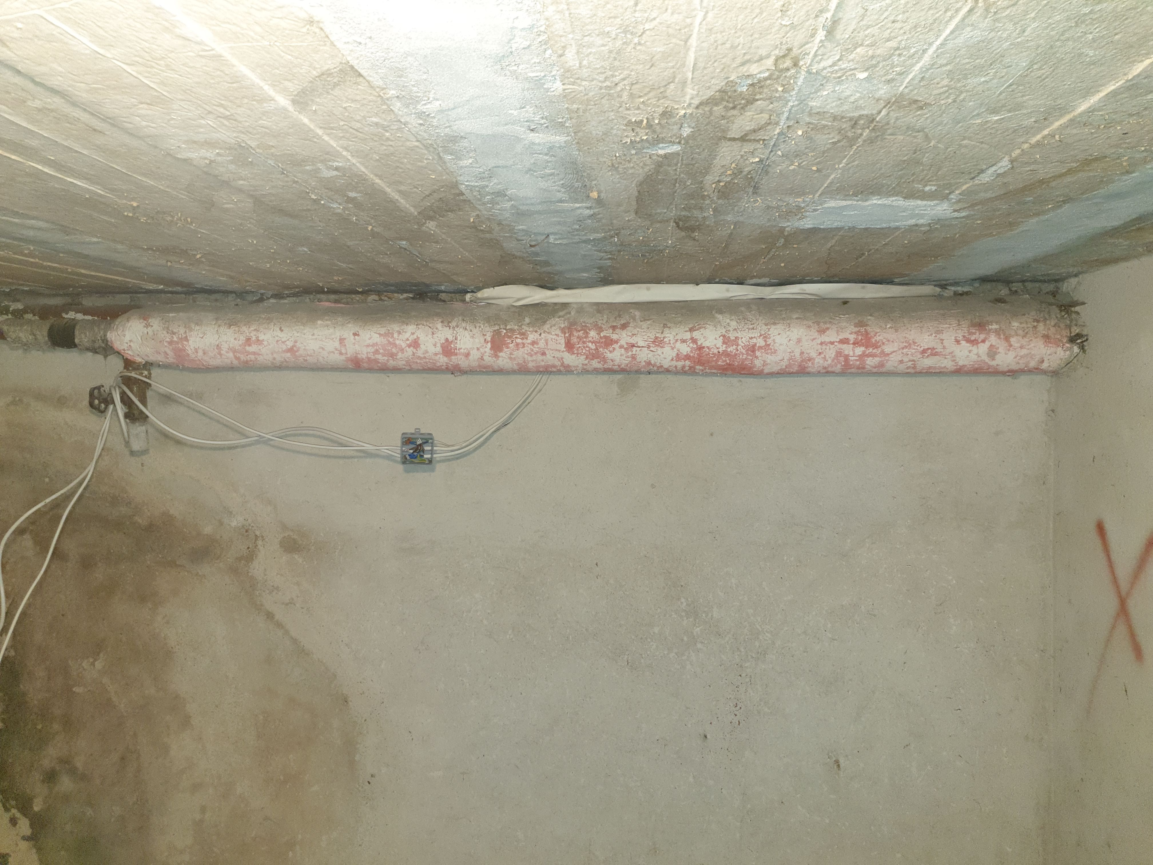 Torud ei ole kasutuses ja on tarvis eemaldada seega on võimalus torud koos asbestiga tervena eemaldada. Siiski vaja teha sisselõikeid, et saada eemaldatavaid juppe, samuti pikkadel osadel asbesti taga kandurid/traadid millega toru riputatud. Luugi kaudu võimalus viia välja keldrist ka pikki juppe (pakun, et 5m).