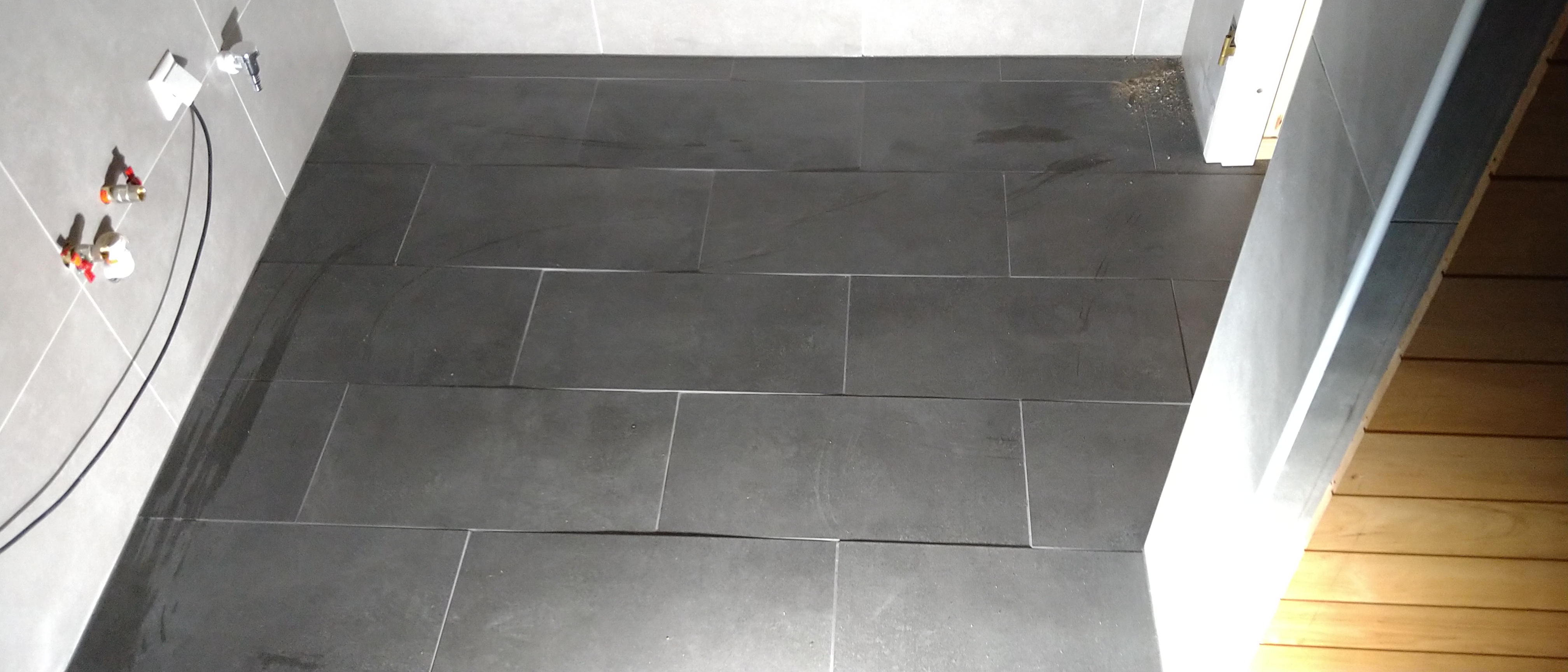 Eelmine ehitaja, kes kõik tegi algusest peale ei saanud plaatimisega hakkama, plaadid lainetavad. Põhjuseks ilmselt pikk plaat 30x60 mis keskelt kumer ja tegi sellise mustriga, et järgmise rea plaatide algus hakkab just teise plaadi poole pealt. Mis veel hullem tegi 3 päeva ja pani seinaplaatide alumise rea ka ära, isegi viimistles vuugid ja silikonid ja kattis põranda kinni, seega ei näinud mitu nädalat milline on tulemus. Sellist tööd vastu ei saa võtta aga ehitaja ise keeldub põrandat üles võtmast. Seega vaja kogenud plaatijat kes saab sellise tööga hakkama ja suhteliselt vähese ajaga sest puudub teine pesemiskoht. Ilmselt tuleb aluspinna kaldeid muuta, sest tahan 60x60 plaati nagu algses projektis oli. Seinaäärne pikk trapp lubab panna suuri plaate ühes suunas kaldega.