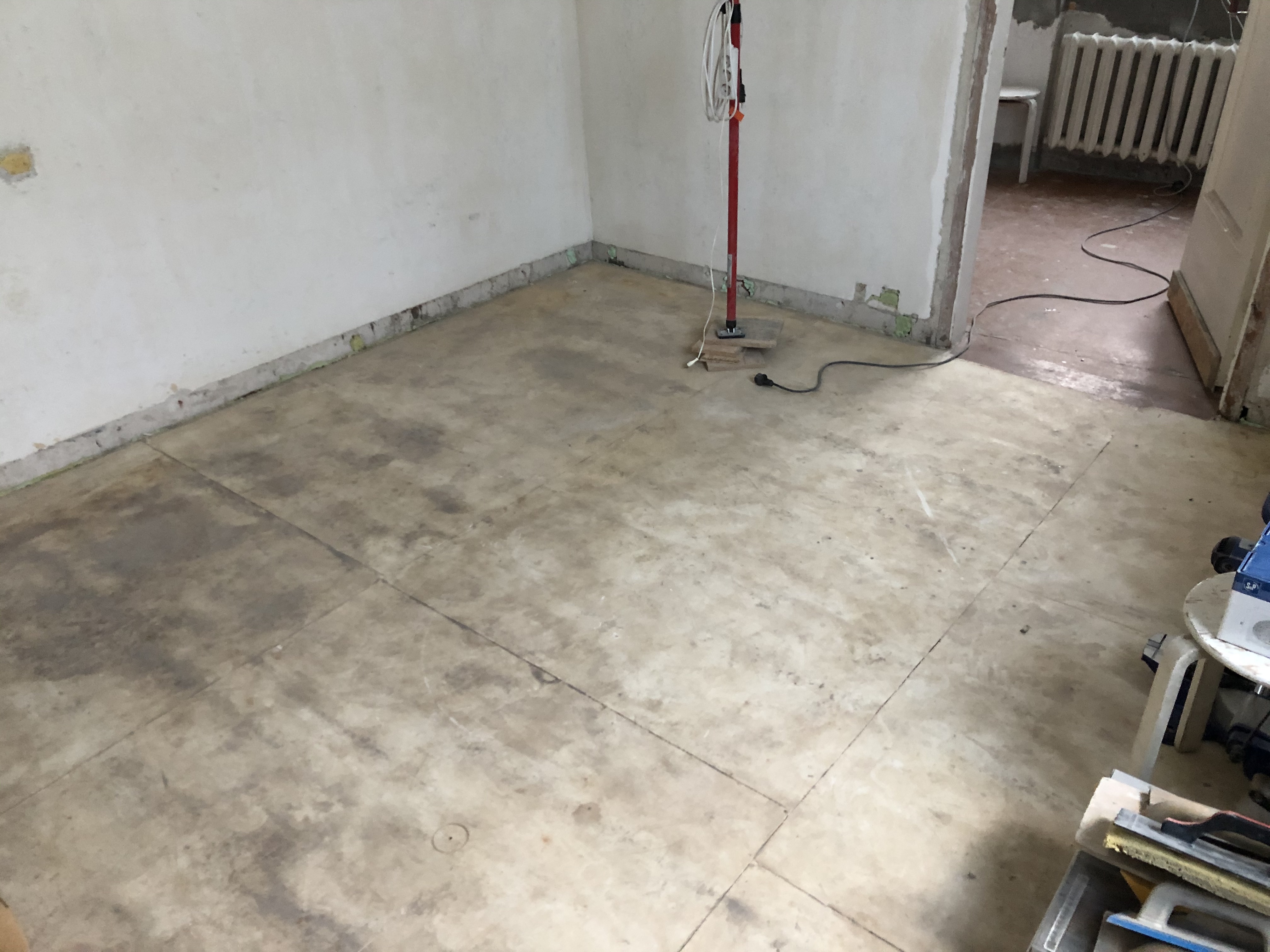 - Vajadusel vana põrandakate (hetkel põrandapapp) eemaldada ja utiliseerida, ning vanad põrandalaud tasandada
