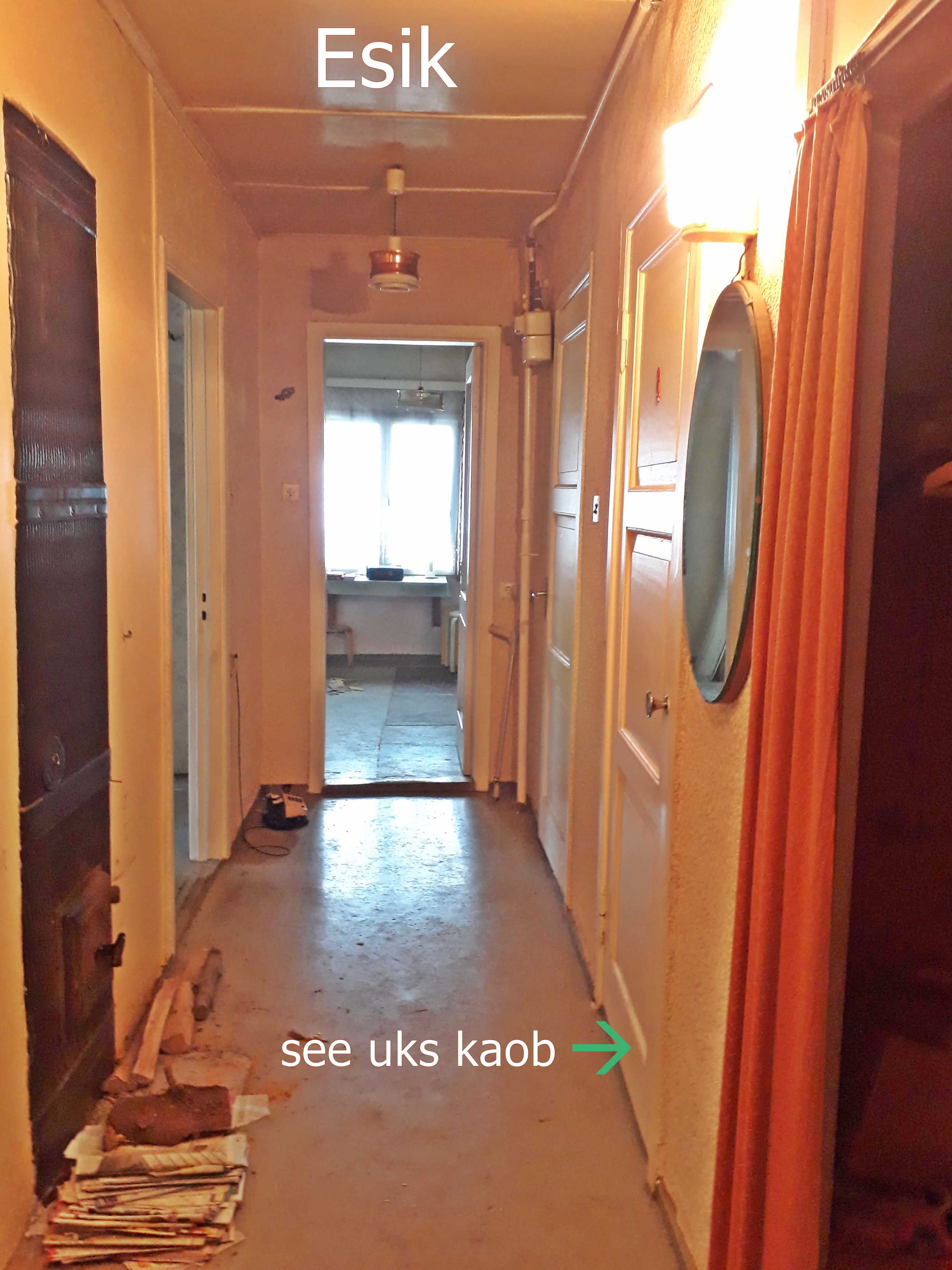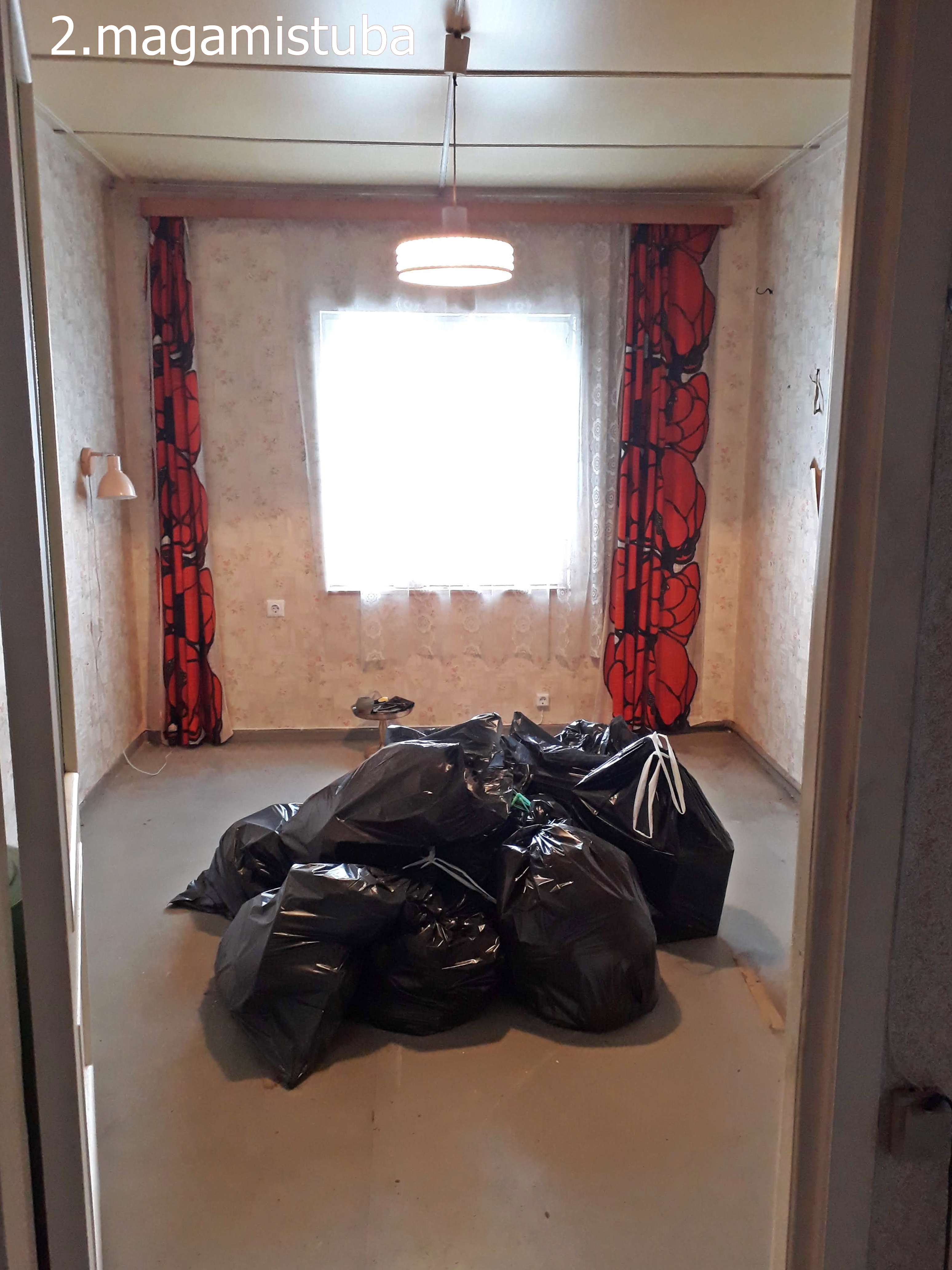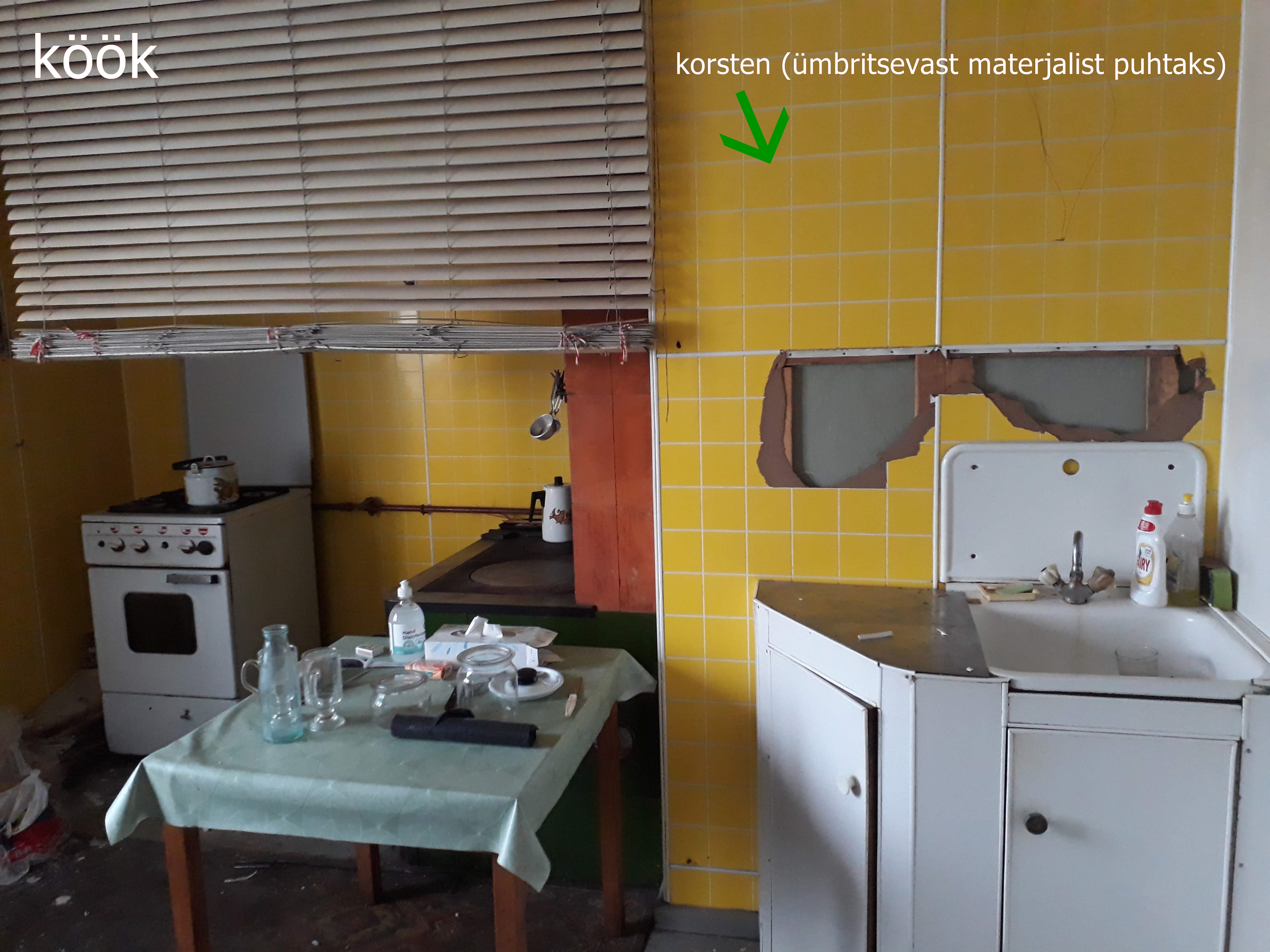 Kahetoaline korter (45,7ruutmeetrit) vajab kapitaalremonti alates lammutamisest kuni siseviimistluseni (uue küttesüsteemi teevad vaid teised firmad - vana ahju lammutamine ja uue ahju ehitus, gaasitorude ja gaasikatla paigaldus)