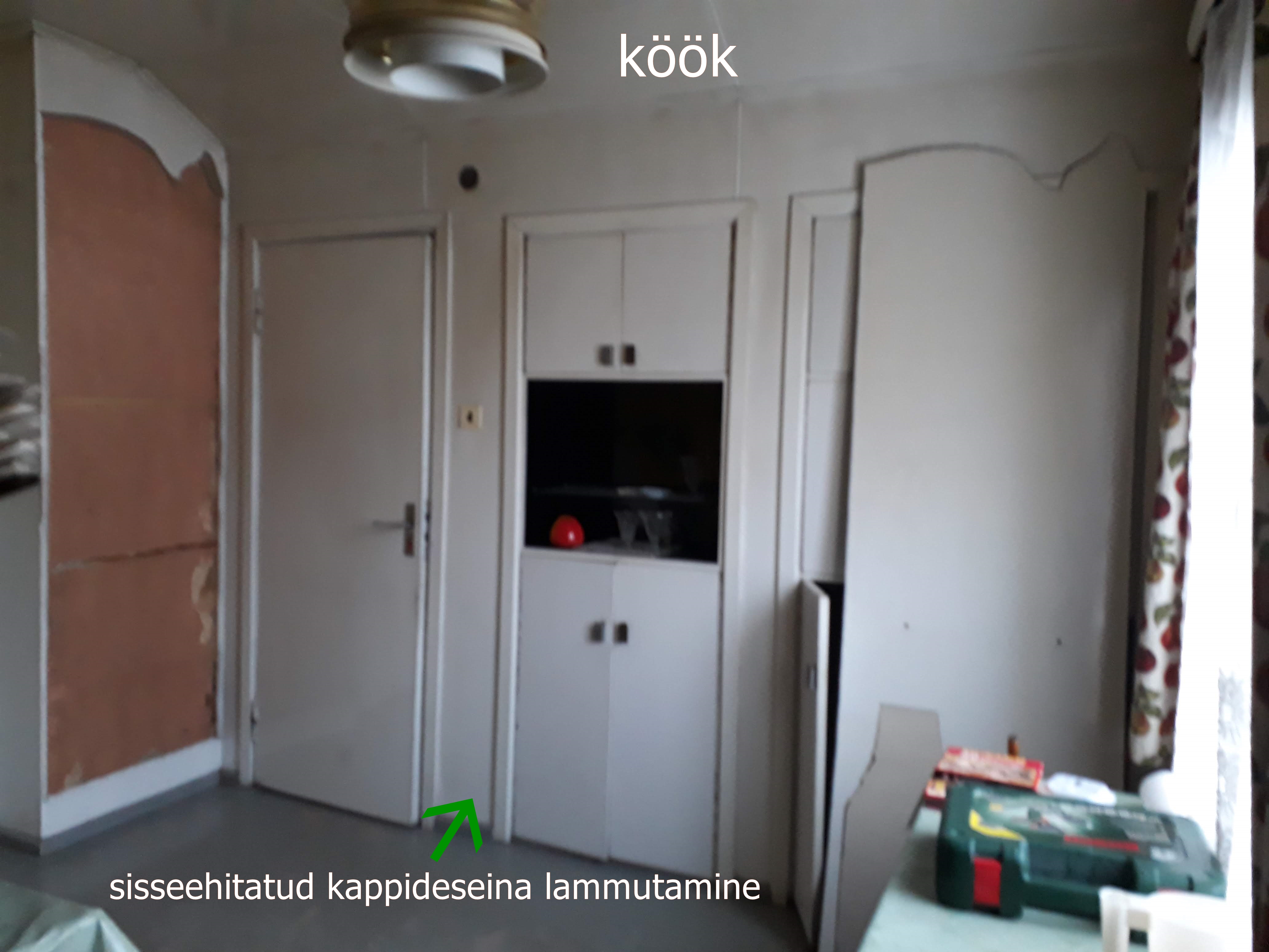 köögis sisseehitatud kapi ja esikus garderoobikapi lammutus,
