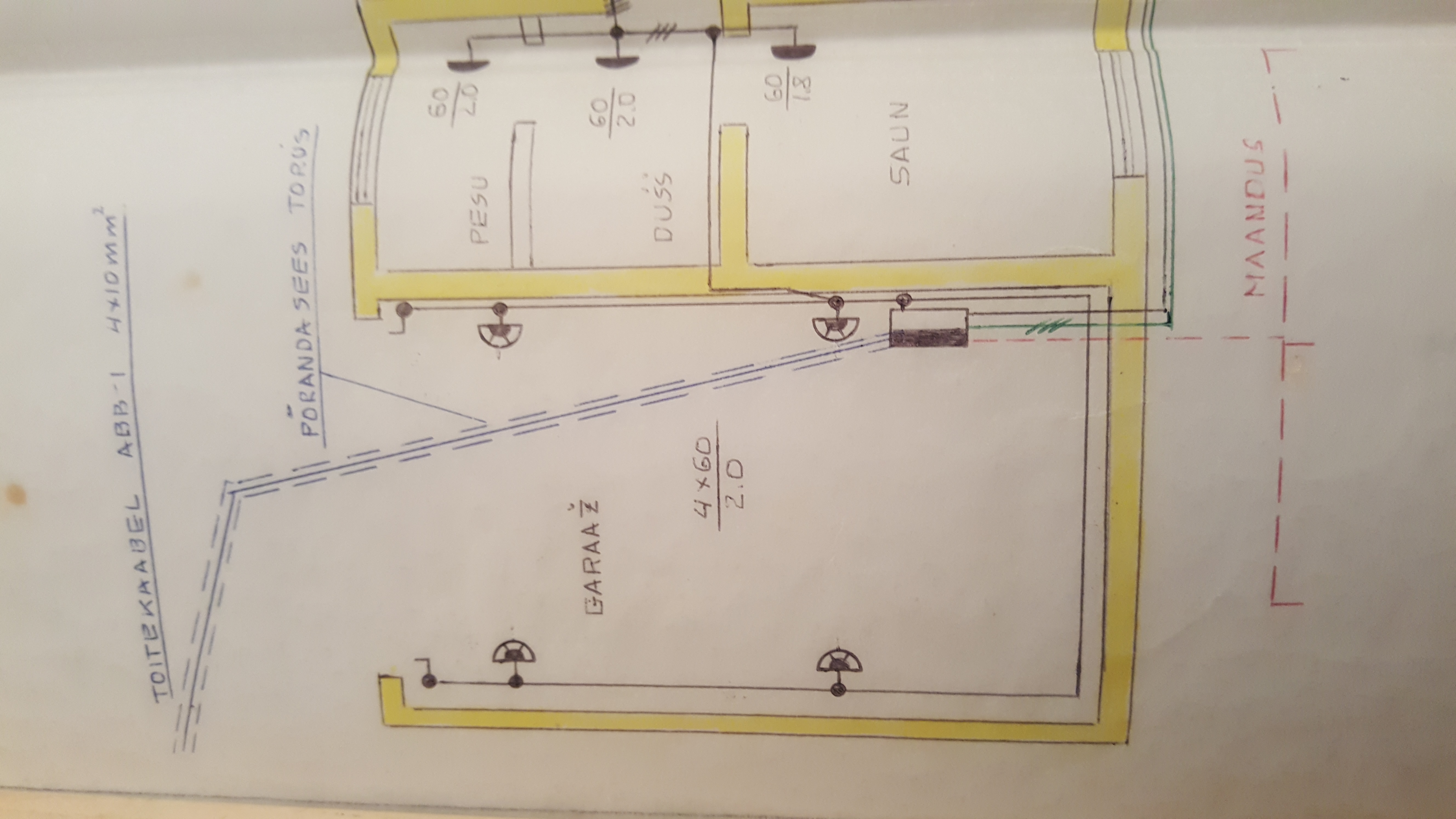 Majas on hetkel vana el. kilp kuhu tuleb elektrivarustus 380/220 V, 3X10 A. Peakaabel jookseb maja garaaži põranda mööda ja siis läbi seina kilbini.