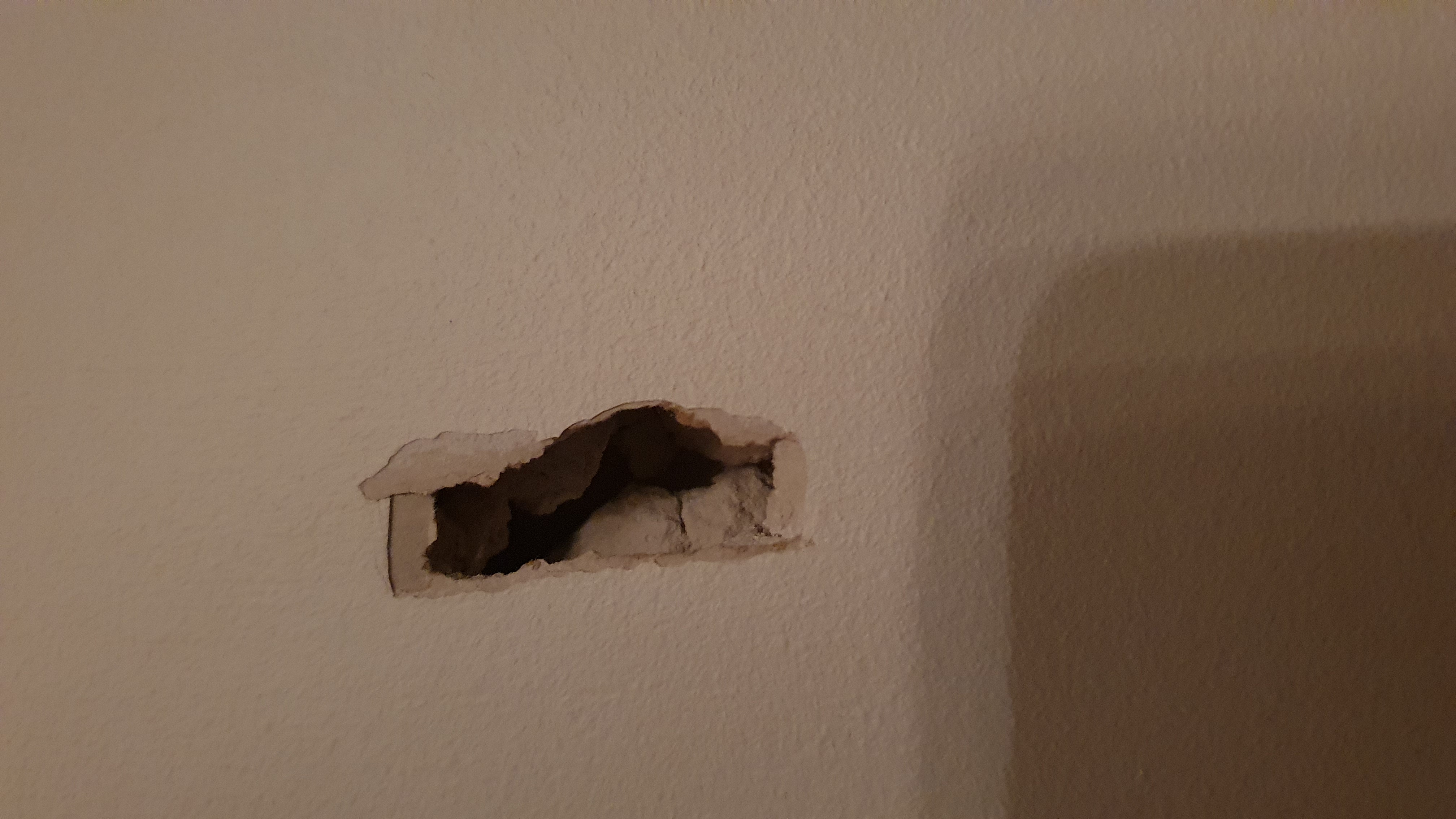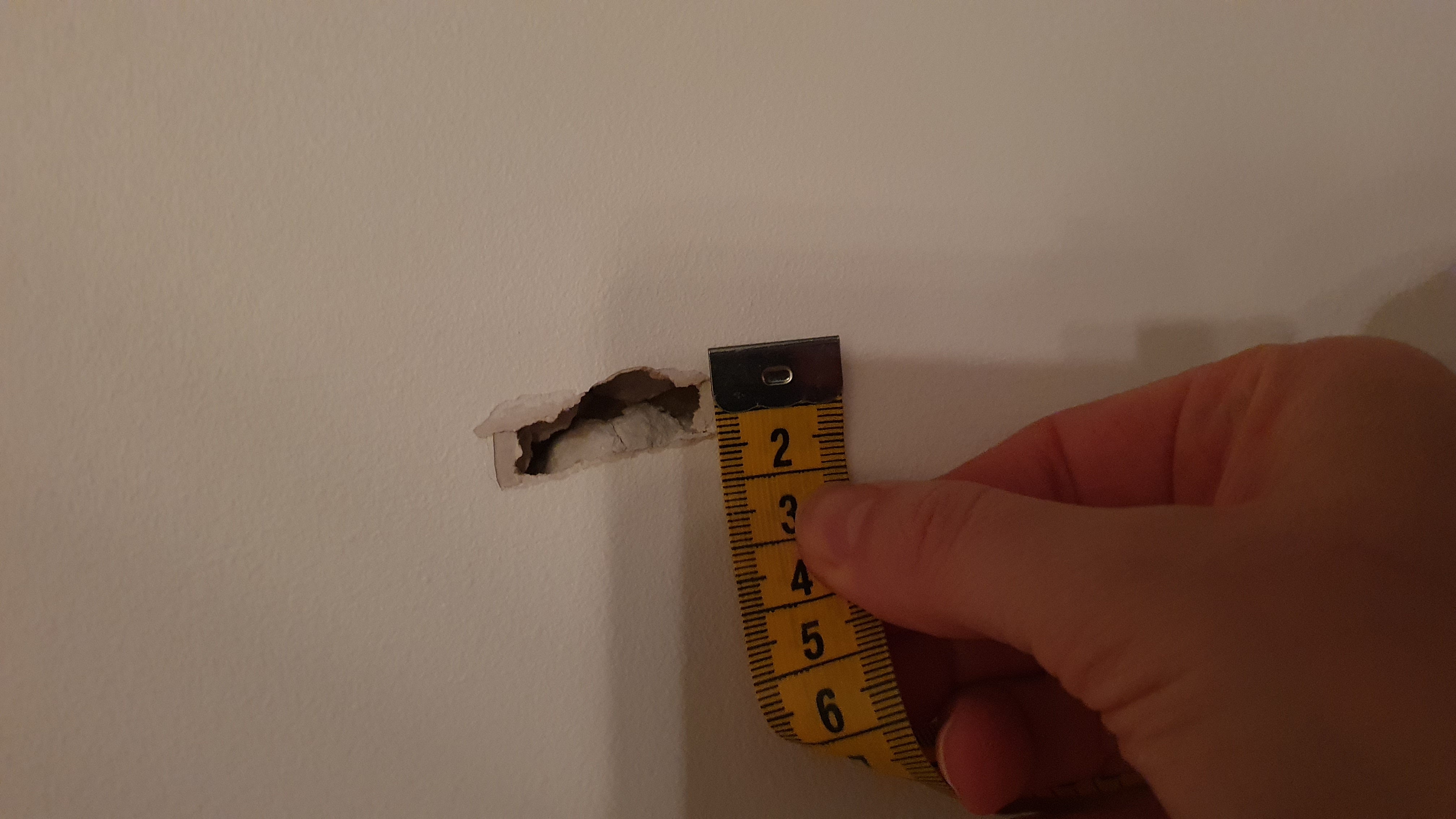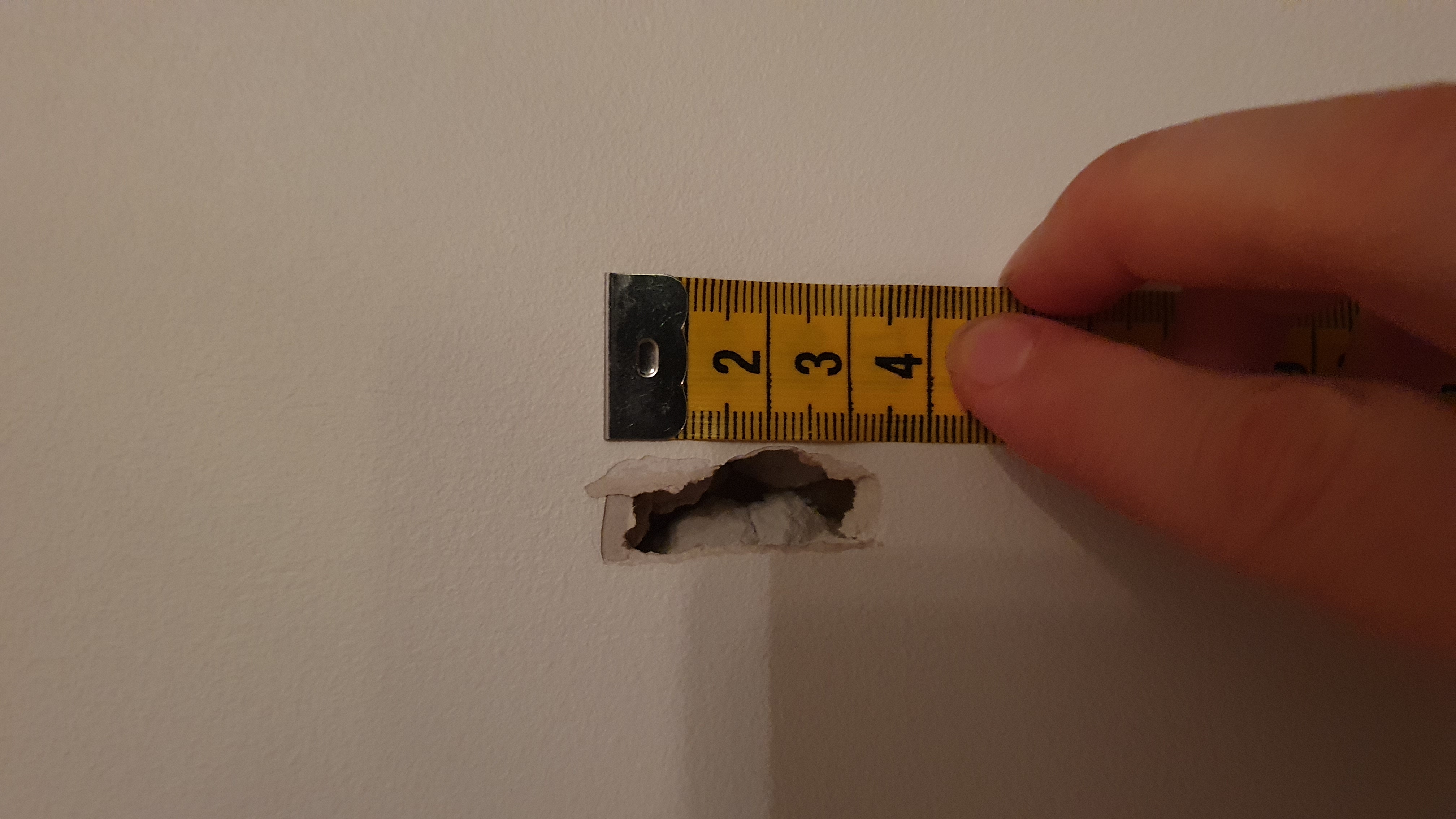 Piltidel auk paremini ja arusaadavalt näha. Seina värviks on Edelweiss (valge halli alatooniga) Värvi saame vajadusel ise hankida. Auk on sirge seina peal.