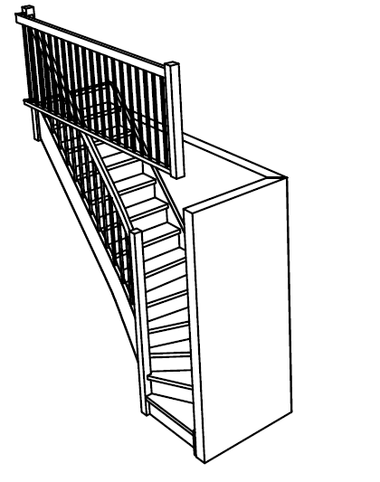Kinnine liimpuidust trepp ja piirded nagu kirjeldatud, koos paigaldusega. Kase liimpuit. Värvitud valgeks. Astmed Osmo õlivaha 3x. Tammest või saarest astmete puhul lisandub 200 EUR.