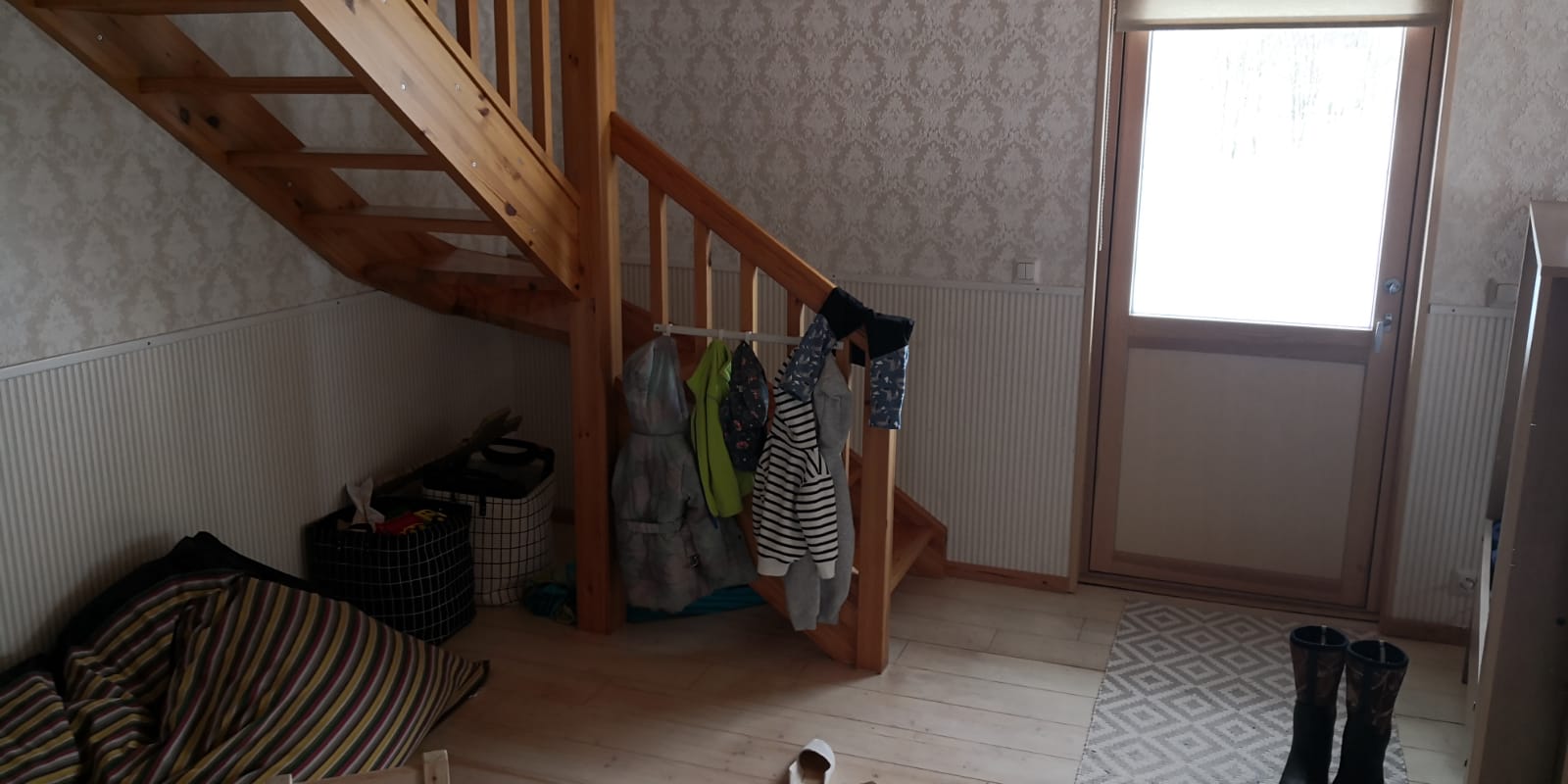 Lagi, seinad ja teisele korrusele viiv trepp oleks vaja vajadusel kilega katta. Materjal ja töövahendid tööde teostaja poolt.