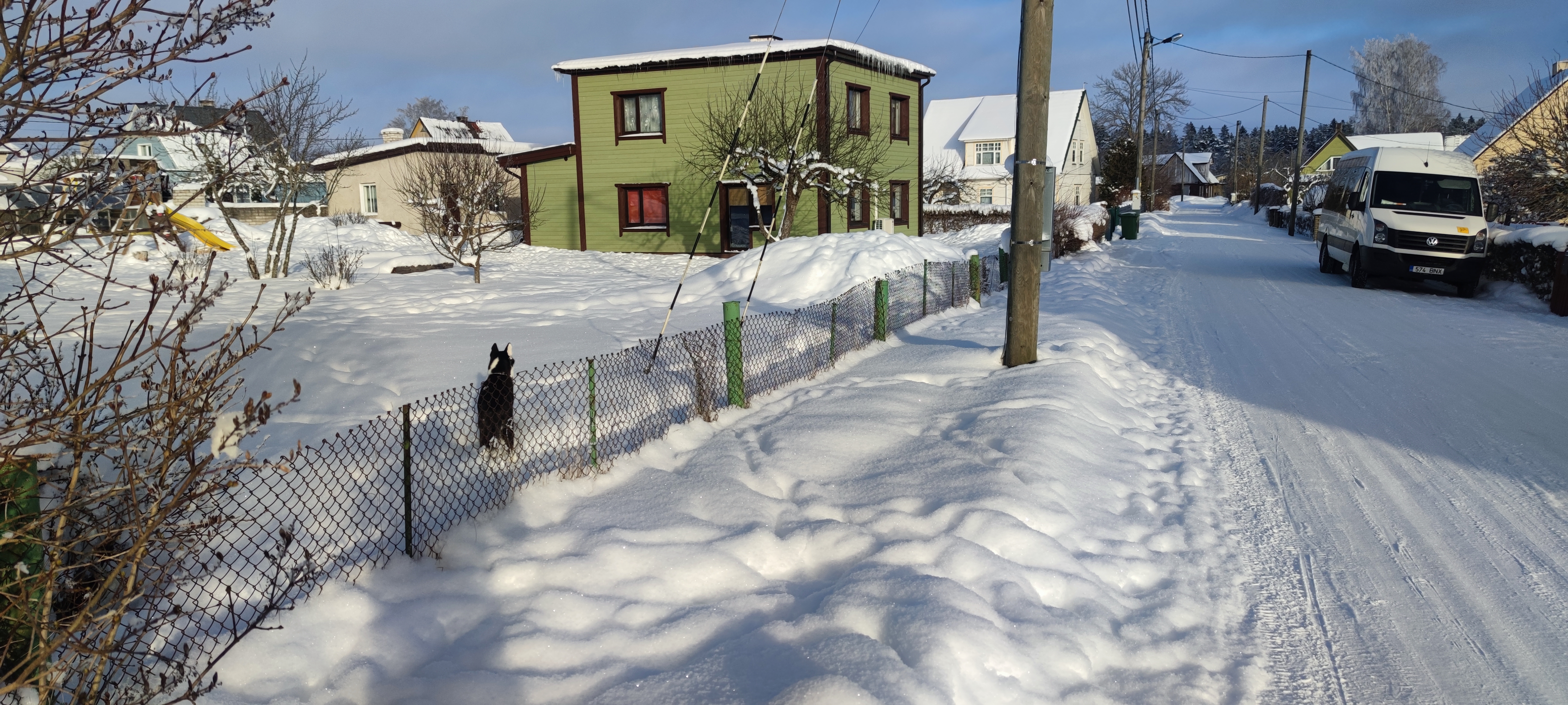 Betoonsokliga horisontaalse laudisega puitaed koos jalgväravaga ning tiibvärvaga 4 meetrisele avale. Aia kogupikkus on 50 meetrit ja kõrgus 1.5 meetrit. Aiapostid 60x60x2mm tsingitud ja värvitud tumepruuniks ( ral 8019)otsakorgiga. Väravate raamid samuti tsinitud ja värvitud ral 8019. Tiibvärav automaatika valmidusega.