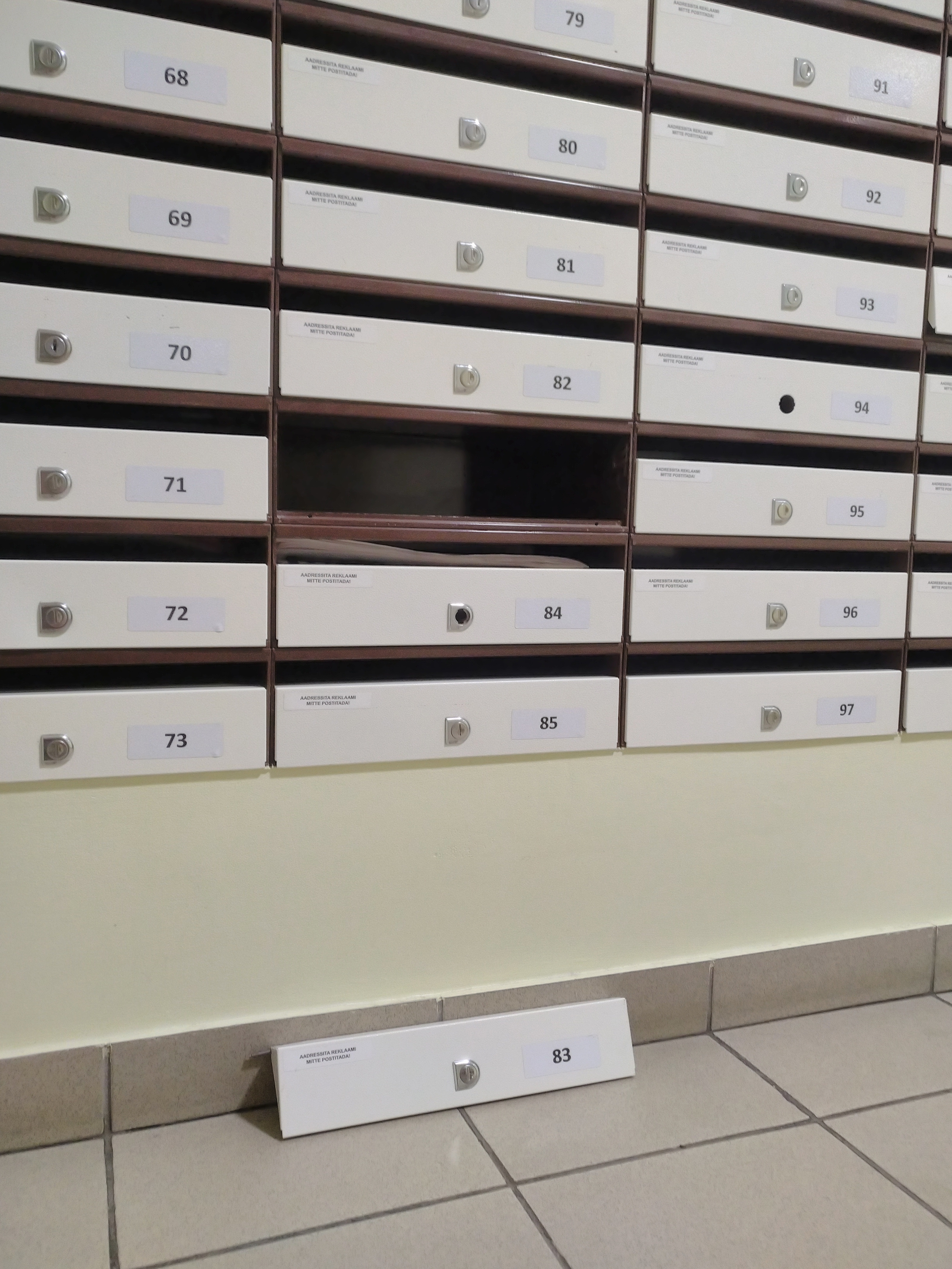 Kortermaja korter 83 postkastil on ära tulnud esipaneel, mis vajab tagasi paigaldamist.