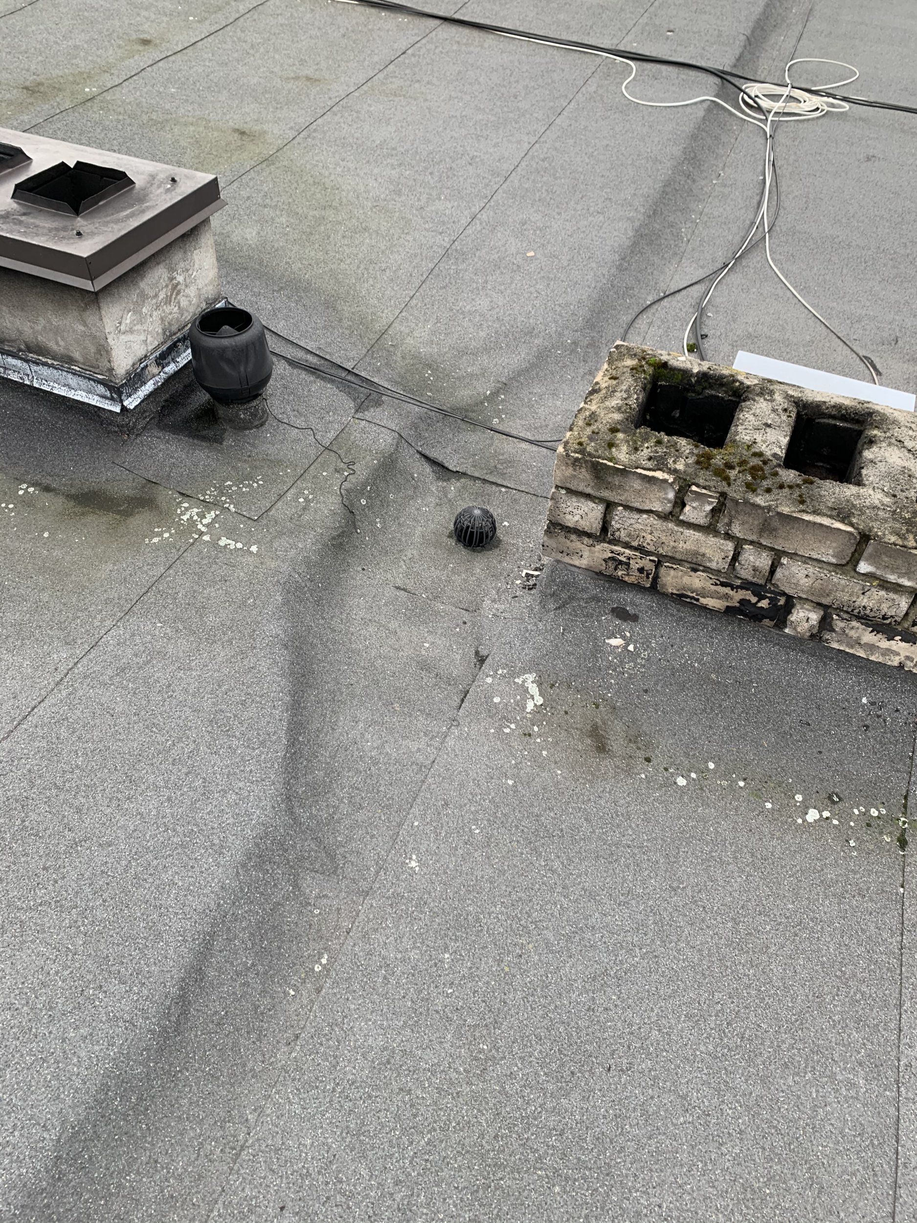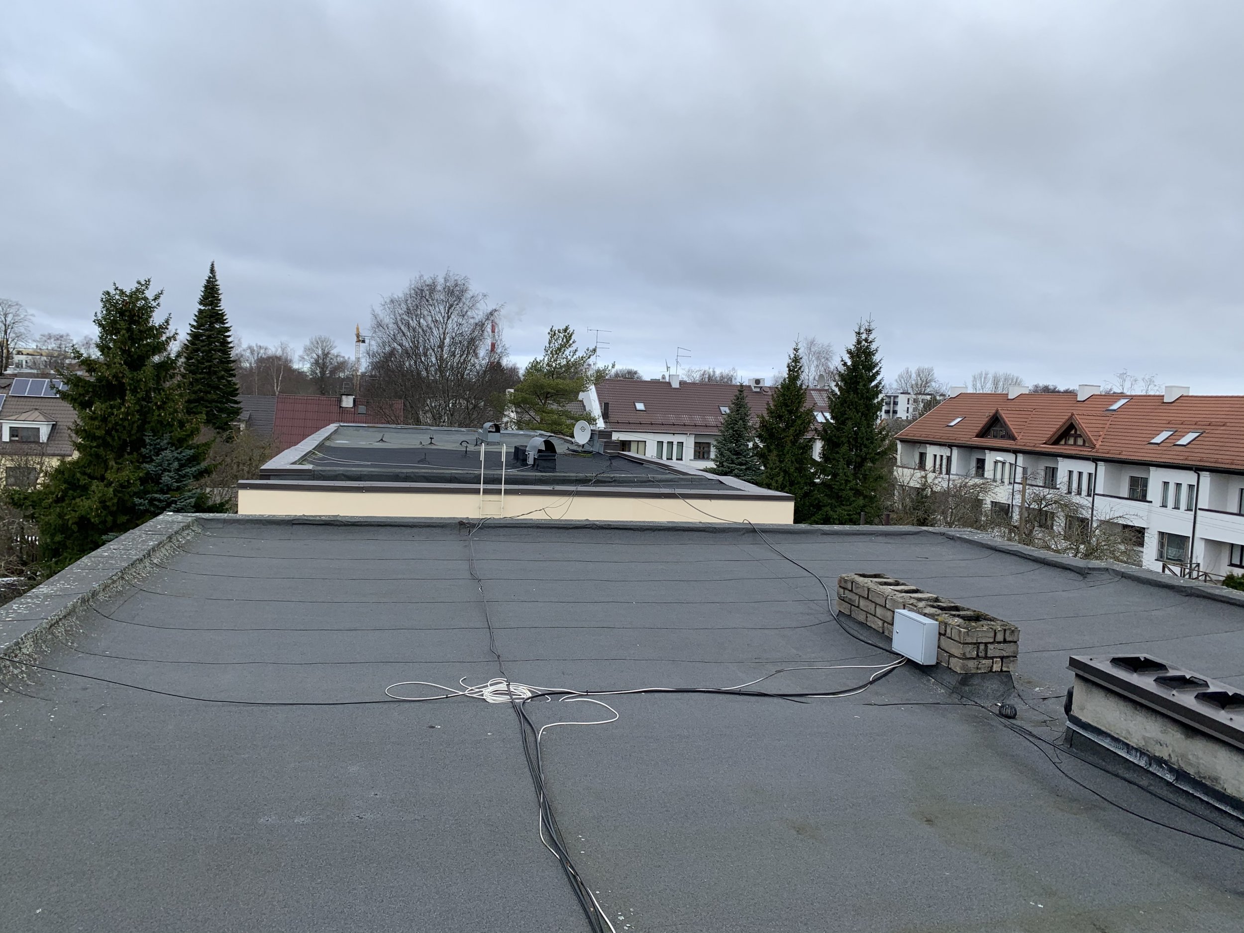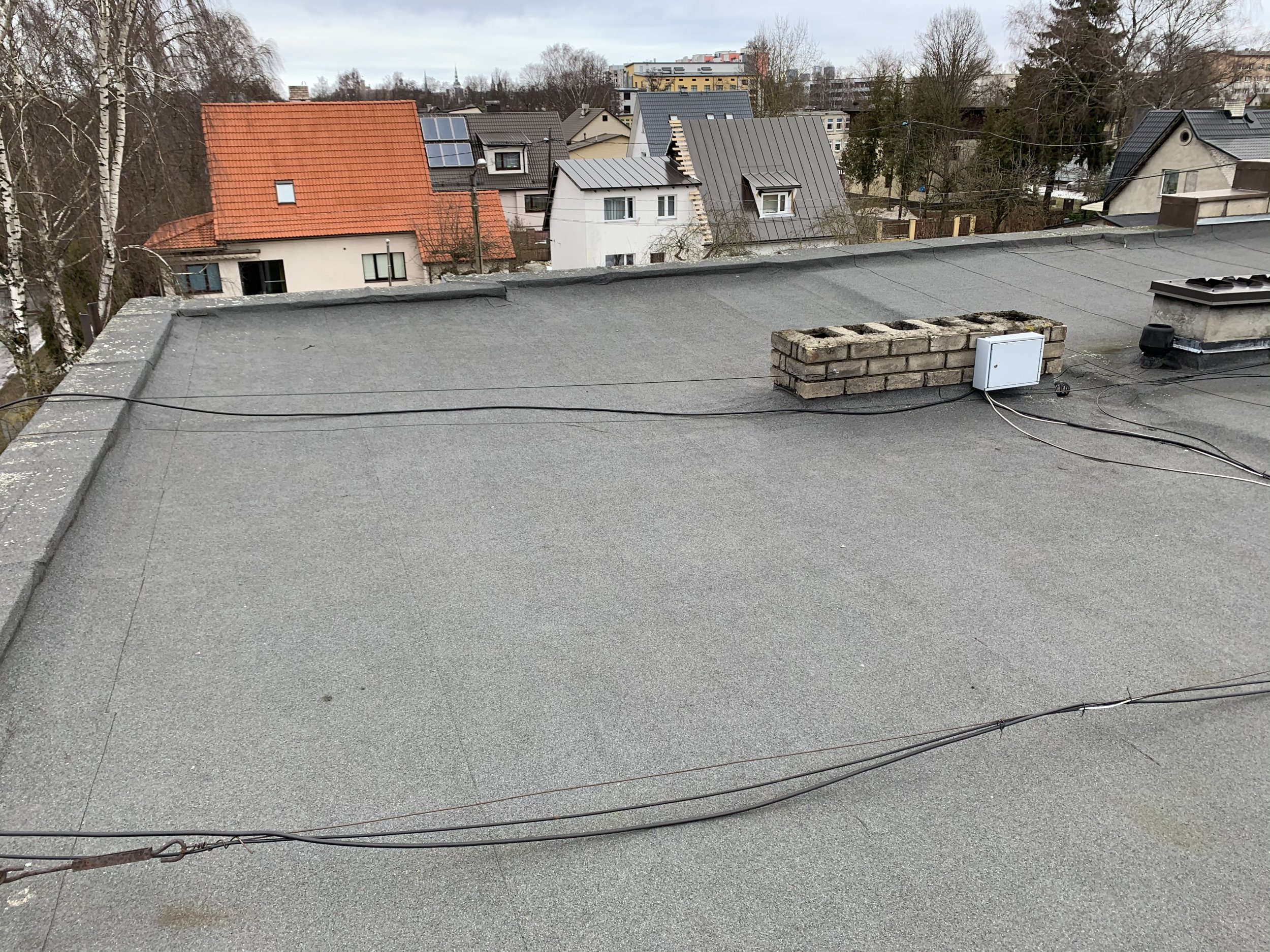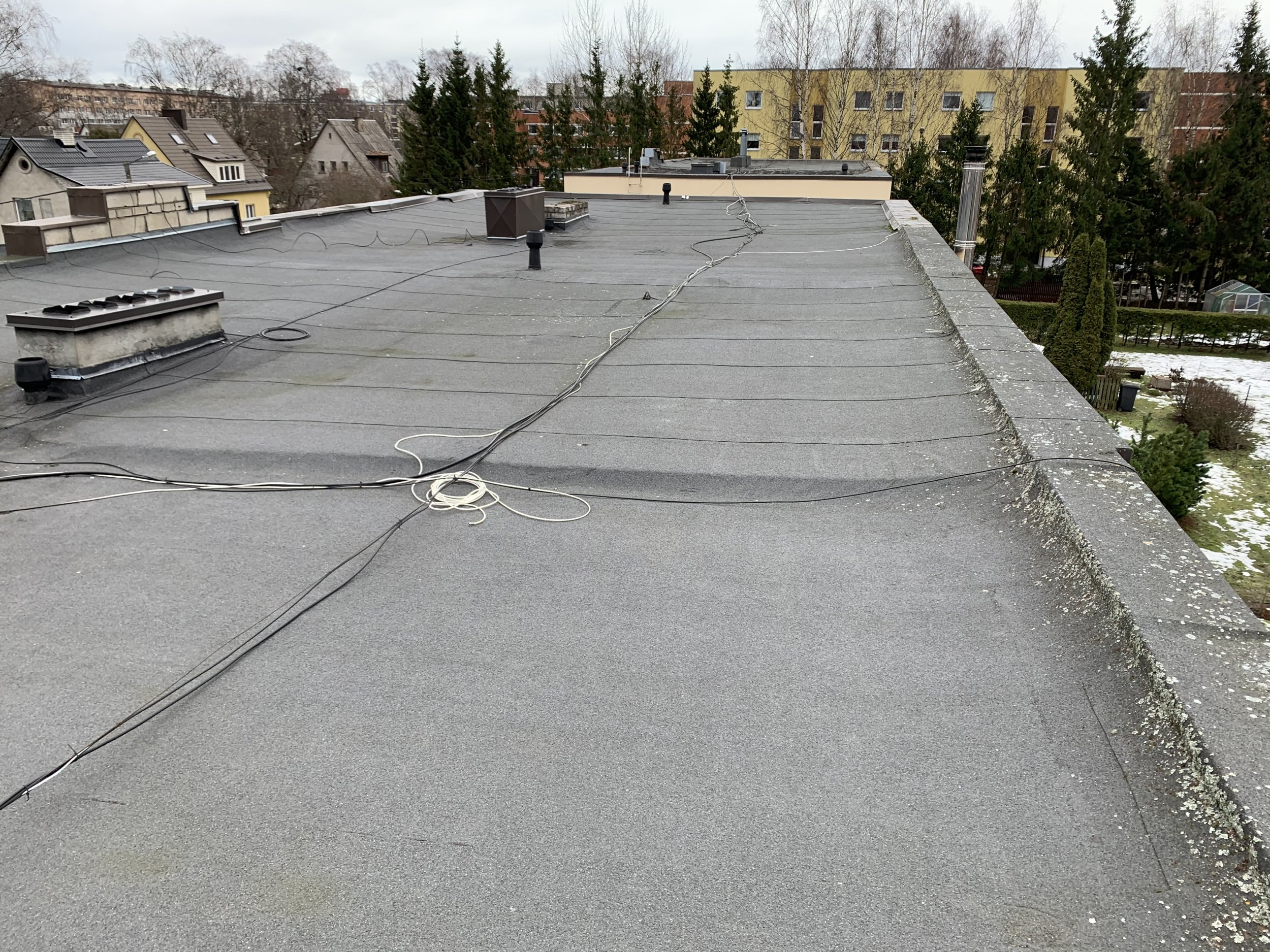 Hoone katus koosneb 50 ja 20 ruutmeetrisest osast. Soojustamine 100mm EPSi ja 20mm tuuletõkke villaga vana katuse peale, paigaldatakse kaks uut katusekaevu koos prahisõelaga ning kaks kihti SBS bituumenrullmaterjali pinnale. Uued tõsted parapetile kahes kihis. Paigaldatakse uus parapeti plekk. Tihendatakse korsten bituumenteibiga.