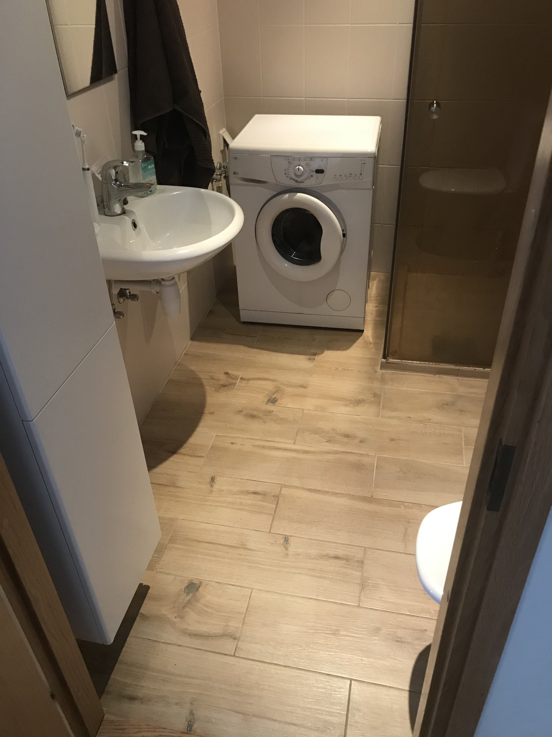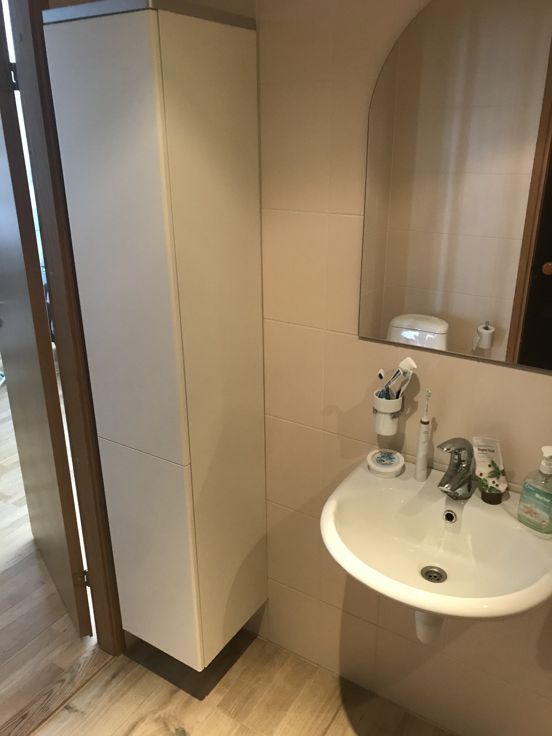 Vana santehnika demonteerimine, uue montaaž (santehnika tuleb minu poolt). Klaasist dušinurk ja kapp monteeritakse tagasi. Ripplae demonteerimine, uue montaaž. Uued valgustid, uus peegel.