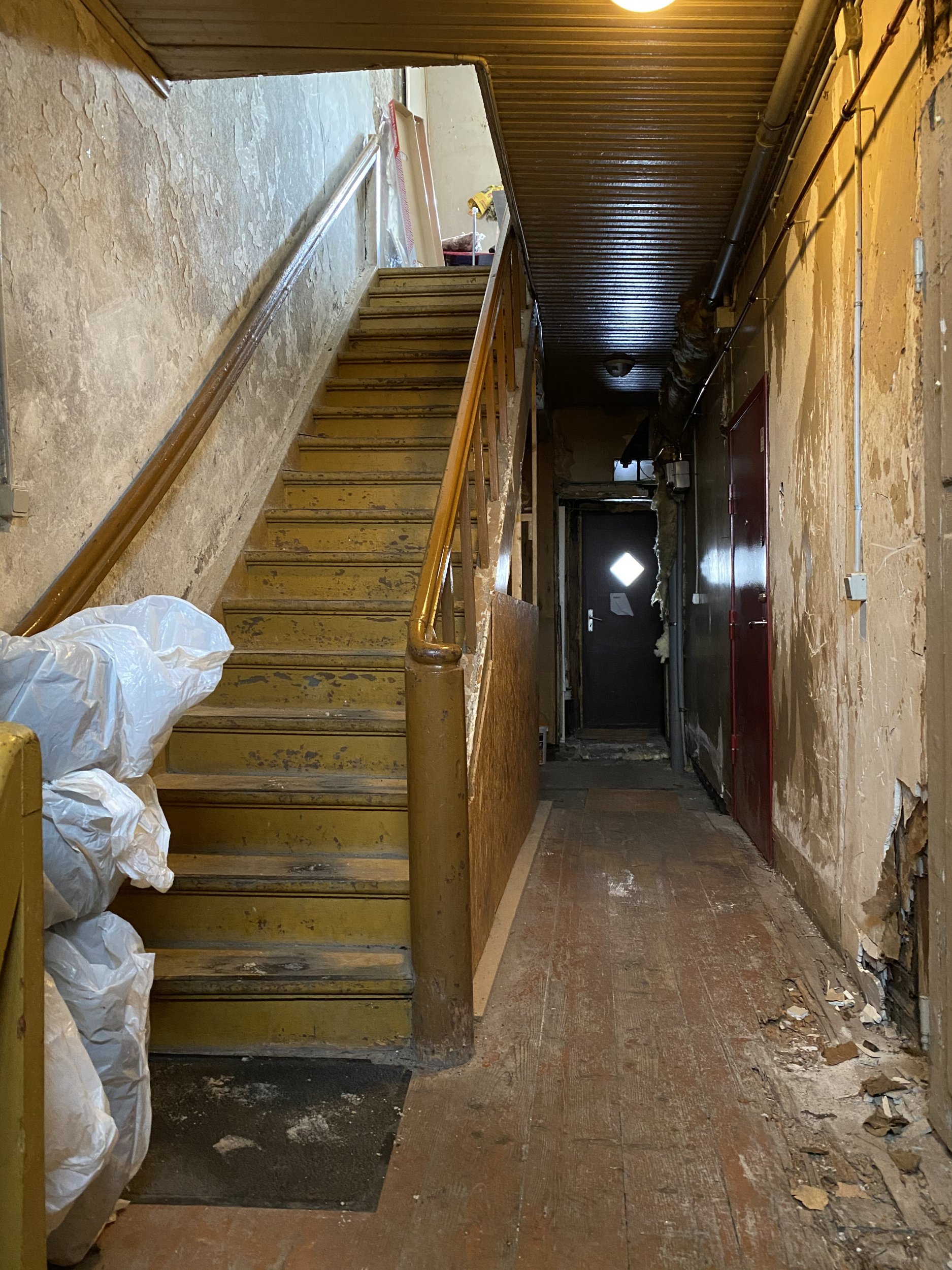 2. Trepikodade (kaks trepikoda) renoveerimine (sh EI30 tulekindlate korteriuste paigaldamine). Pildil nähtava trepi puhul piisab tõenäoliselt iluremondist. Teise trepikoja trepp vajab põhjalikumat renoveerimist.