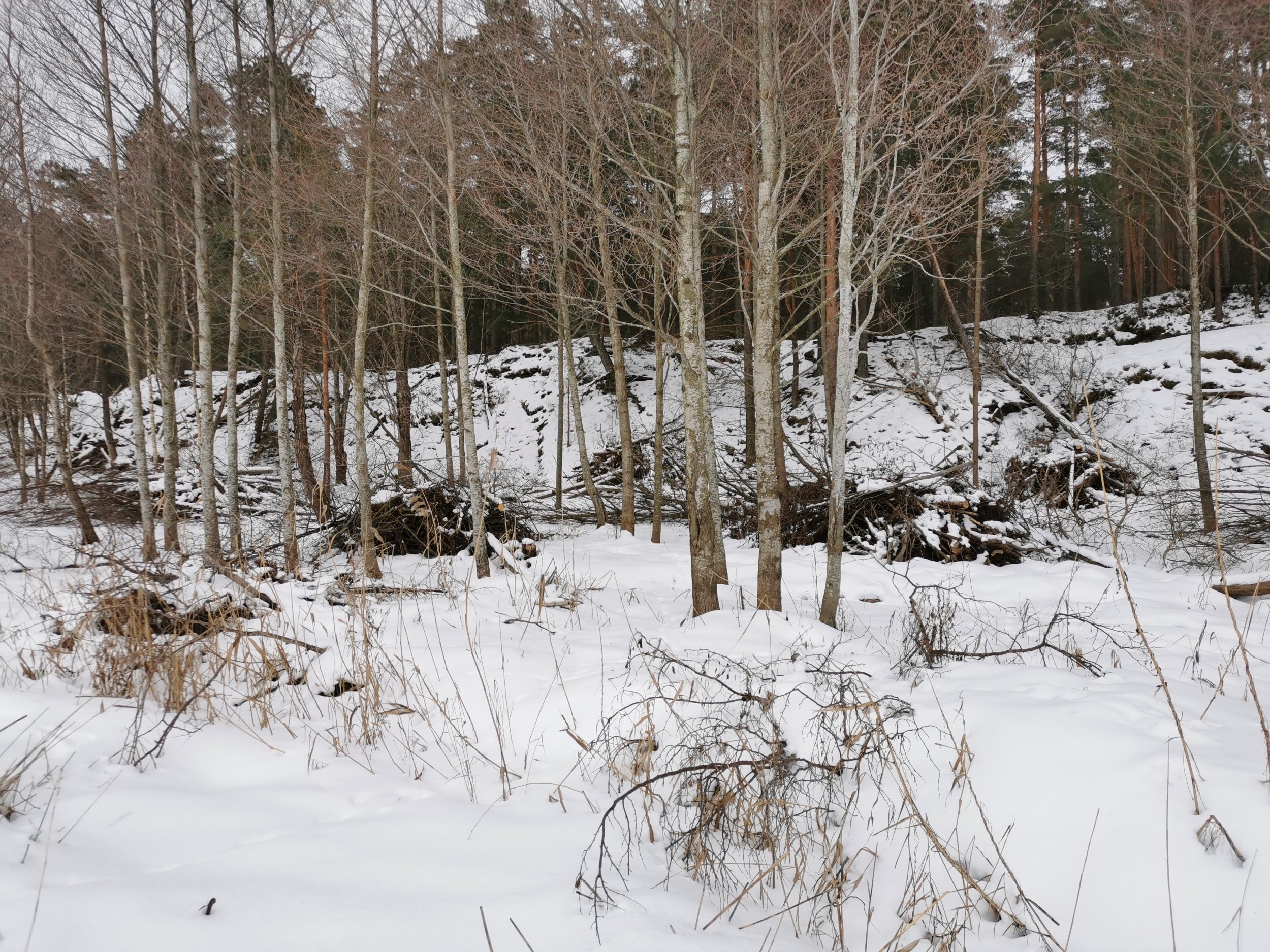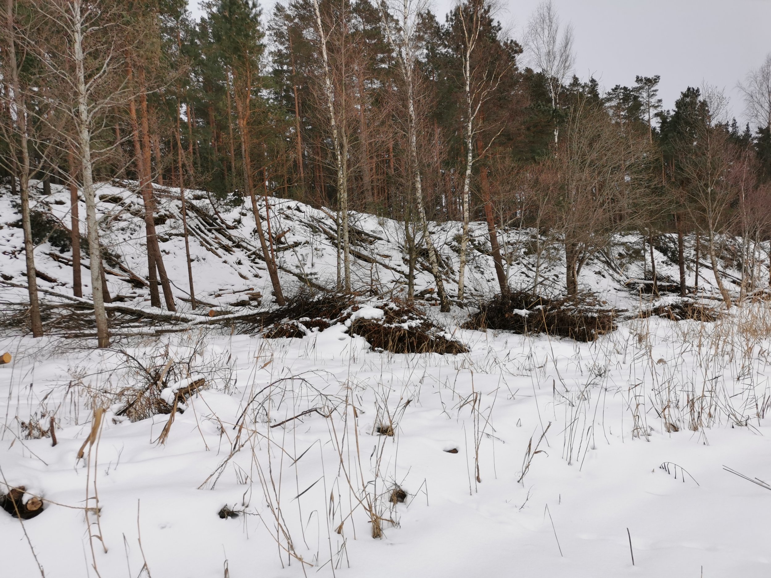 Vajan mereäärest mahalõigatud võsa ja puude (osalt kuhjas) väljavedu.